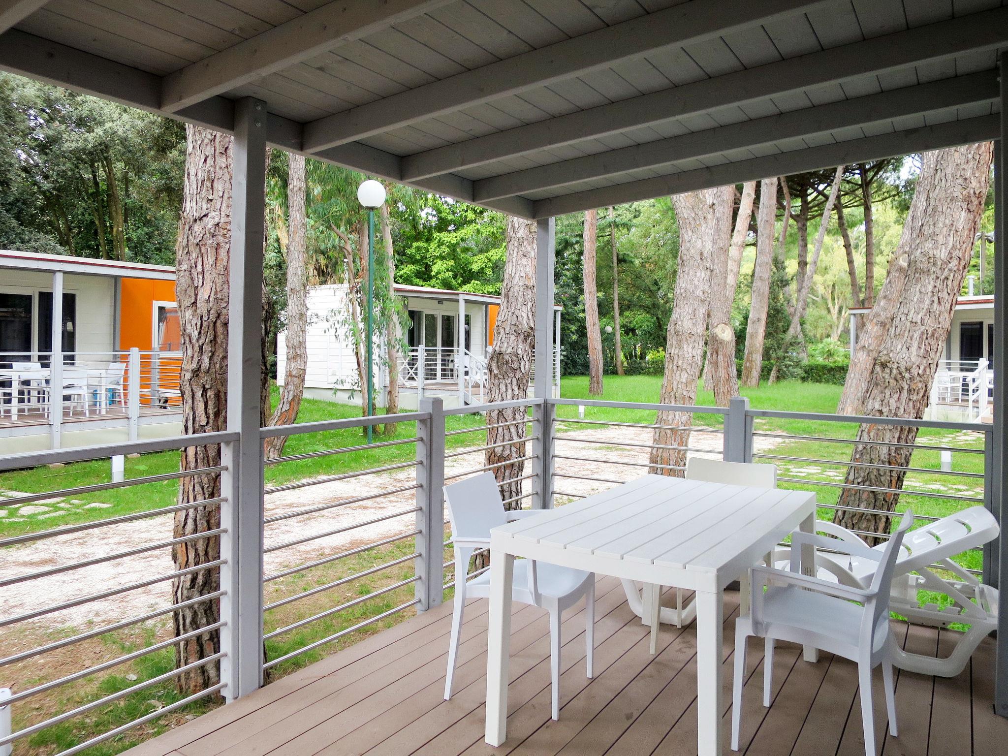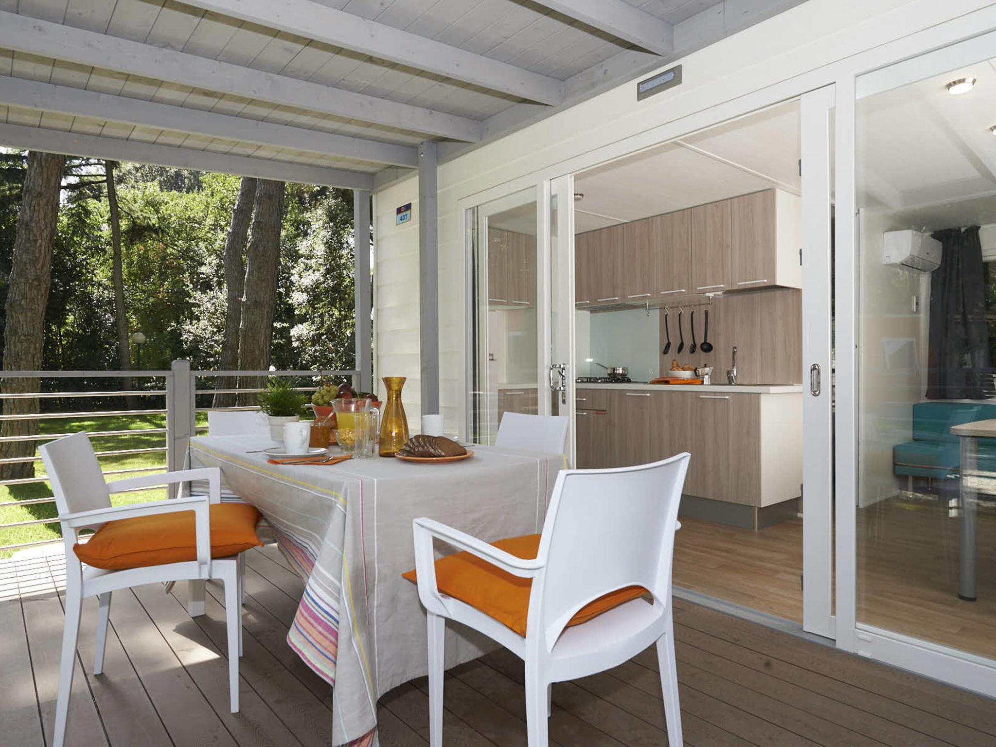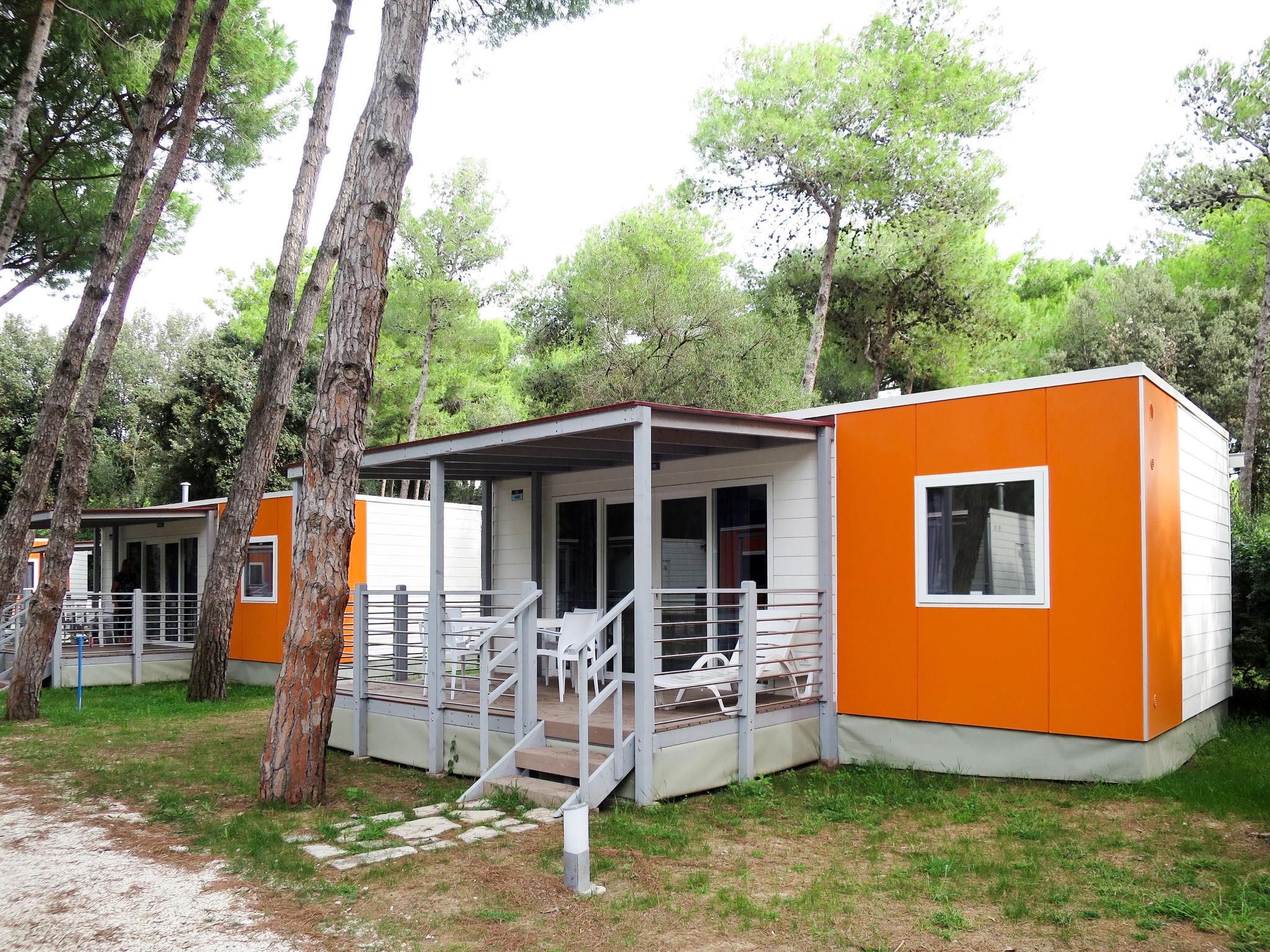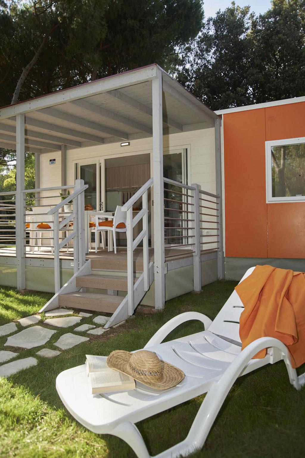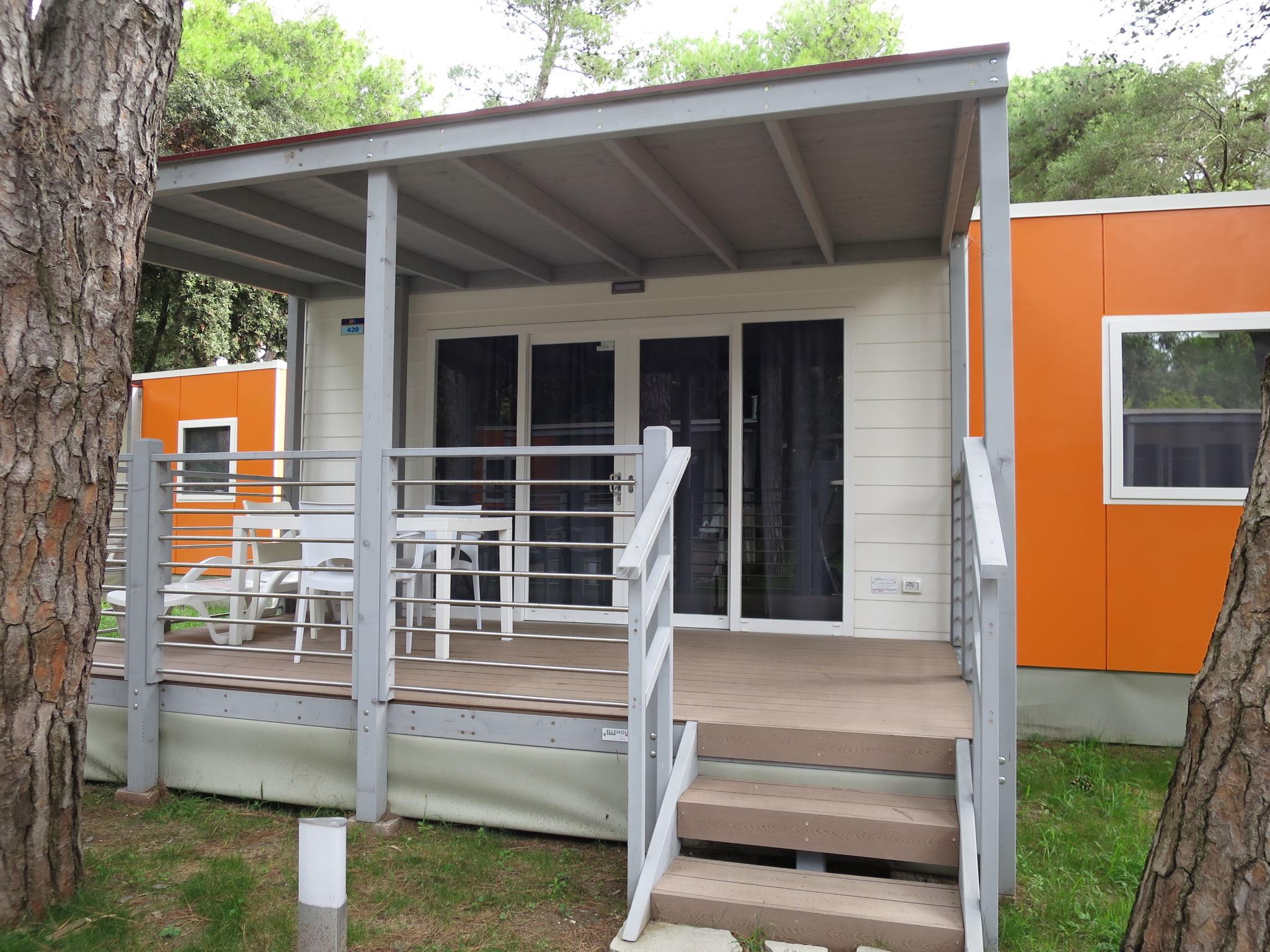 "Ischia", 3-Zimmer-Mobilheim 29 m2. Objekt geeignet für 4 Erwachsene + 1 Kind. Hell, modern eingerichtet: Wohn-/Schlafzimmer mit 1 Diwanbett, Esstisch, Küchenblock, Sat-TV und Klimaanlage. Ausgang zur Terrasse. 1 Zimmer mit 1 franz. Bett (140 cm). 1 Zimmer mit 2 Betten (80 cm). Offene Küche (4 Flammen, Tiefkühler). Dusche/WC. Klimaanlage (extra). Keine Heizmöglichkeit. Terrasse überdacht. Terrassenmöbel, Liegestühle (1). Parkplatz (1 Auto). Bitte beachten: Nichtraucher-Unterkunft. IT061088B3LUIBMCPY