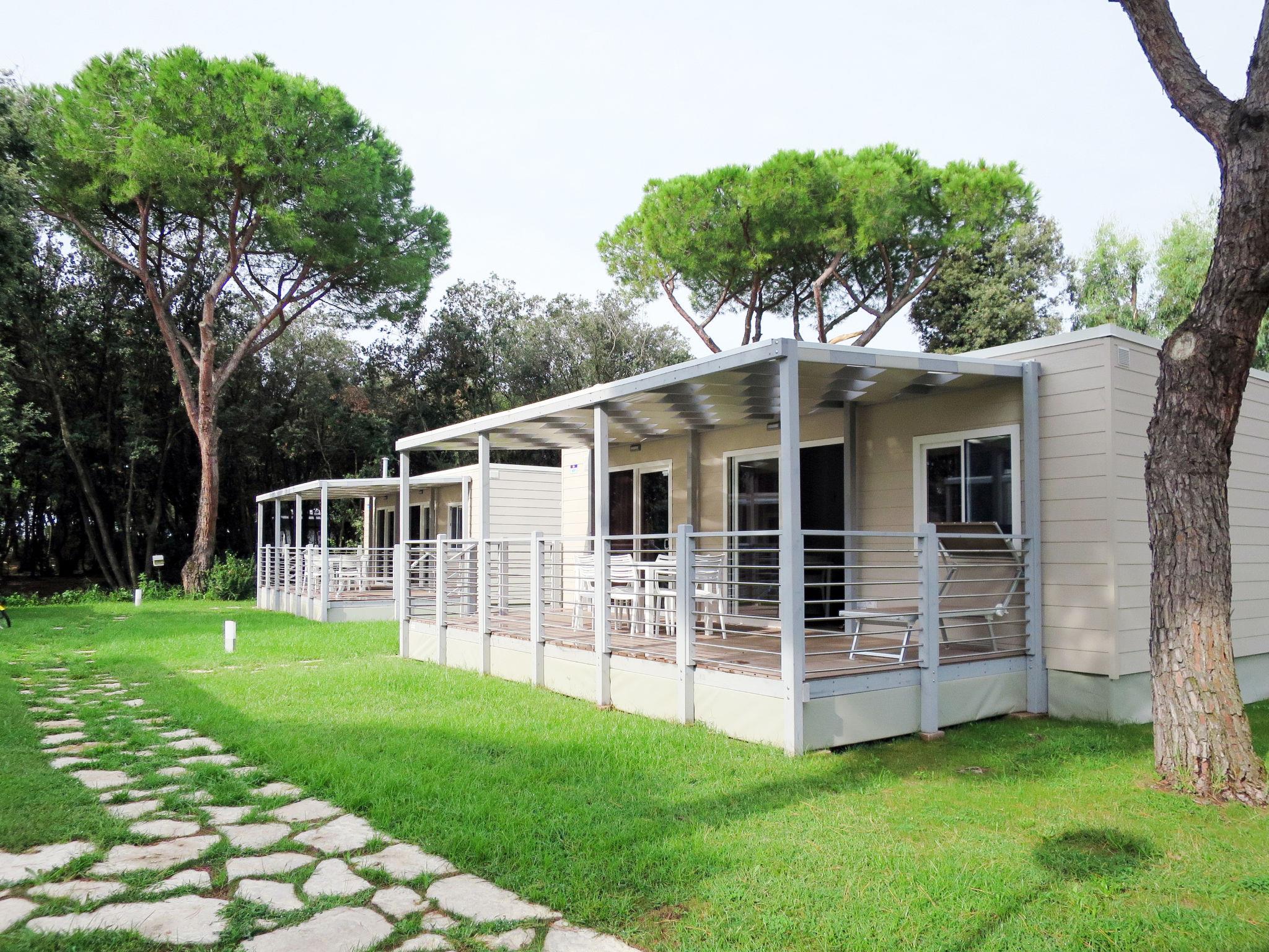 "Capri", 4-Zimmer-Mobilheim 34 m2. Modern eingerichtet: Wohn-/Esszimmer mit Küchenblock, Sat-TV und Klimaanlage. Ausgang zur Terrasse. 1 Zimmer mit 1 Doppelbett (160 cm, Länge 200 cm), Dusche/WC. 2 Zimmer, jedes Zimmer mit 2 Betten (80 cm, Länge 200 cm). Offene Küche (4 Flammen, Tiefkühler). Dusche/WC. Klimaanlage (extra). Keine Heizmöglichkeit. Terrasse überdacht. Terrassenmöbel, Liegestühle (1). Parkplatz (1 Auto). Bitte beachten: Nichtraucher-Unterkunft. IT061088B3LUIBMCPY