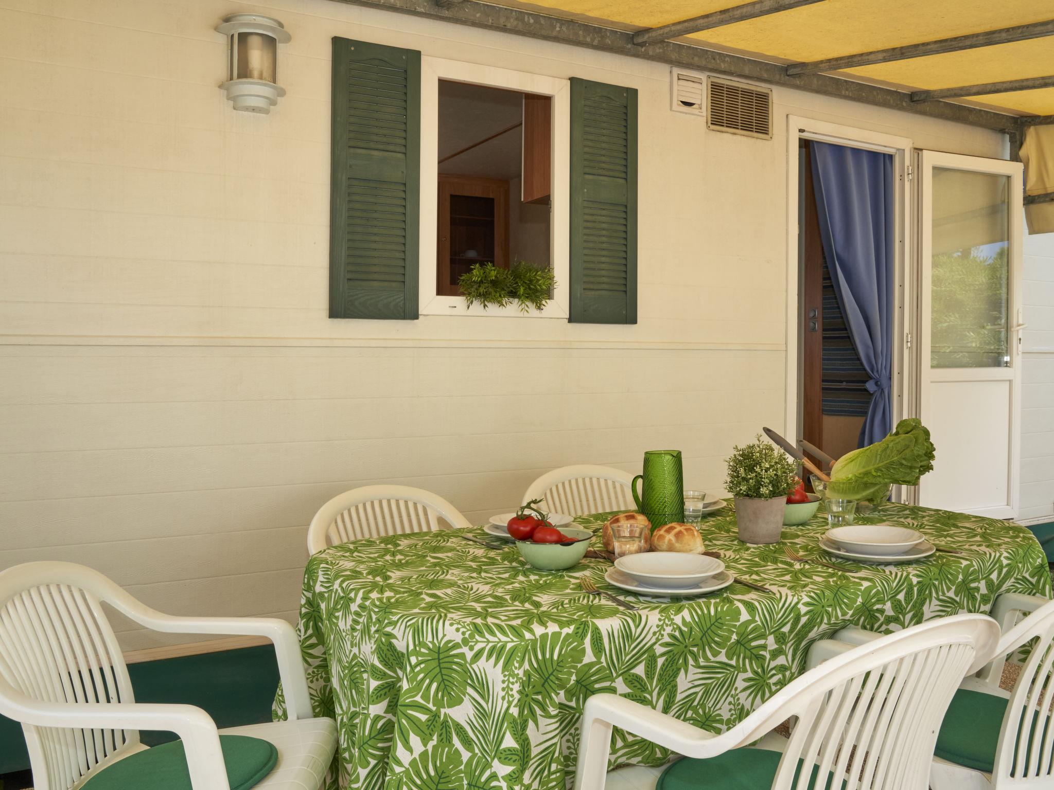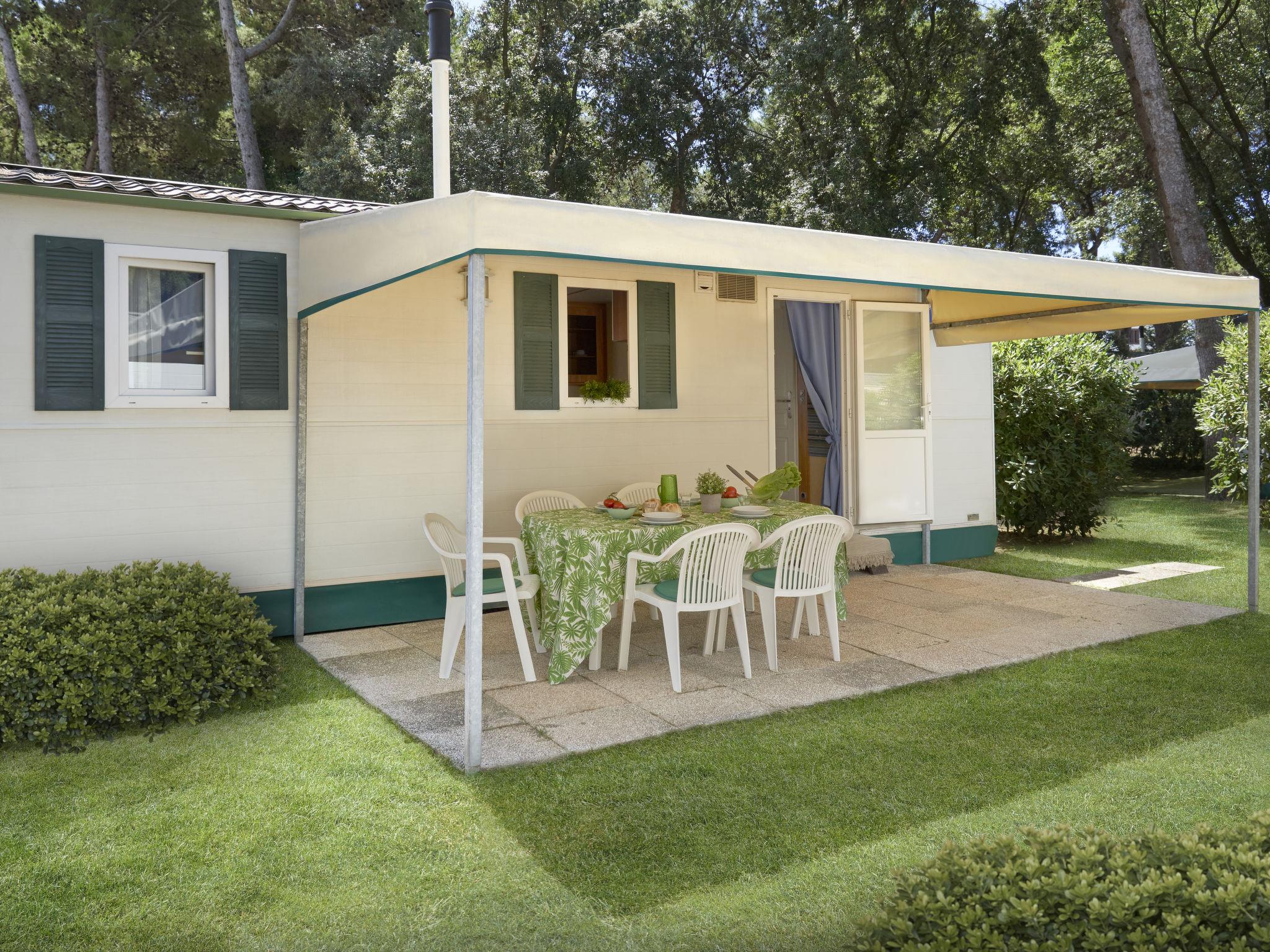"Escale", 3-Zimmer-Mobilheim 22 m2. Objekt geeignet für 4 Erwachsene + 1 Kind. Zweckmässig eingerichtet: kleines Wohn-/Schlafzimmer mit 1 Diwanbett, Esstisch, Küchenblock und Klimaanlage. Ausgang zur Terrasse. 1 Zimmer mit 1 franz. Bett (140 cm). 1 kleines Zimmer mit 2 Betten (70 cm). Kochnische (4 Flammen). Dusche/WC. Klimaanlage (extra). Keine Heizmöglichkeit. Terrasse überdacht. Terrassenmöbel. Parkplatz (1 Auto). Bitte beachten: Nichtraucher-Unterkunft. IT061088B3LUIBMCPY
