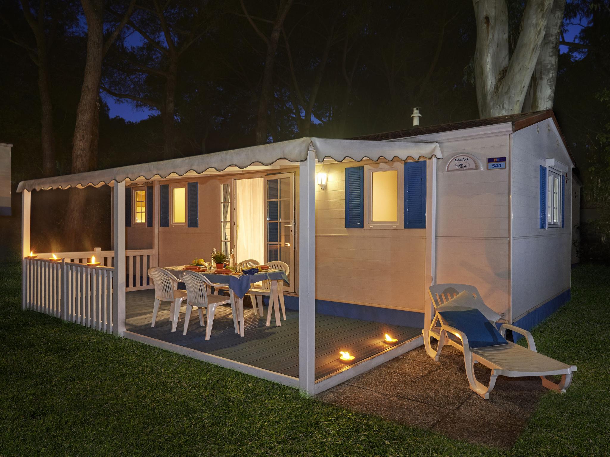 "Comfort", 4-Zimmer-Mobilheim 34 m2. Zweckmässig eingerichtet: Wohn-/Esszimmer mit Küchenblock, Sat-TV und Klimaanlage. Ausgang zur Terrasse. 1 Zimmer mit 1 franz. Bett (140 cm). 2 Zimmer, jedes Zimmer mit 2 Betten (70 cm). Offene Küche (4 Flammen). Dusche/WC, sep. WC. Klimaanlage (extra). Keine Heizmöglichkeit. Terrasse überdacht. Terrassenmöbel, Liegestühle (1). Parkplatz (1 Auto). Bitte beachten: Nichtraucher-Unterkunft. IT061088B3LUIBMCPY