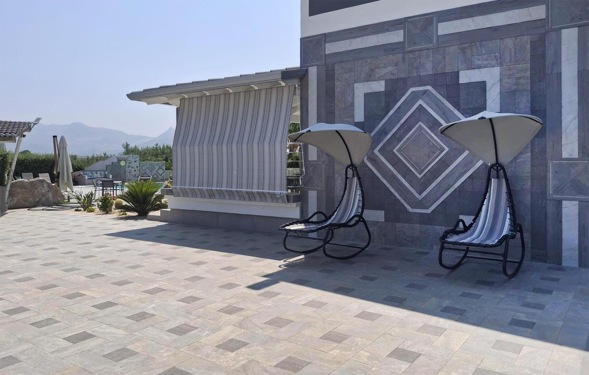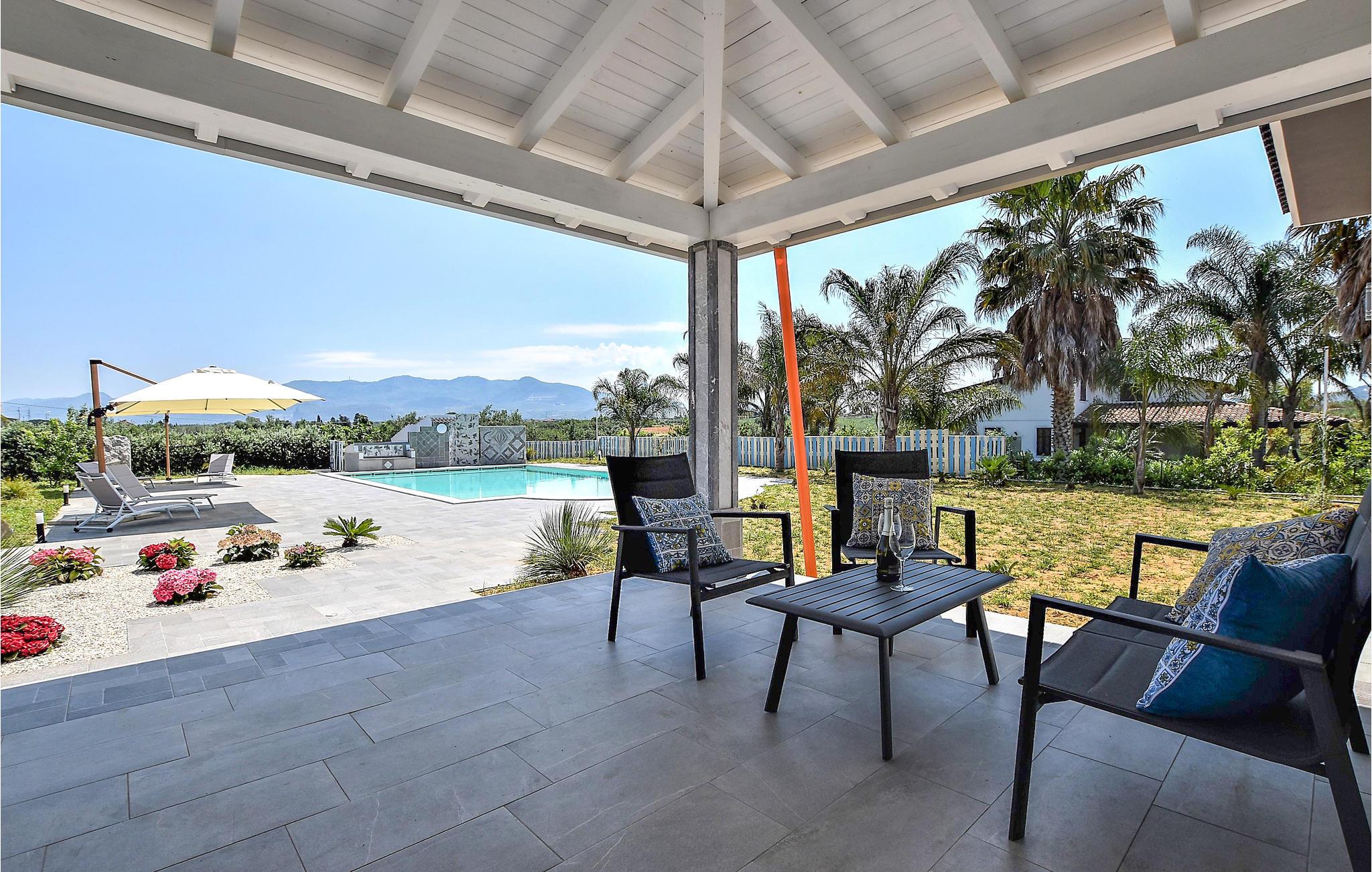 Auch der Garten kann sich sehen lassen. Legen Sie sich am Schwimmbeckenrand in den Schatten der Sonne, trinken ein kühles Getränk auf den Gartenmöbeln und bewundern das Bergpanorama des Hinterlandes.