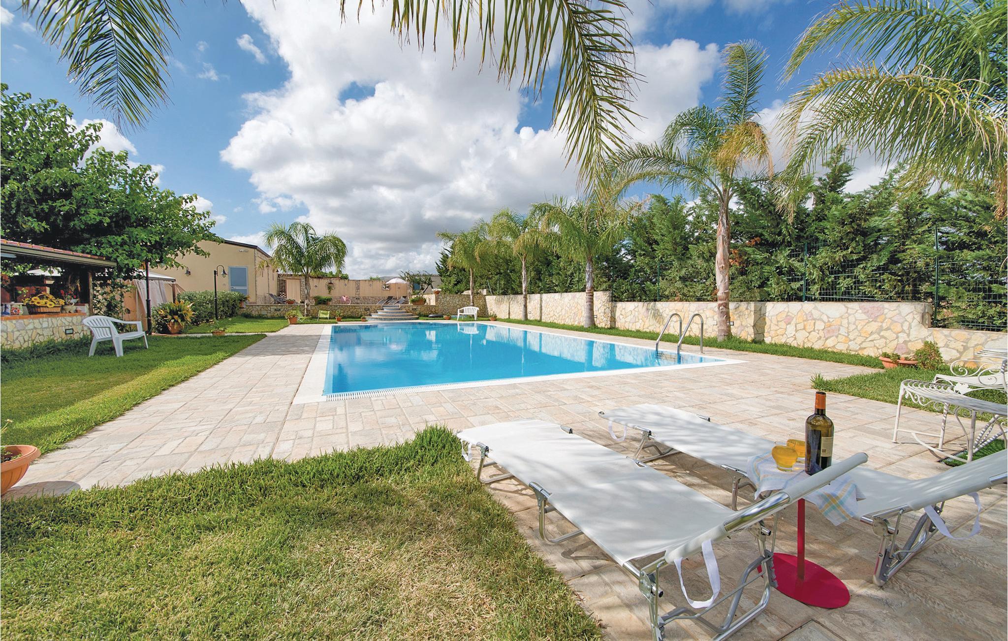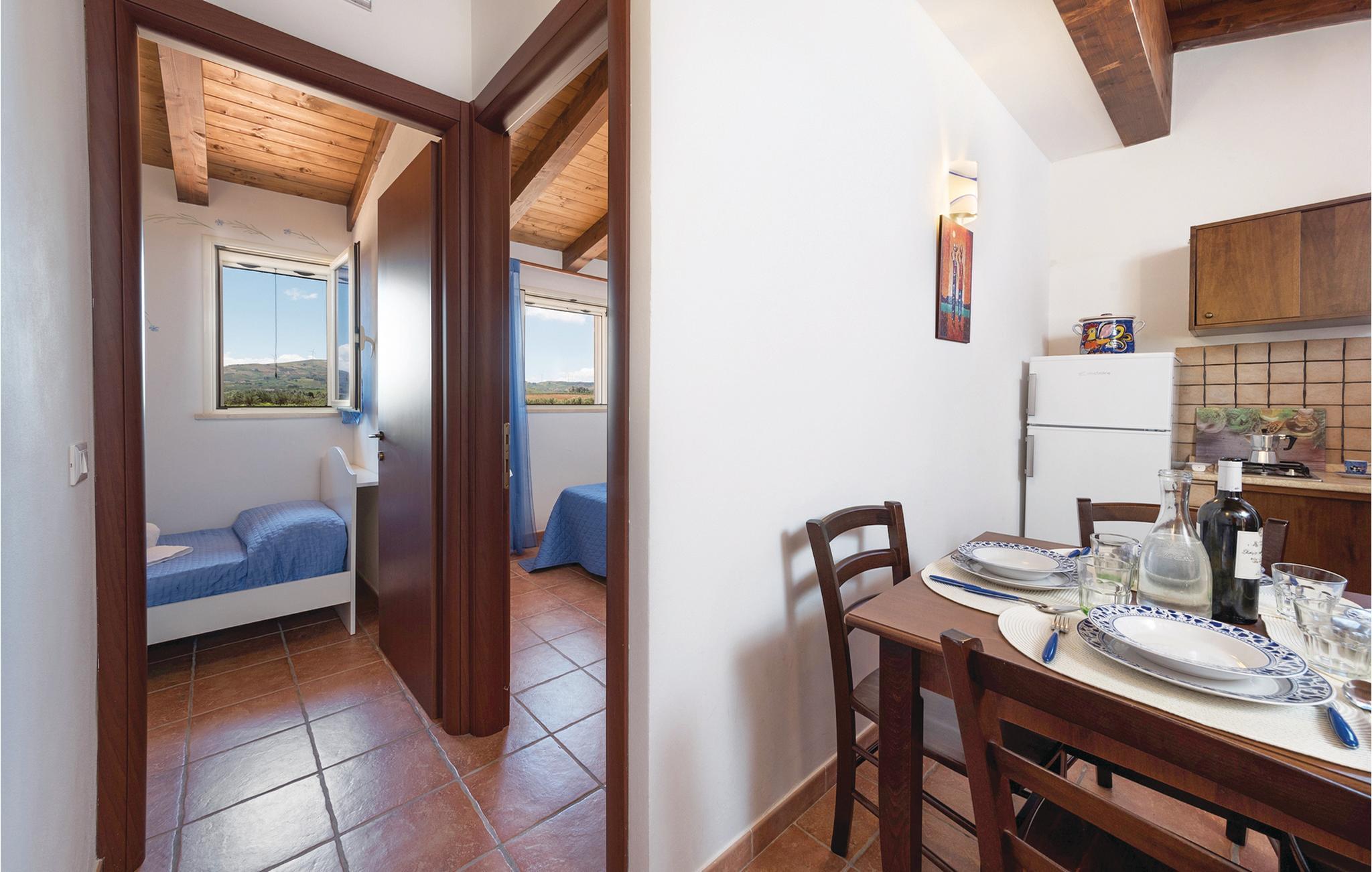 Diese hübsche Ferienwohnung liegt im 1. Stock eines kürzlich renovierten Bauernhauses, in die sizilianische Landschaft eingetaucht. Das Haus ist Teil eines Weinguts. Die Gäste verfügen über einen Gemeinschaftspool, von dem man einen schönen Blick auf die umliegende Landschaft und auf das Meer genießen kann. Die Unterkunft erreicht man über eine 2 km lange unasphaltierte Straße. Siehe auch ISS664-712-713.
