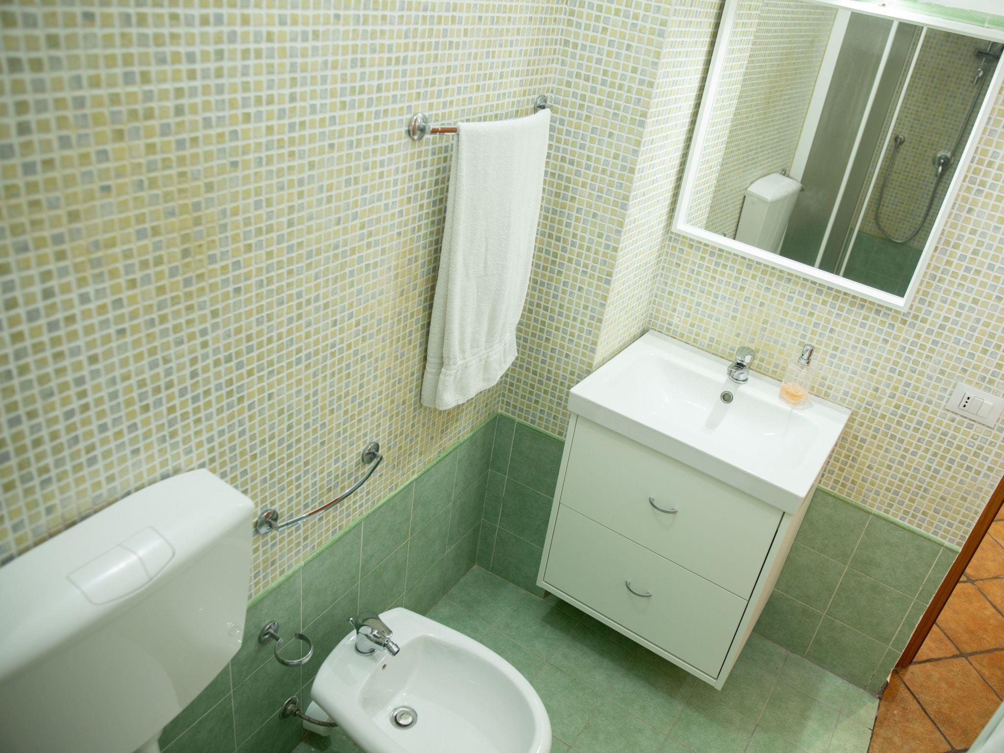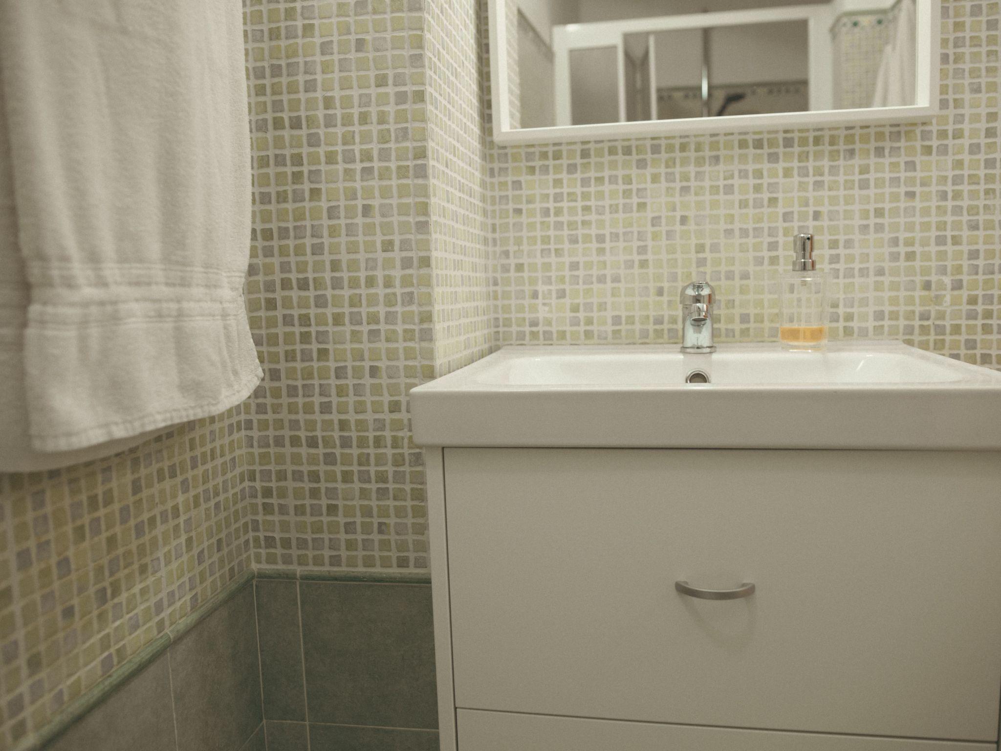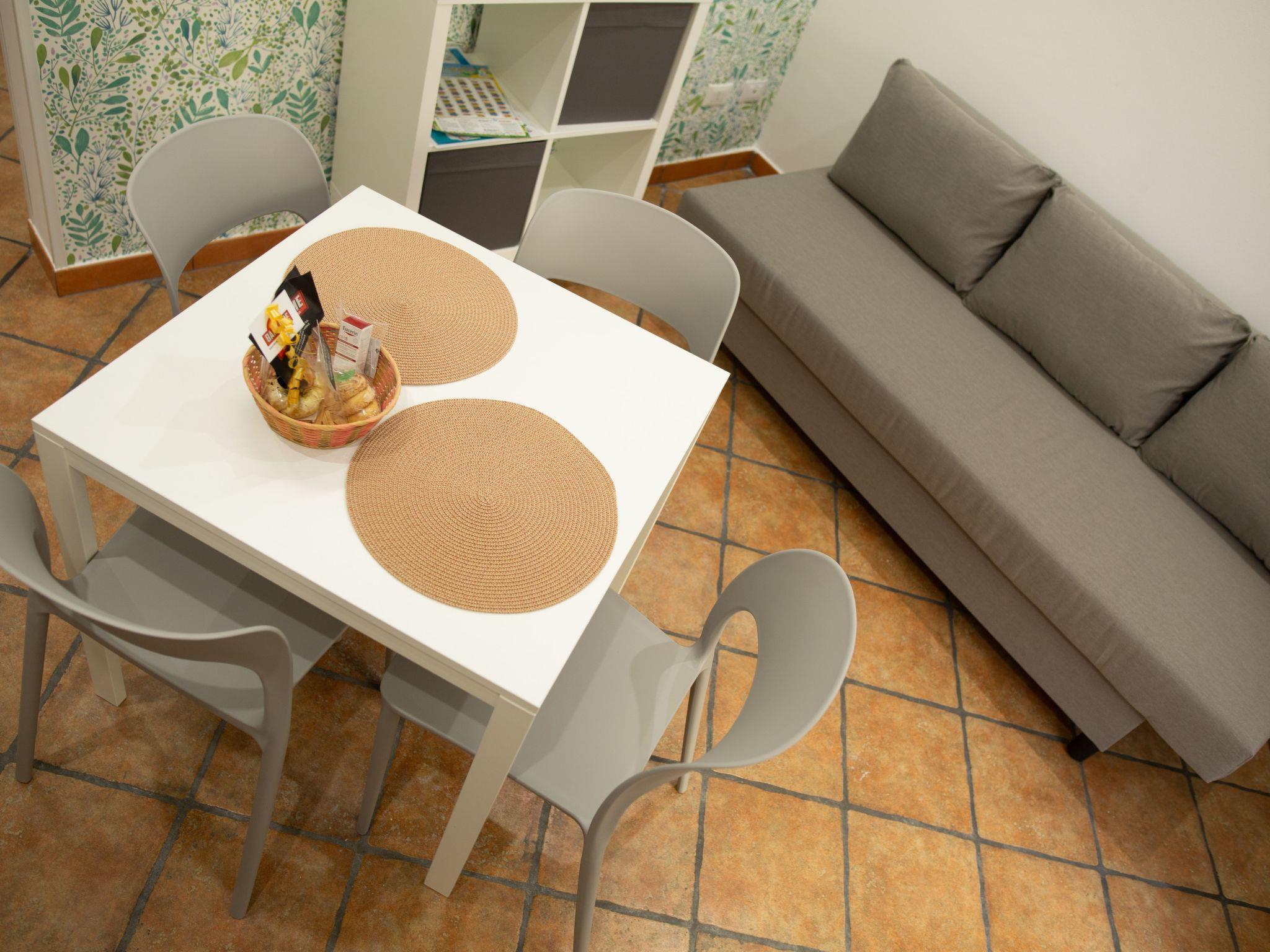 Das Innere der Wohnung wurde so gestaltet, dass sie maximalen Komfort und Zweckmäßigkeit bietet. Sie werden eine Waschmaschine vorfinden, die Ihnen exklusiv zur Verfügung steht, ideal für längere Aufenthalte oder zum Auffrischen Ihrer Kleidung nach einem Tag der Erkundung. Eine Kaffeemaschine mit Kapseln und ein Wasserkocher sorgen dafür, dass Sie jeden Tag mit einem heißen Getränk auf dem Balkon beginnen können, während der Minibackofen Ihre kulinarischen Möglichkeiten für schnelle und schmackhafte Mahlzeiten erweitert. Trotz des Fehlens eines Schlaf- und Wohnzimmers sorgt eine Teilklimatisierung für eine kühle und gemütliche Umgebung an heißen Sommertagen.
