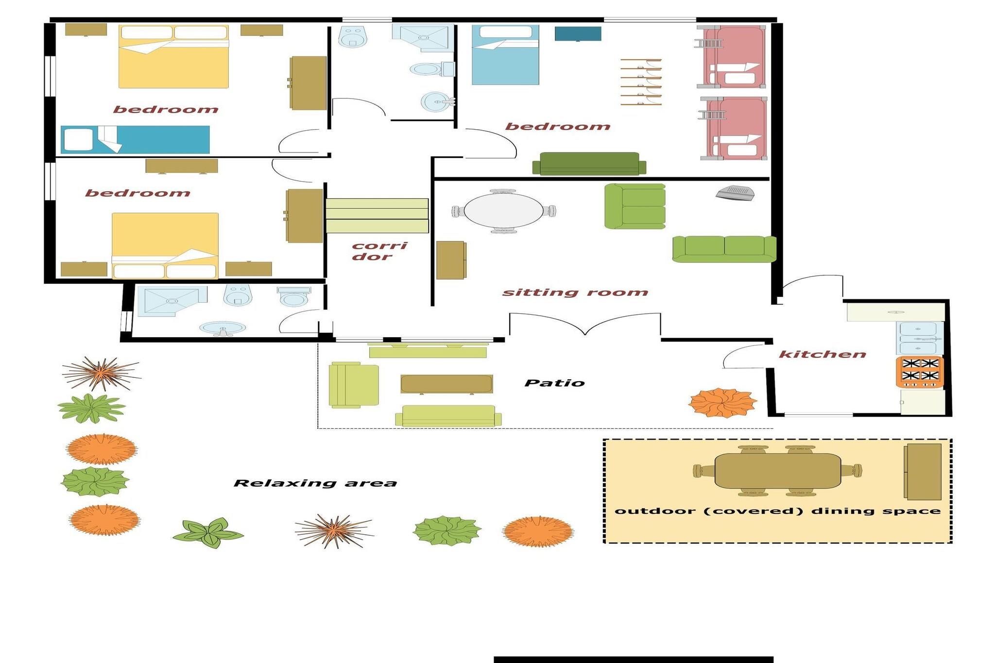 Parterre: (Küche(Kochplatte(4 Kochplatten), Kaffeemaschine, Backofen, Kühl-/Gefrierkombination), Wohn/Esszimmer(TV(Kabel), Esstisch, Sitzecke), Schlafzimmer(Doppelbett), Schlafzimmer(Doppelbett oder 2 Einzelbetten), Schlafzimmer(Einzelbett, Einzelbett, Etagenbett, Etagenbett), Badezimmer(Dusche, Waschbecken, Toilette, Bidet), Badezimmer(Dusche, Waschbecken, Toilette, Bidet)) Veranda, Internet, Kaminofen, Spülmaschine, Trockner, Babybett, Dusche(im Garten), Dusche(im Garten), Waschmaschine, Balkon, Heizung, Klimaanlage, Terrasse, Garten, Gartenmöbel, Grill, Parkplatz, Liegestühle, Sonnenschirm, Pool(Gemeinschaftliche Nutzung mit anderen Gästen, 12 x 6 m.), Hochstuhl, Bügelbrett, Bügeleisen, Föhn
