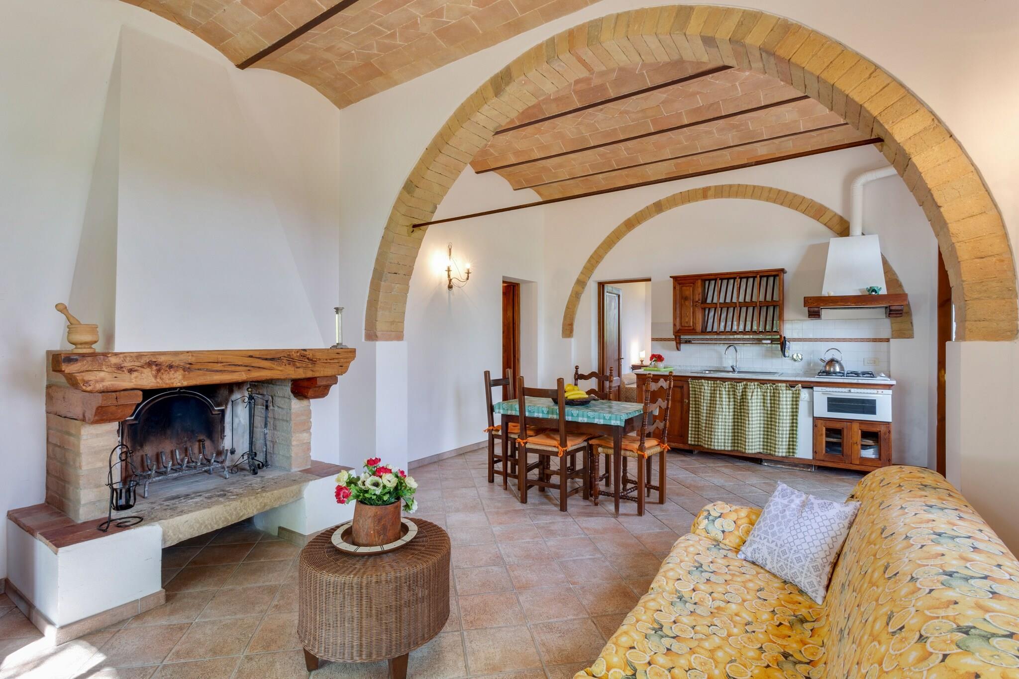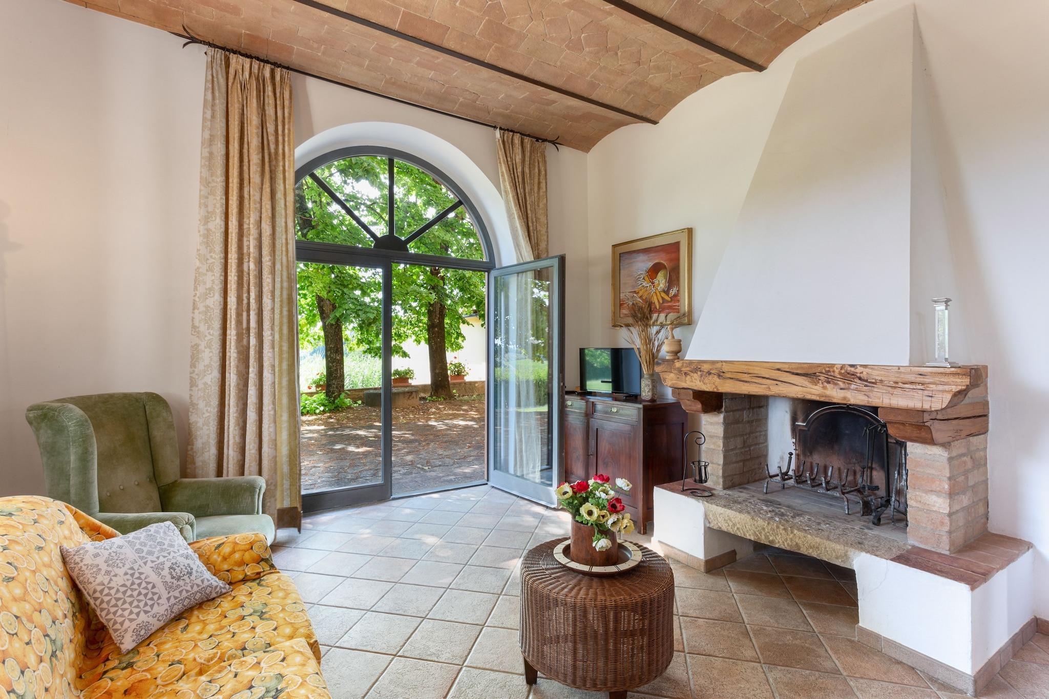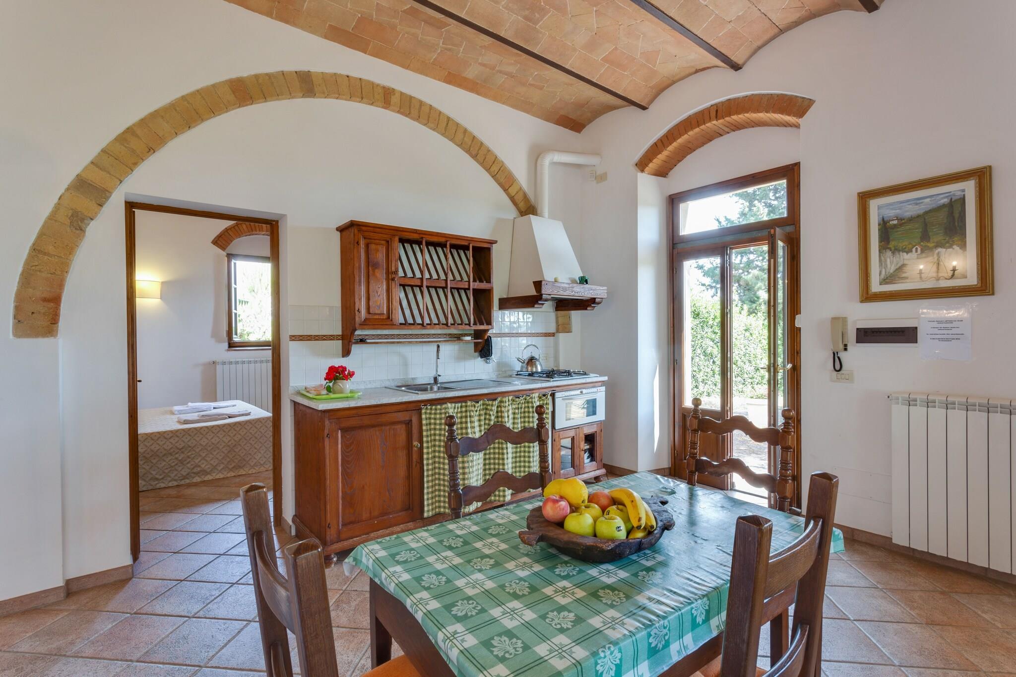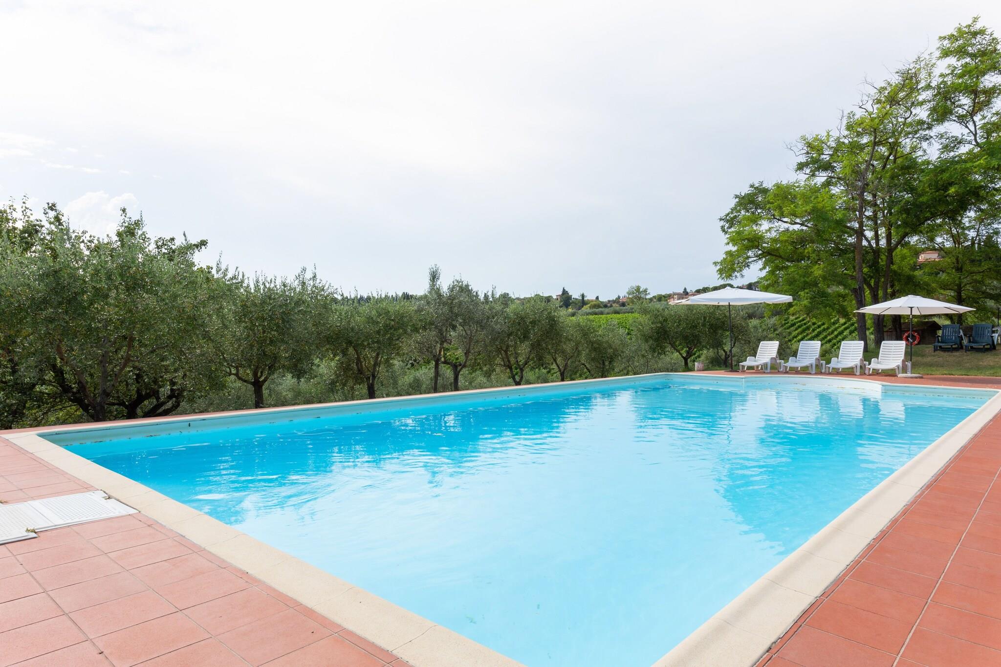 Die Ferienwohnung liegt auf einem Ferienhof im Herzen der Chianti-Region zwischen Siena und Florenz, genauer gesagt in Barberino Val d'Elsa, unbestreitbar in einer strategischen Lage, um einige der faszinierendsten Orte in der Toskana zu erkunden, während man gleichzeitig in engem Kontakt mit der Natur ist, umgeben von 40 Hektar Weingärten und Olivenhainen. Die in einem eleganten, rustikalen Stil eingerichtete Wohnung ist mit allen Dingen des täglichen Bedarfs für einen schönen Urlaub ausgestattet, der Spaß und Entspannung bringen soll. Vor der Wohnung bietet ein Hof, der den Gästen zur Nutzung zur Verfügung steht, privaten Raum. Ein Gemeinschaftspool und ein Grill mit Blick auf die Chianti-Landschaft stehen auch zu Ihrer Verfügung. Die Chianti-Region zwischen Florenz und Siena ist berühmt für ihre hochwertigen Weine. Die Straßen, die dieses Gebiet durchkreuzen, verlieren sich in der Vielzahl von Weingärten, wodurch Besuchern die Gelegenheit geboten wird, die großartige Tradition der Weinherstellung in der Toskana zu bewundern und zu genießen. Es gehört unbedingt dazu, in einem der vielen Weinkeller der Region eine Pause einzulegen und die dort angebotenen exquisiten Weine zu probieren. Der Hof liegt außerhalb der wichtigsten Verkehrsverbindungen, es ist ratsam, ein Auto zu haben, um es zu erreichen und sich von dort fortzubewegen Struktur. Haustiere sollten nicht alleine in der Wohnung gelassen werden. Das Bauernhaus hat keinen Restaurantservice Die herrliche Stadt San Gimignano in wenigen Kilometern Entfernung ist ein Musterbeispiel der mittelalterlichen Architektur, die seit Jahrhunderten intakt geblieben ist. Ganz besonders bemerkenswert sind die vielen, perfekt erhaltenen Türme, welche die Stadt zieren und die von der UNESCO zu Stätten des Weltkulturerbes ernannt worden sind. Die Stadt Florenz bietet unendlich viele Möglichkeiten, etwas zu unternehmen und zu besichtigen. Bekannt als Hauptstadt der Kunst der Renaissance und Architektur hat die Hauptstadt der Toskana im Lauf der Jahrhunderte eine enorme Zahl an Künstlern, Malern und Bildhauern beherbergt und hervorgebracht. So wie Florenz das Symbol der Renaissance ist, kann Siena für sich beanspruchen, ein Symbol des Mittelalters zu sein, das seit Jahrhunderten intakt geblieben ist, reich an Kunst, Geschichte und Traditionen: Vor allem der berühmte Palio di Siena.