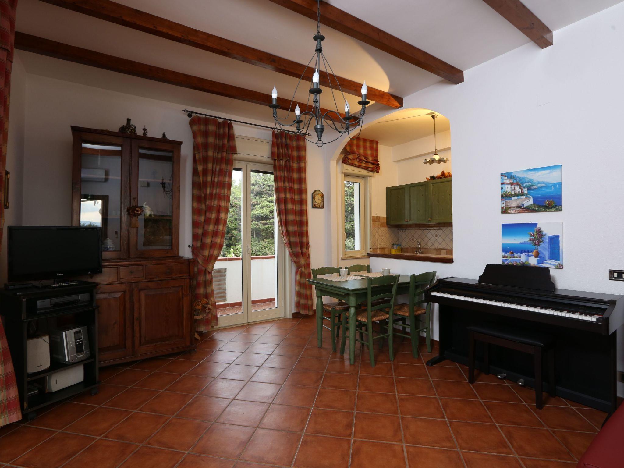 Apartment im ersten Stock, bestehend aus Terrasse, Schlafzimmer mit Doppelbett, einem Zimmer mit zwei Einzelbetten, auch als Doppelbett verwendbar, Bad mit Fenster und Duschkabine, Aufenthaltsraum mit Zugang zur Terrasse, ausgestattet mit Schlafcouch (evtl. auch für zwei Kinder geeignet), praktisch eingerichtete Kochnische, eine externe Dusche.