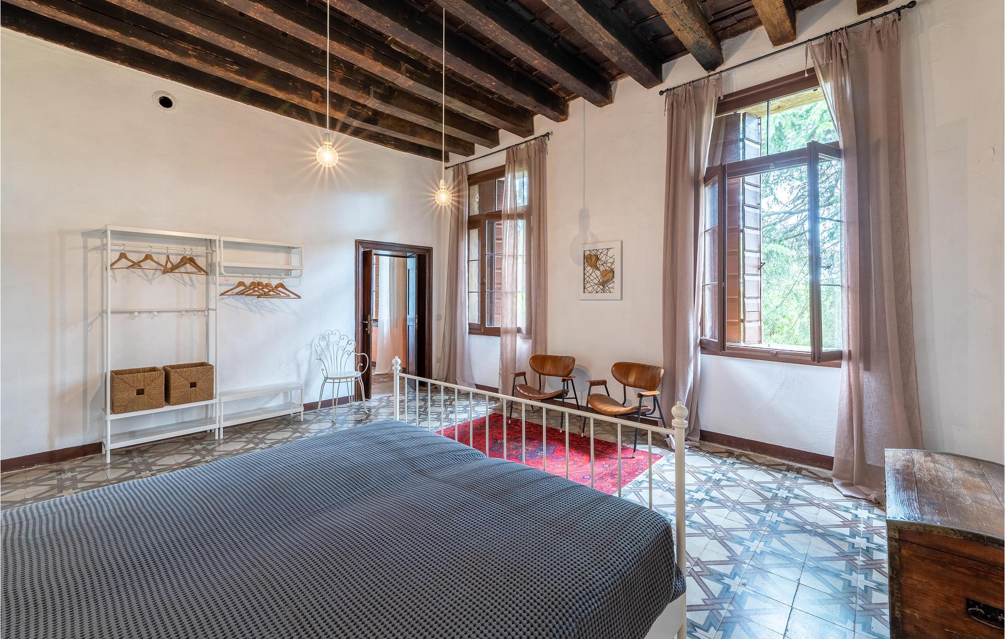 Alleinstehendes Ferienhaus bestehend aus einer alten venezianischen Villa aus dem 15. Jahrhundert, in den sanften Hügeln des Gebiets Pedemontana gelegen. Die Villa ist umgeben von einem wunderschönen Park mit Bäumen und 2 ha großen Weinbergen von welchen hervorragende Weine wie Vespaiolo und Torcolato stammen. 5 km die Stadt Thiene, in der Provinz Vicenza. Bei der Renovierung wurden einige originale und charakteristische Elemente bewahrt, wie zum Beispiel die schönen farbigen Fußböden, die imposante Marmortreppe zum Schlafbereich, die 4 m hohen Decken, die wunderschönen Holzbalken, die ursprünglichen Fensterarmaturen, die antiken ortstypischen Möbel. Die dicken Mauern halten auch während heißen Sommertagen die Hitze draußen. Den Gästen steht eine Bibliothek mit mehr als 2000 Sach- und Geschichtsbüchern zur Verfügung. Die Schlafzimmer im ersten Stock bieten alle Gartenblick. Großes, eingezäuntes Naturgrundstück mit Bäumen und ausgestattet mit Gartenmöbeln und Grill zum Essen im Freien und Entspannen. Die Villa befindet sich innerhalb einer 21 km langen Geh- und Laufbahn in der Natur mit Erfrischungs- und Erholungsstätten. Gute Lage zur Erkundung von Kunststädten wie Vicenza (20 km), Padua (50 km), Verona (88 km), Venedig (90 km). Zufahrt über einen 300 m langen Schotterweg.