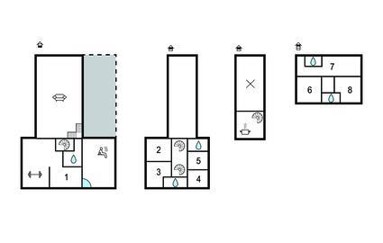 Schlafzimmer (nr. 6) - 1 Schlafmöglichkeit. (Einzelbett(en)). 4 Schlafmöglichkeiten. (Doppelbett(en)).