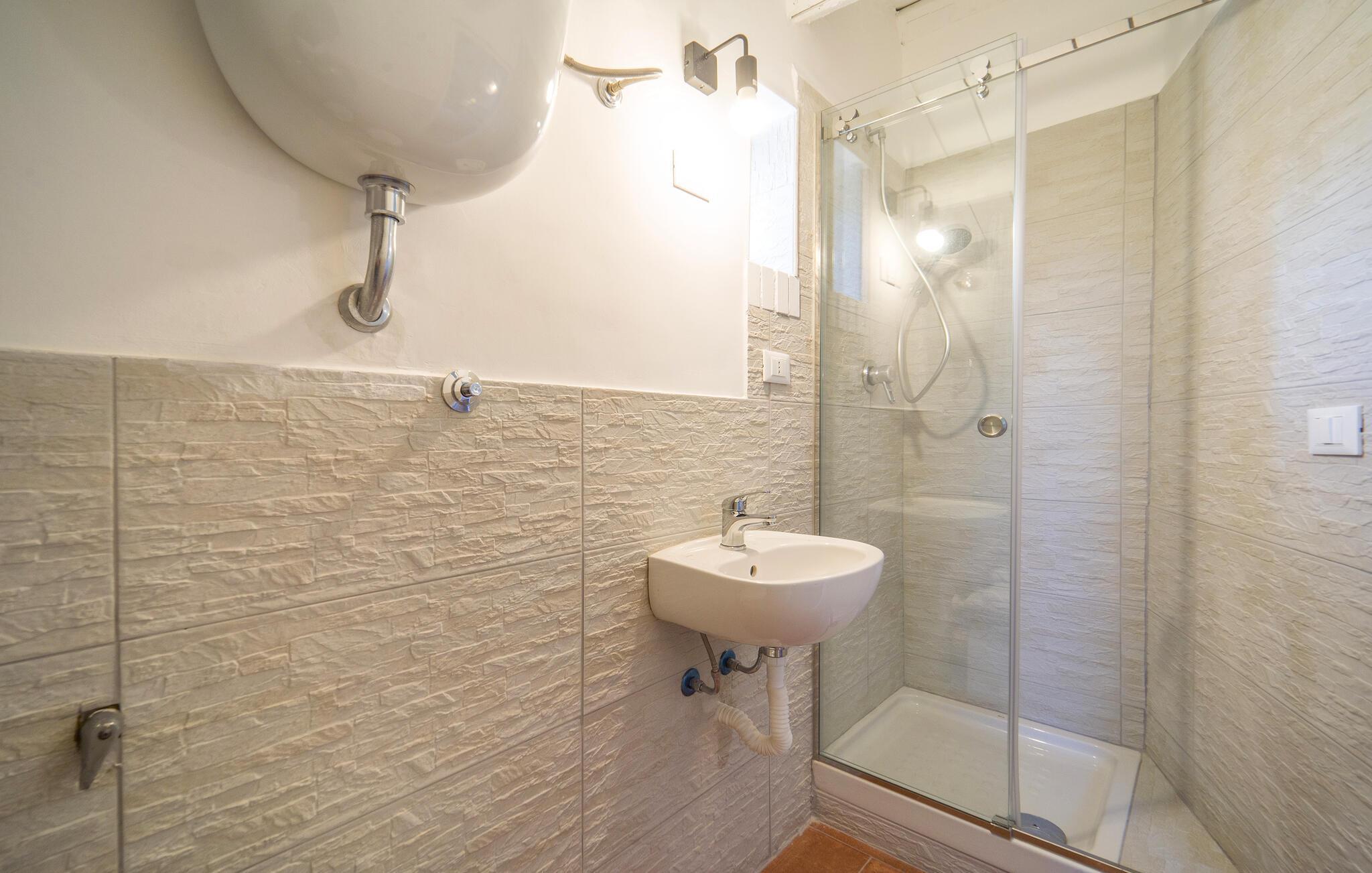 Badezimmer (nr. 2) - WC. Warmes und kaltes Wasser. Dusche