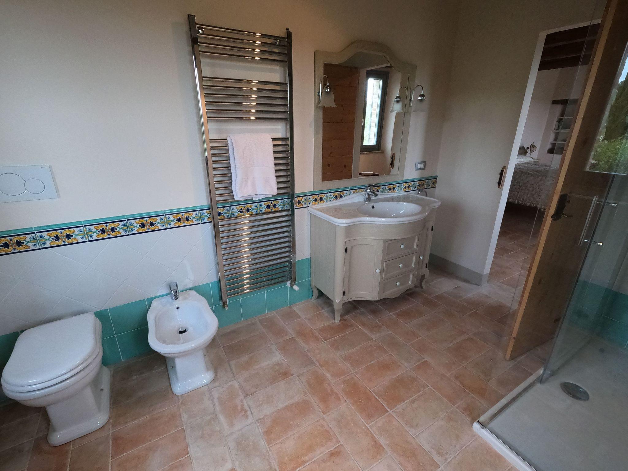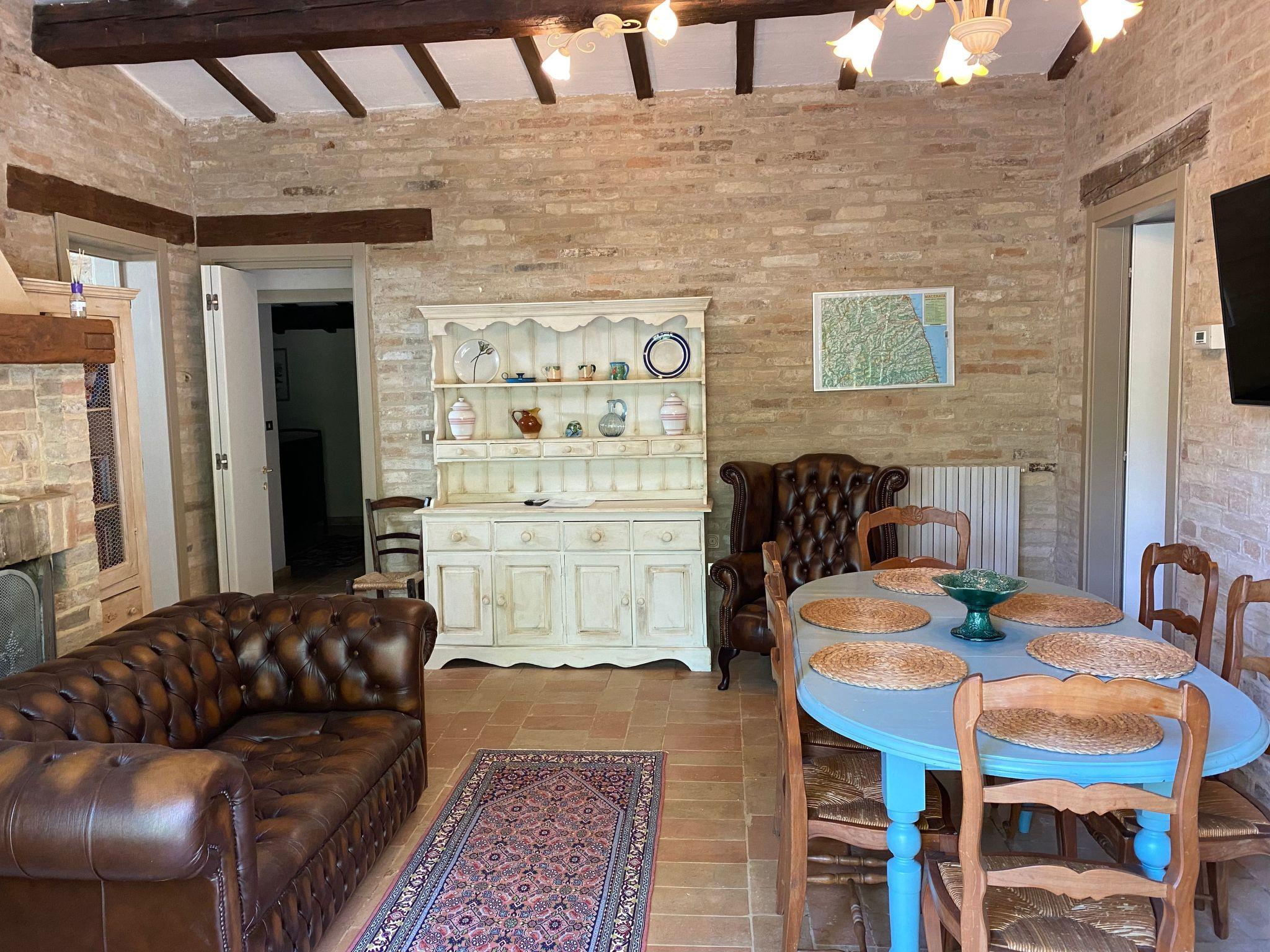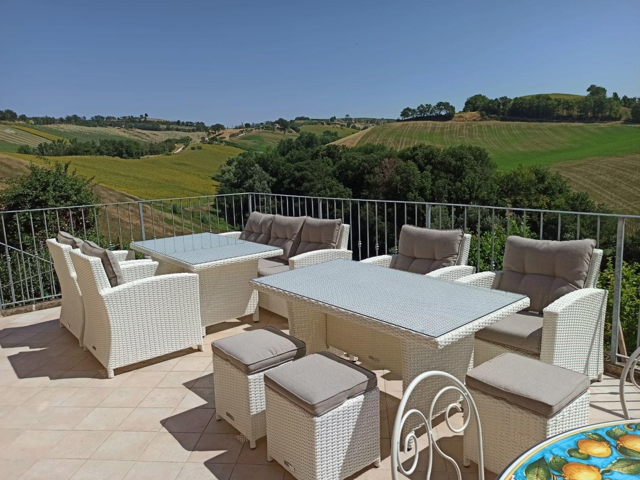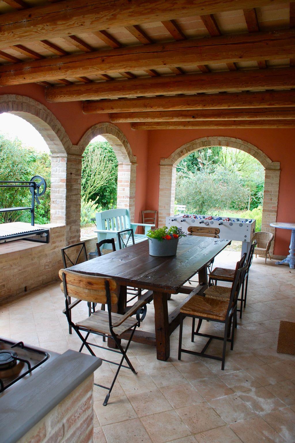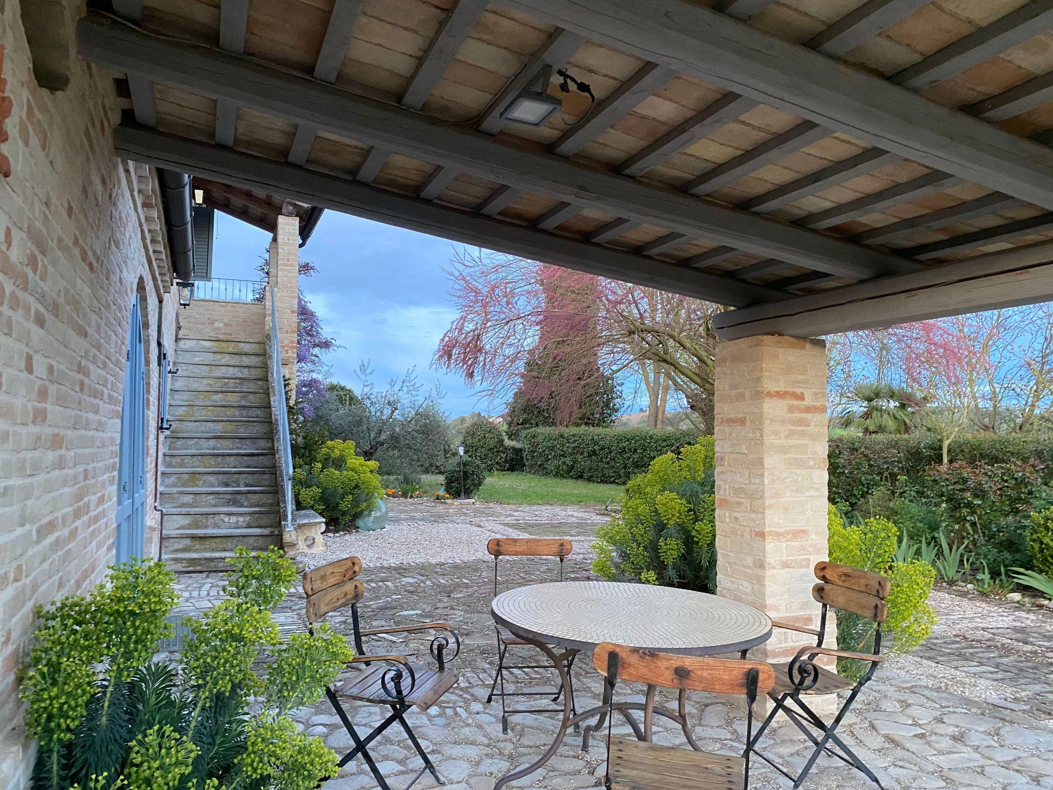 Von der oberen Terrasse hat man einen herrlichen Blick auf die hügelige Landschaft der Marken, den Pool, den Garten und die Sibillini-Berge im Hintergrund. Der Garten ist komplett eingezäunt und die asphaltierte Zufahrtsstraße ist sehr ruhig und ohne Durchgangsverkehr, was bedeutet, dass es sehr ruhig ist. Es gibt 4-5 Parkplätze vor dem Haus.