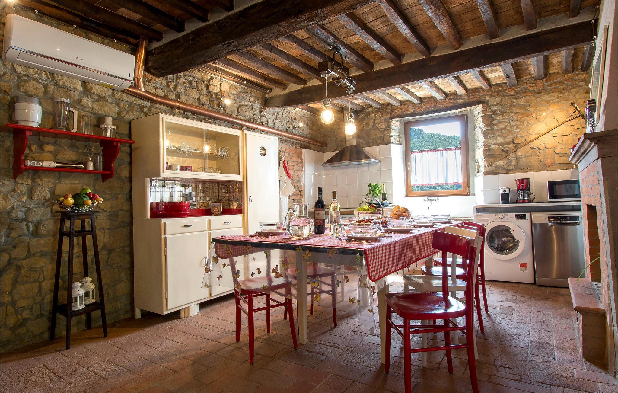 Diese charakteristische Ferienwohnung im Landhausstil, aus Stein und Holz, befindet sich in dem malerischen Dorf Benabbio, in einer hübschen und ruhigen Lage auf den Hügeln von Bagni di Lucca, in der bewaldeten Garfagnana, die bei Wanderfreunden sehr beliebt ist. Den Gästen steht ein reservierter und umzäunter Außenbereich von ca. 180 m² mit Naturrasen und Garten zur Verfügung, der mit Tisch, Stühlen, Sonnenschirm und Grill für Mahlzeiten im Freien sowie mit Spielen für Kinder, Whirlpool für 4/6 Personen und Liegestühlen ausgestattet ist. Der Parkplatz befindet sich auf einer öffentlichen Straße, ca. 60 m von der Unterkunft entfernt. Sie können das Haus nur zu Fuß erreichen (die Straße ist für Autos zu eng). Ihr vierbeiniger Freund ist willkommen. Im etwa 4 km entfernten Fluss "La Lima" können Sie angeln und die Gegend bei einem Spaziergang erkunden. Ein Abenteuerpark befindet sich in ca. 10 km Entfernung (Vereinbarung mit der Unterkunft). Im Untergeschoss ist eine Wohnung geschlossen und für den Eigentümer als Abstellraum reserviert. Lage: Bagni di Lucca (Thermalbäder) ca. 5 km; Lucca mit seinen imposanten Stadtmauern, schönen Kirchen und vielen Veranstaltungen etwa 33 km; Das Skigebiet Abetone in 42 km; Pisa mit dem weltberühmten Schiefen Turm etwa 50 km; Viareggio mit seiner schönen langen Seepromenade und den Stränden der Versilia ist 57 km entfernt.