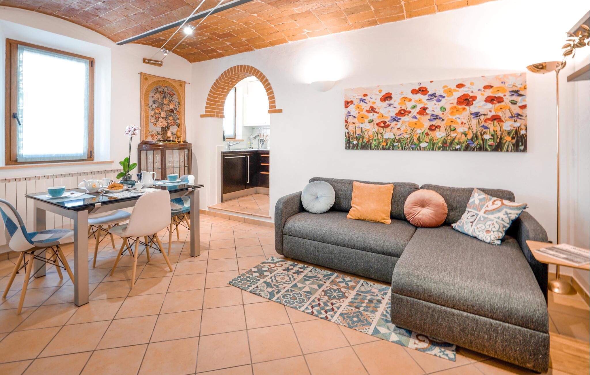 Der rustikale, typisch toskanische Stil Ihrer Ferienwohnung in Bettolle mit den warmen Farbtönen strahlt eine behagliche Atmosphäre aus. Der offene Wohn- und Essbereich lädt zu entspannten Abenden ein. Setzen Sie sich auf das gemütliche Sofa und genießen Sie nach einem erlebnisreichen Tag ein Glas lokalen Wein. Bereiten Sie in der Küche Ihre eigenen Mahlzeiten mit frischen Zutaten vom lokalen Markt zu. Auf dem Markt in Bettolle finden Sie nicht nur frische Produkte, sondern auch typisch toskanische Spezialitäten.