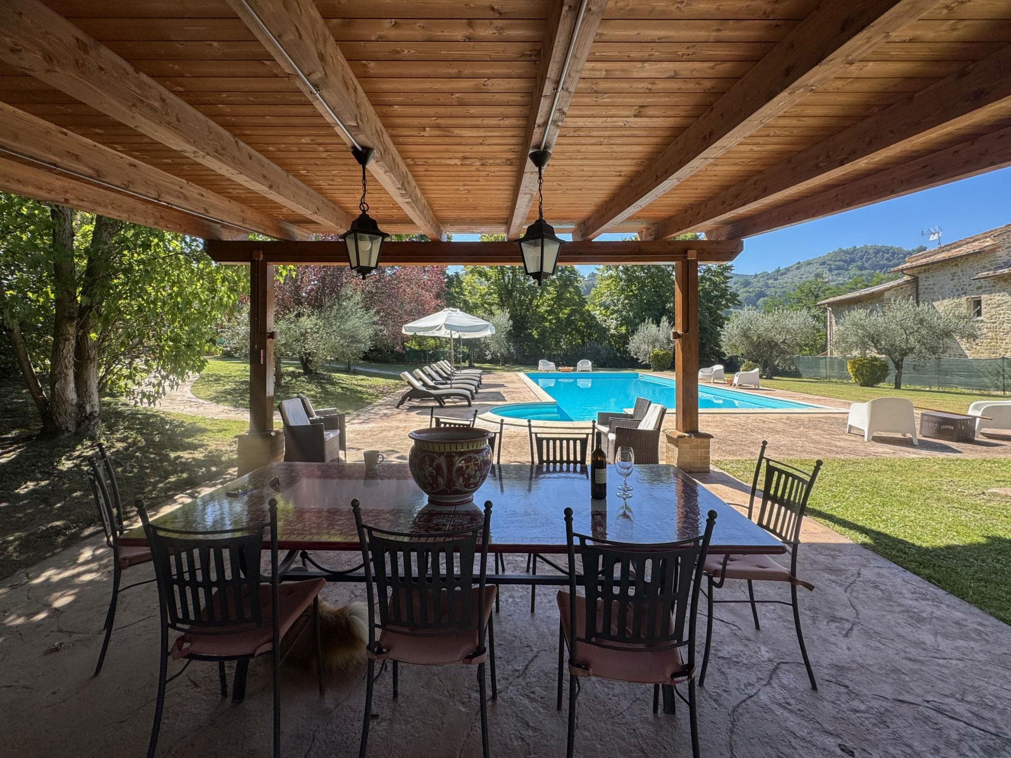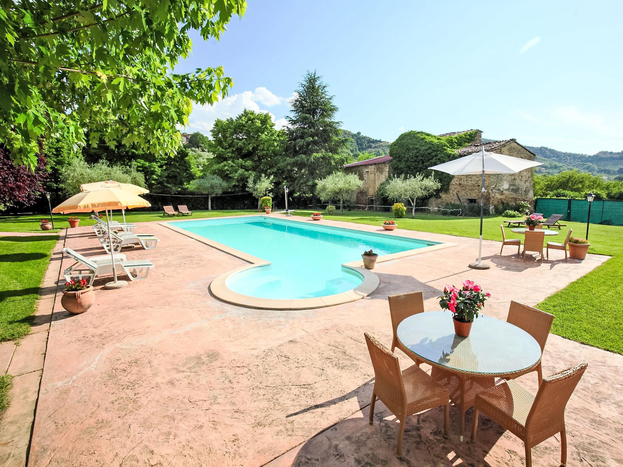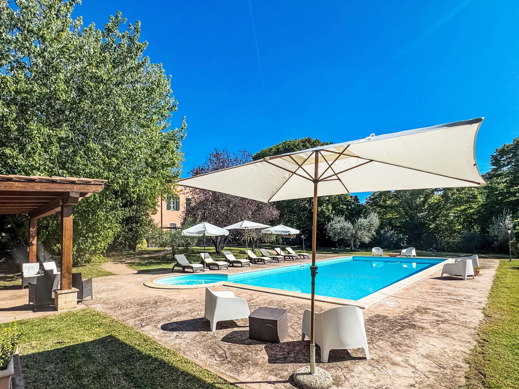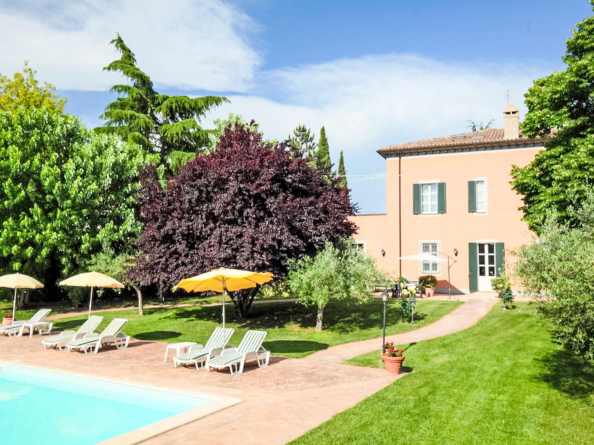 Das Haus wurde Mitte des 19. Jh. von ist Baron einer noblen Familie von Perugia, dessen verwandtschaftliche Verbindungen zurück gehen bis zum Grafen Barberini von Rom und zu Pabst Pius IX. Die Villa und die Fresken wurden vor kurzem von seinen Erben sorgfältig, unter Berücksichtigung ursprünglicher architektonischer Kriterien renoviert. Eine Hauptstrasse führt in ca. 3 m Entfernung am Haus vorbei. Florenz und Rom liegen in 150 km Entfernung, Todi liegt in 30 km Entfernung, Spoleto liegt in 40 km Entfernung und der Flughafen von Perugia liegt in 15 km Entfernung. Villa "Paolotti", Baujahr 1870. In einem Weiler, 3 km vom Zentrum von Bettona, 18 km vom Zentrum von Perugia, sonnige Lage, an einer Hauptstrasse. Zur Alleinbenutzung: Garten (eingezäunt), Schwimmbad (14 x 6 m, 145 cm tief, saisonale Verfügbarkeit: 25.Mai. - 30.Sep.). Pergola, Gartenmöbel, Grill. Im Hause: Waschmaschine. Zur Verfügung: Fahrräder (4) (extra). Parkplatz auf dem Grundstück. Lebensmittelgeschäft 100 m, Supermarkt 1 km, Restaurant 1 km. Reitstall 3 km. Nahe gelegene Sehenswürdigkeiten: Assisi 15 km. Der Besitzer akzeptiert keine Jugendgruppen.