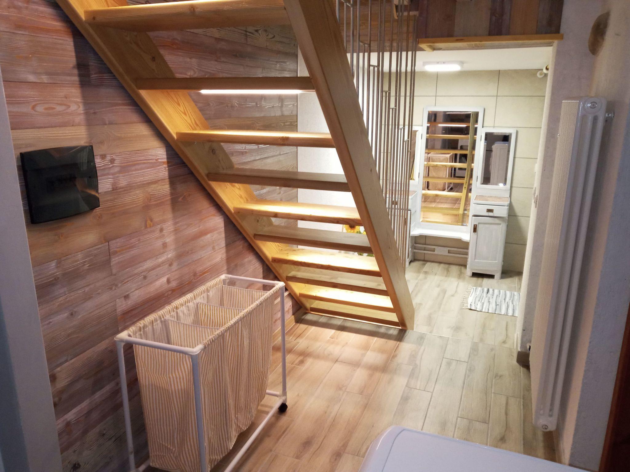 Im Inneren zeichnet sich Casa Max durch seine kürzliche Renovierung aus, sowohl ästhetisch als auch funktionell. Im Erdgeschoss befindet sich das Hauptbadezimmer mit Duschkabine, Kinderbadewanne und Toilette, daneben ein praktischer Waschraum mit Waschmaschine und ein Schlafzimmer mit zwei Einzelbetten. Über eine Holztreppe gelangen Sie in den ersten Stock, wo Sie einen gemütlichen Raum mit einer voll ausgestatteten Küche, ein Wohnzimmer mit Stube, Sesseln und Satellitenfernsehen, ein weiteres Badezimmer mit Toilette, ein Schlafzimmer mit Doppelbett und ein Zimmer mit zwei Einzelbetten vorfinden, die alles bieten, was Sie für einen komfortablen und erholsamen Aufenthalt benötigen.