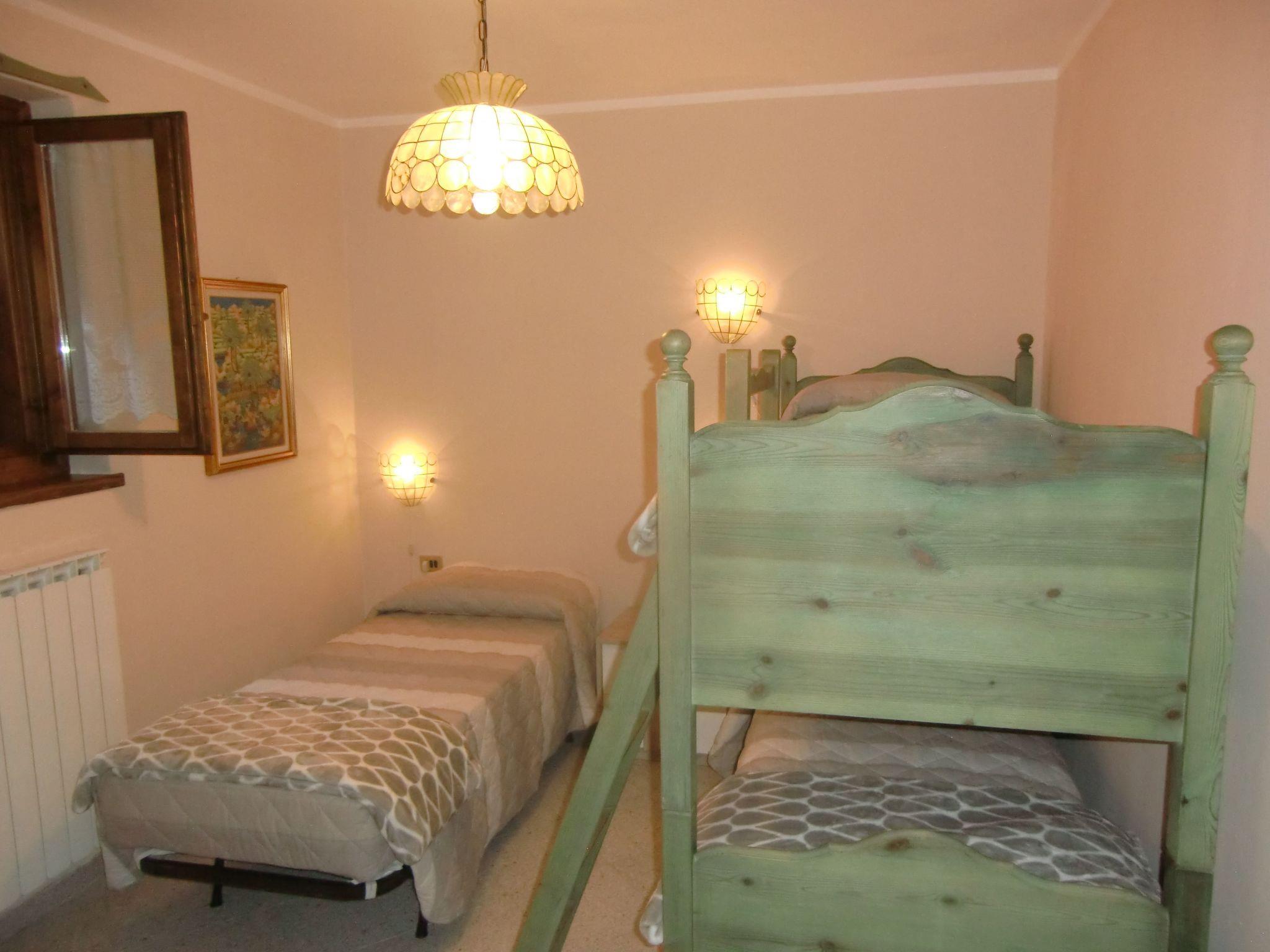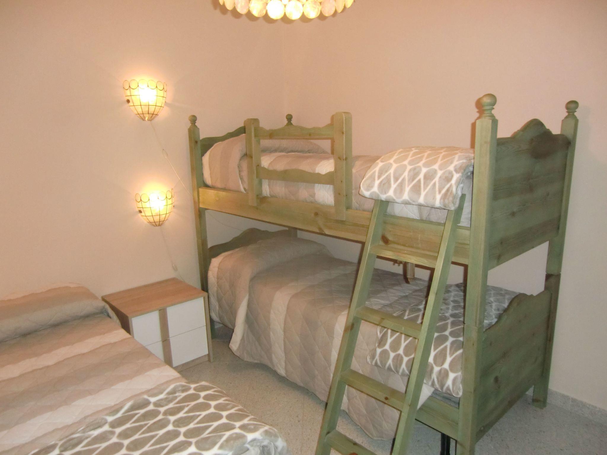 Im Wohnzimmer, das ziemlich groß ist, gibt es einen Esstisch, ein Sofa, Satellitenfernsehen und einen Holzkamin. Im ersten Stock gibt es zwei Schlafzimmer, eines mit einem Doppelbett und eines mit einem Etagenbett und einem Einzelbett sowie ein weiteres Badezimmer.