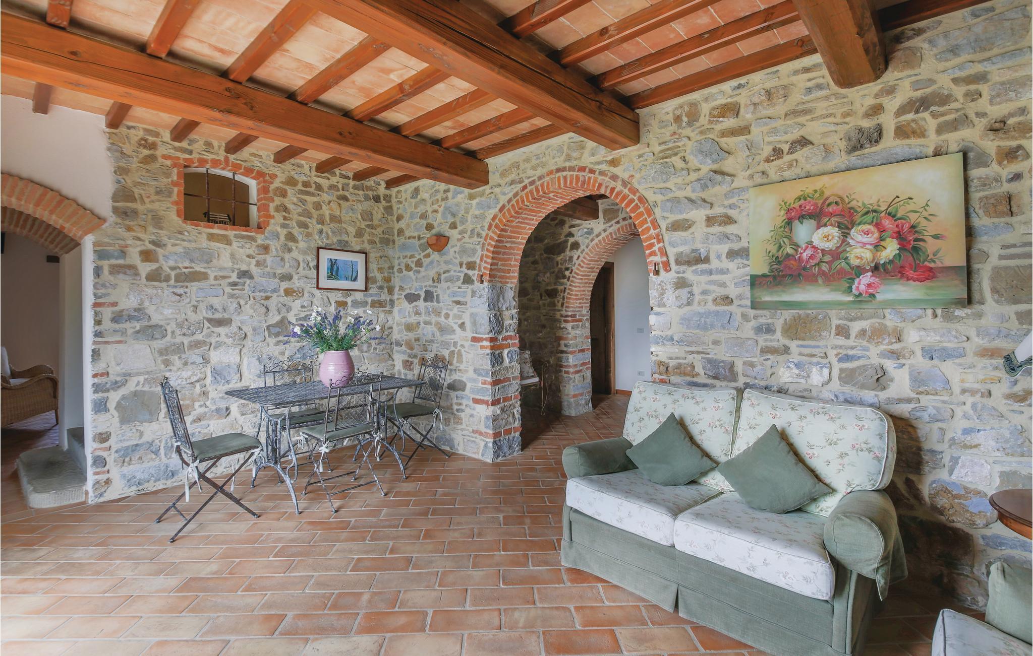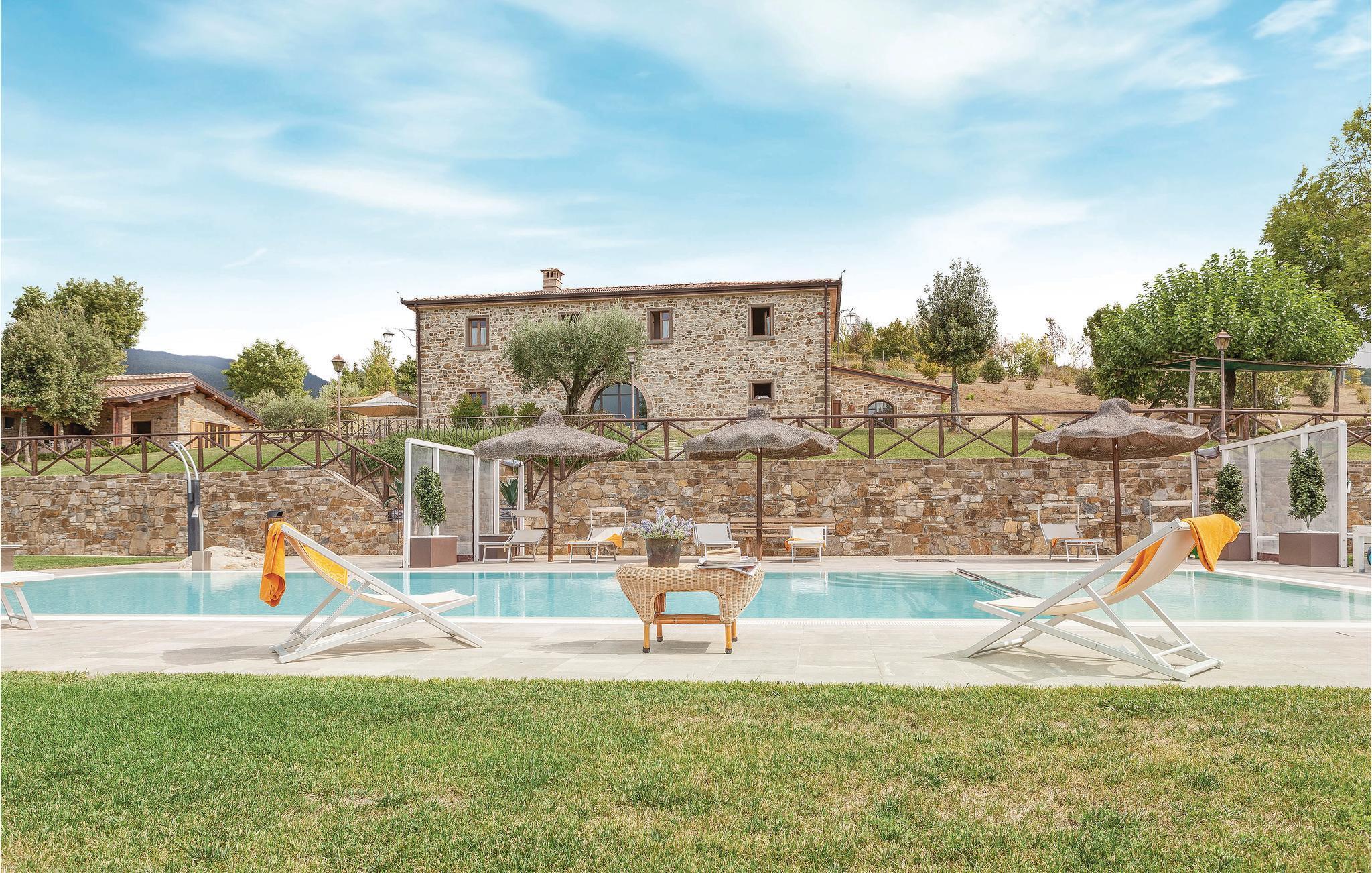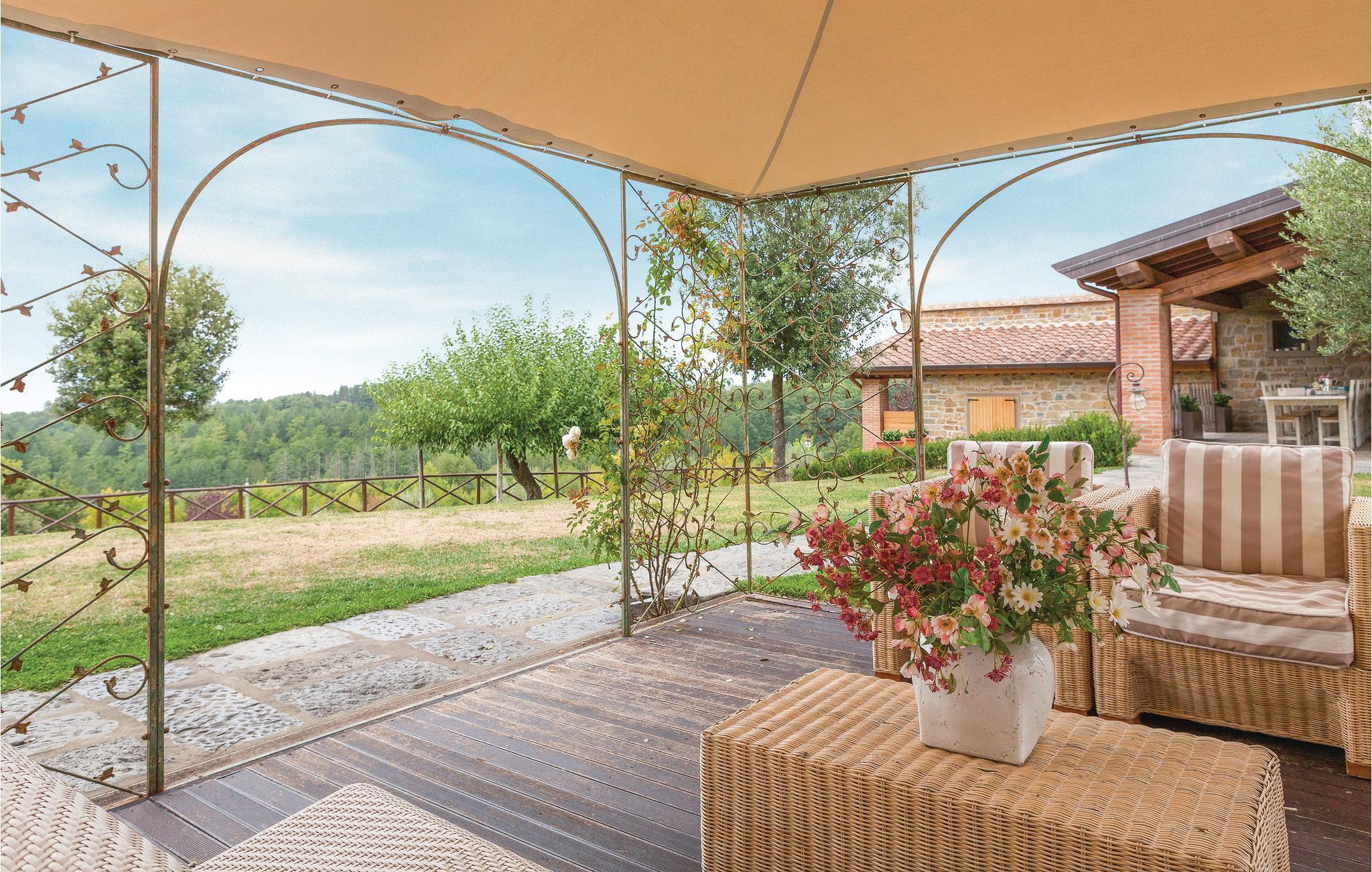 Hier erwartet Sie ein wohnliches Landhaus mit Pool in ruhiger Hügellage, 3,5 km von Bibbiena entfernt. Dieses exklusive Anwesen besteht aus zwei typischen Natursteinhäusern: dem Hauptgebäude mit Eingangsbereich, Kaminzimmer und den Gästezimmern, alle mit Bad; dem Nebengebäude mit Speisesaal und Profi-Küche. Überdachte Terrasse mit Trinkwasserbrunnen. Auf dem parkähnlichen Grundstück Ihres Feriendomizils stehen Ihnen verschiedene überdachte Sitzgruppen, ein Barbecue und vor allem der großzügige Poolbereich mit Sonnenterrasse zur Verfügung. Von überall genießen Sie einen einzigartigen Blick auf die Wälder des Casentino. Und wenn Sie sich rundherum verwöhnen lassen wollen, so können Sie sich - auf Anfrage - lokale Speisen vor Ort zubereiten lassen und sie auf der überdachten Terrasse beim Sonnenuntergang genießen. Ein Paradies zum Entspannen, aber auch für Trekking und Exkursionen zum nahen Franziskanerkloster La Verna und zu den Städtchen und Burgen des Casentino. Sie erreichen außerdem gleichermaßen günstig Arezzo (35km) und Florenz (60km).