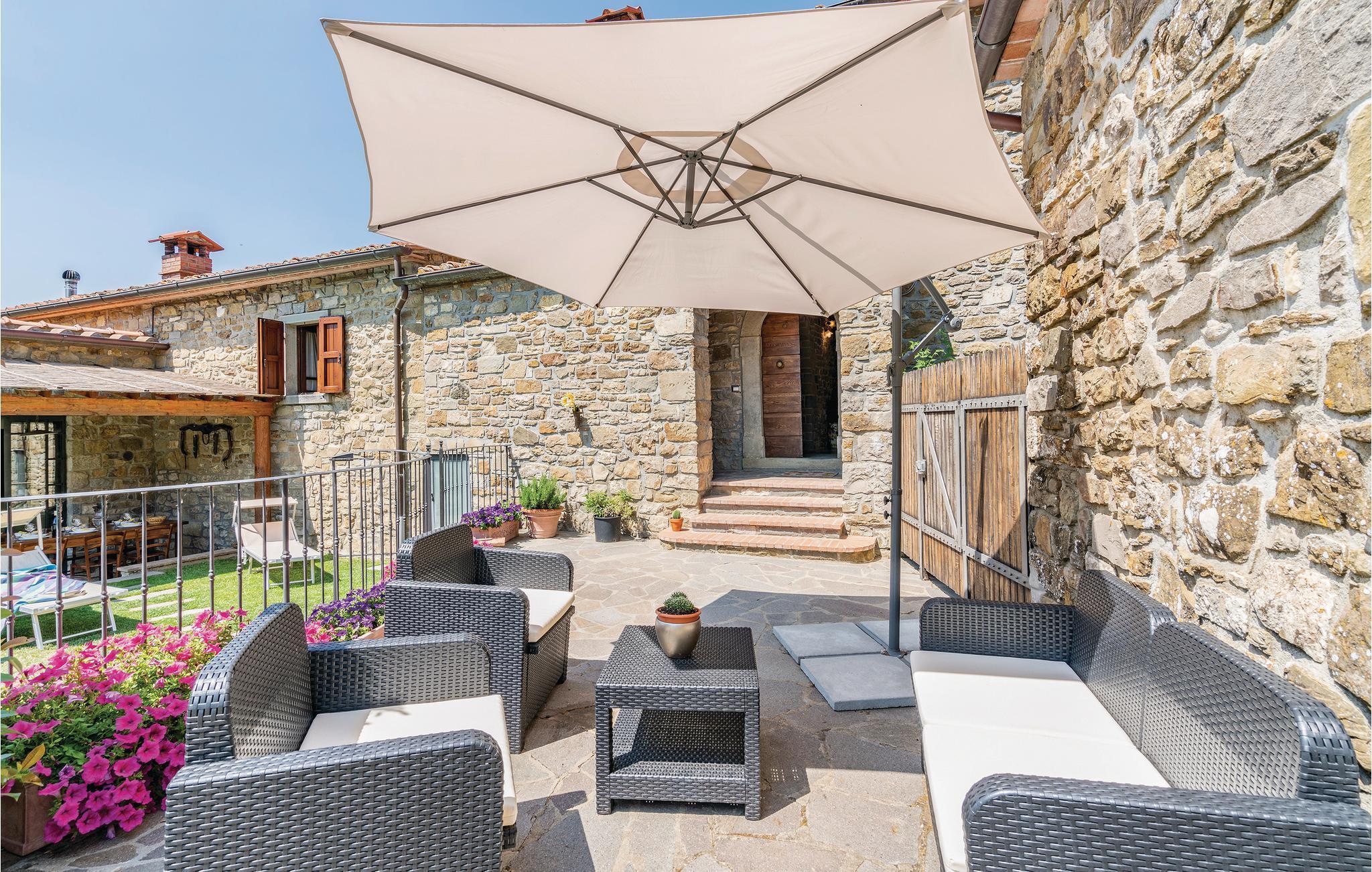 Ferienhaus im historischen Dorf Croce di Sarna in der Nähe von Arezzo. Das Steinhaus befindet sich in ruhiger Panoramalage und bietet einen privaten Außenbereich mit Außenpool, Whirlpool und Gartenmöbeln. Neben der Küche im Hauptgebäude steht den Gästen auch eine Küche am Pool zur Verfügung, die sich ideal eignet, um köstliche Mahlzeiten im Freien zuzubereiten und zu genießen. Empfohlene Ausflüge sind die Stadt Arezzo mit dem wunderschönen historischen Zentrum und der Piazza Grande, auf der an jedem ersten Wochenende im Monat ein interessanter Antiquitätenmarkt stattfindet, die Kirche San Francesco mit den Fresken von Piero della Francesca; Der Casentino Naturpark sowie ein Ausflug zum wunderschönen Trasimenischen See in Umbrien mit seinen ausgestatteten Stränden und romantischen Inseln sind ebenfalls empfehlenswert.