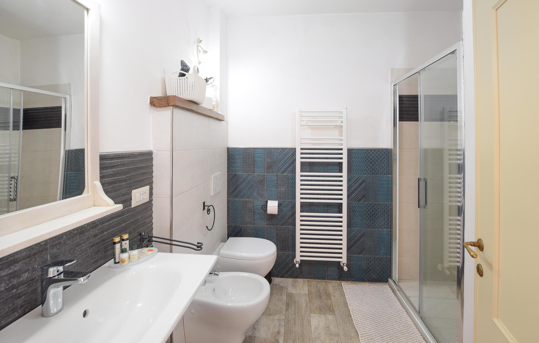 Badezimmer (nr. 2) - WC. Warmes und kaltes Wasser. Dusche