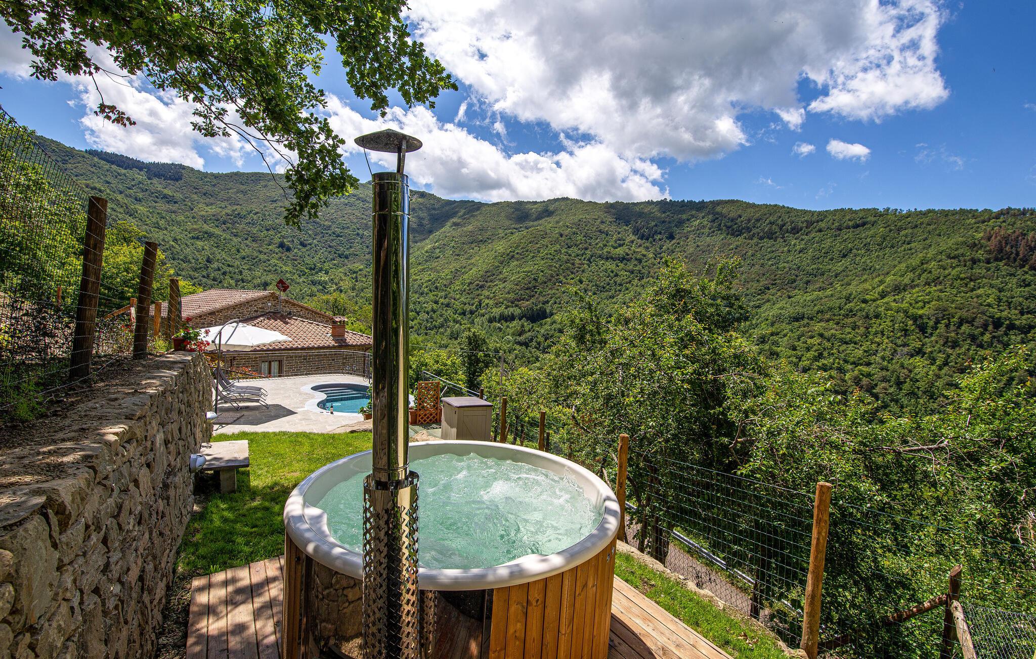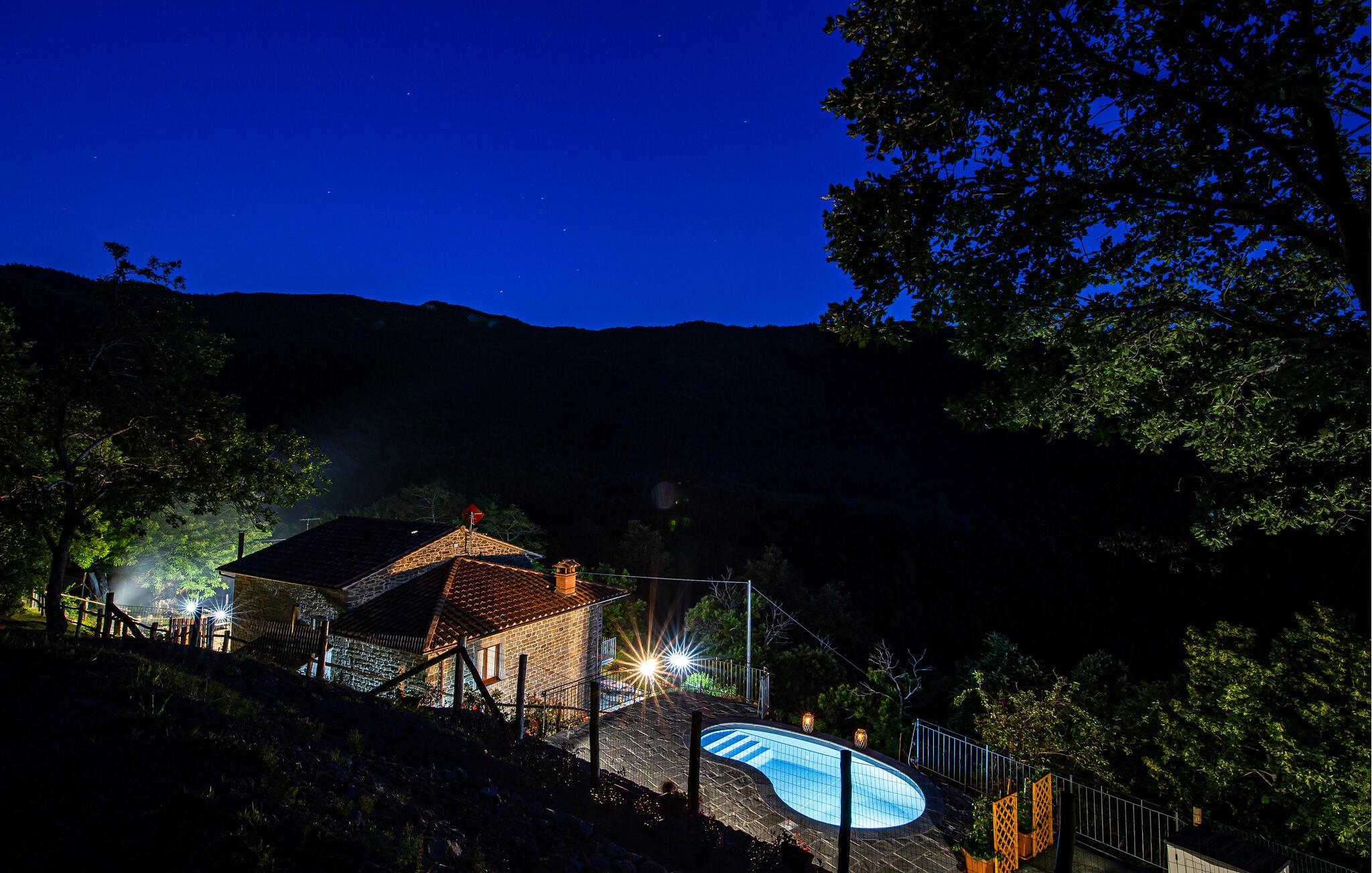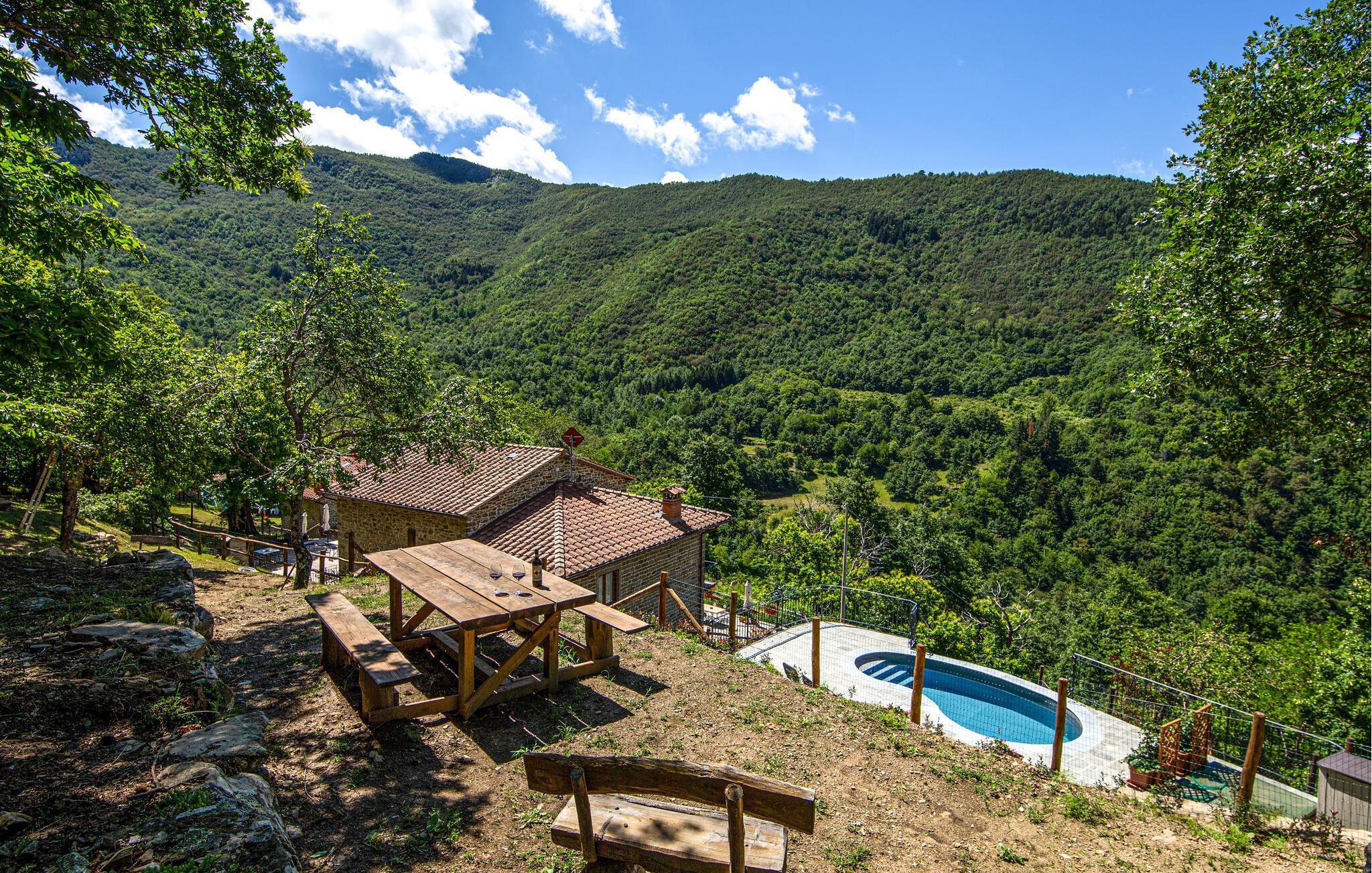 Das Steinhaus aus dem 19. Jahrhundert begrüßt Sie mit rustikalem Charme auf mehr Ebenen. Es verfügt über 4 unabhängige Wohnungen mit offenen Wohnküchen und eine Essküche mit Platz für bis zu 10 Personen. Das Haus ist die ideale Unterkunft, um einen entspannten Familienurlaub in der Natur zu verbringen. Die Höhepunkte sind sicherlich der Pool und das finnische Holzbad mit Hydromassage, beide mit großartigen Panoramaaussichten. Die Panoramaterrasse mit Grill, der Picknickplatz und die Hängematten unter den Kastanienbäumen sind auch wundervolle Orte, wo Sie sich nach Wanderungen gemeinsam entspannen können.