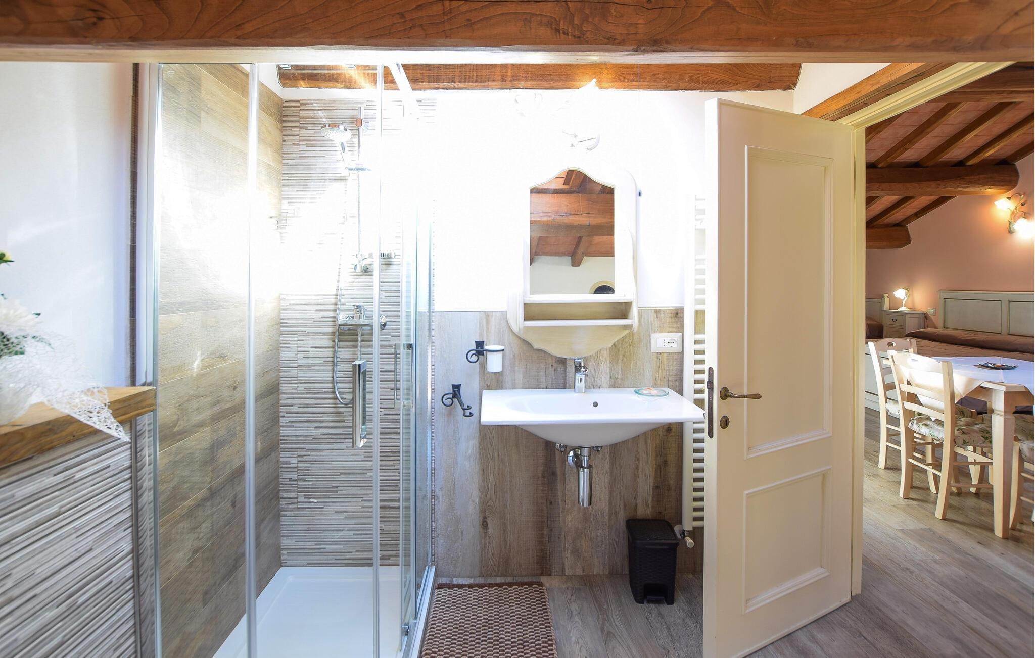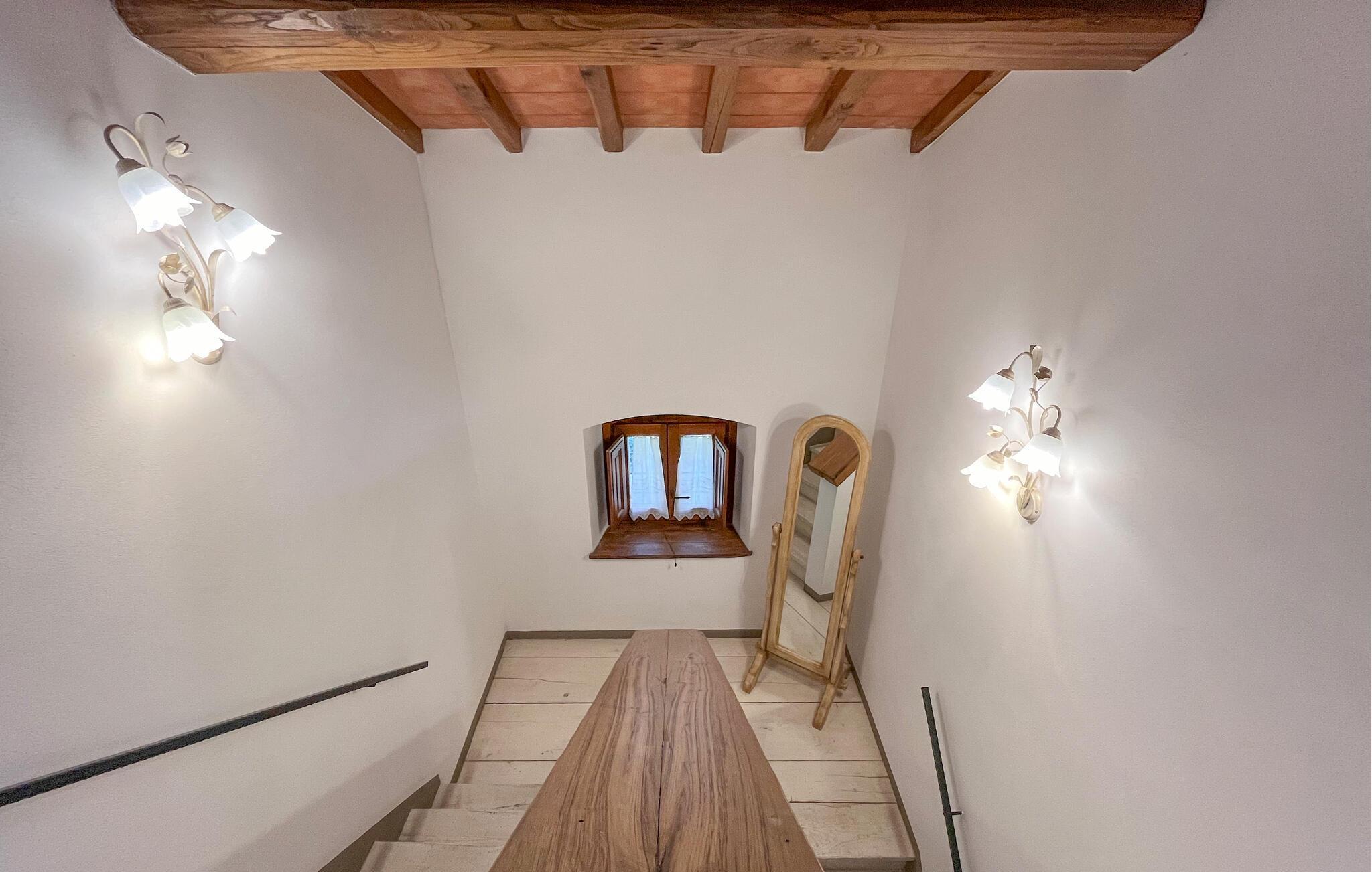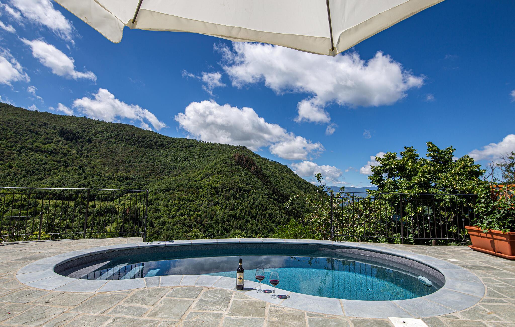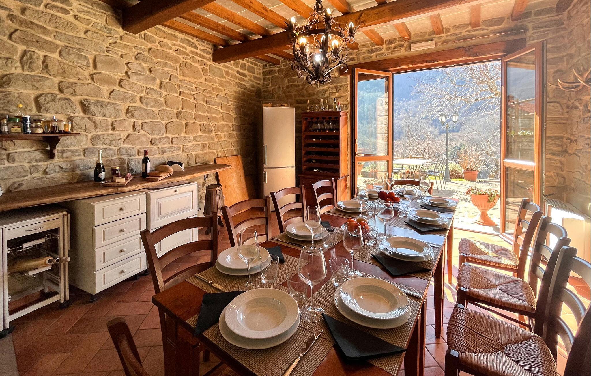 Das Steinhaus aus dem 19. Jahrhundert begrüßt Sie mit rustikalem Charme auf mehr Ebenen. Es verfügt über 4 unabhängige Wohnungen mit offenen Wohnküchen und eine Essküche mit Platz für bis zu 10 Personen. Das Haus ist die ideale Unterkunft, um einen entspannten Familienurlaub in der Natur zu verbringen. Die Höhepunkte sind sicherlich der Pool und das finnische Holzbad mit Hydromassage, beide mit großartigen Panoramaaussichten. Die Panoramaterrasse mit Grill, der Picknickplatz und die Hängematten unter den Kastanienbäumen sind auch wundervolle Orte, wo Sie sich nach Wanderungen gemeinsam entspannen können.