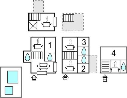 Badezimmer (nr. 4) - WC. Warmes und kaltes Wasser. Dusche