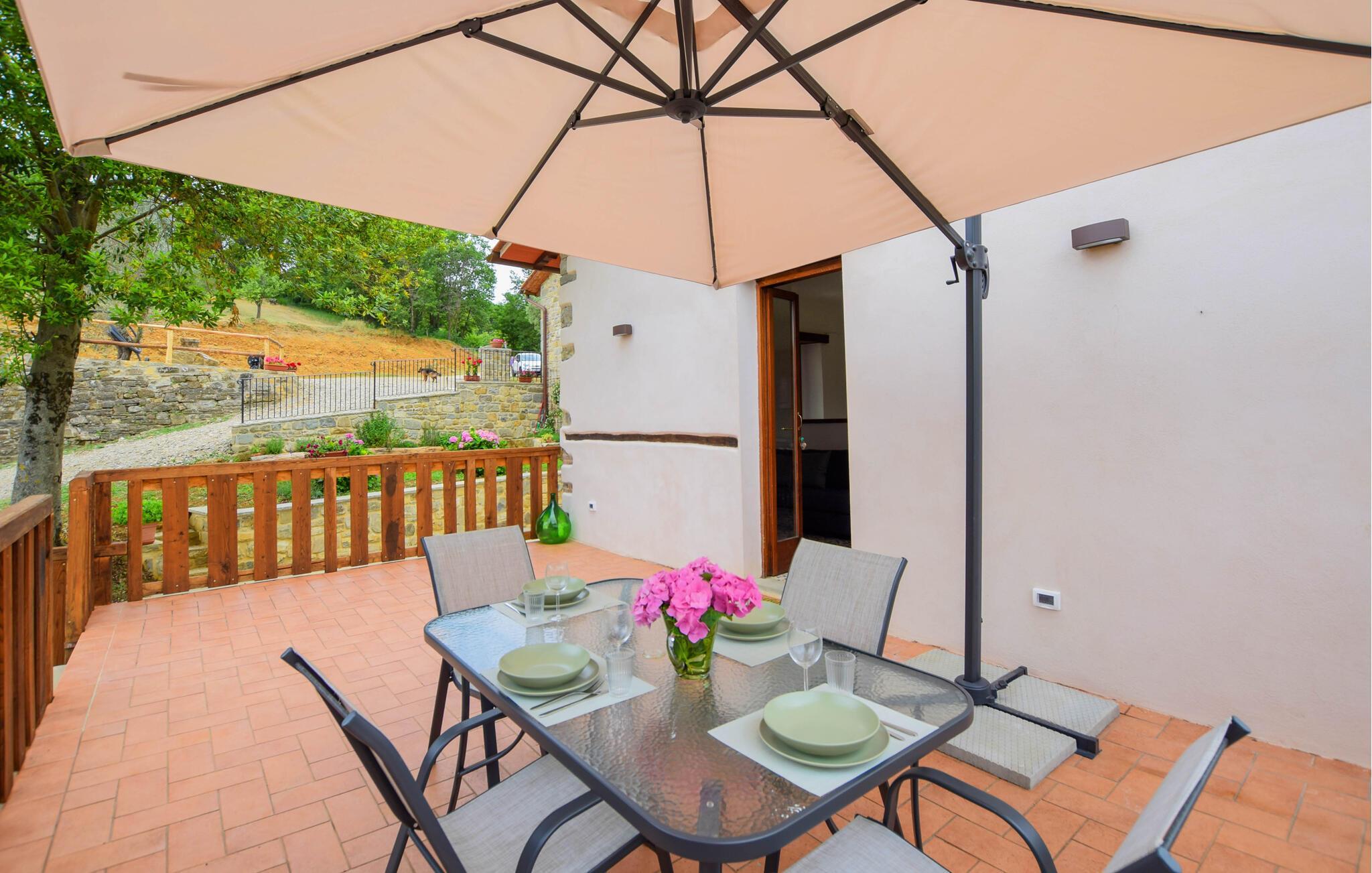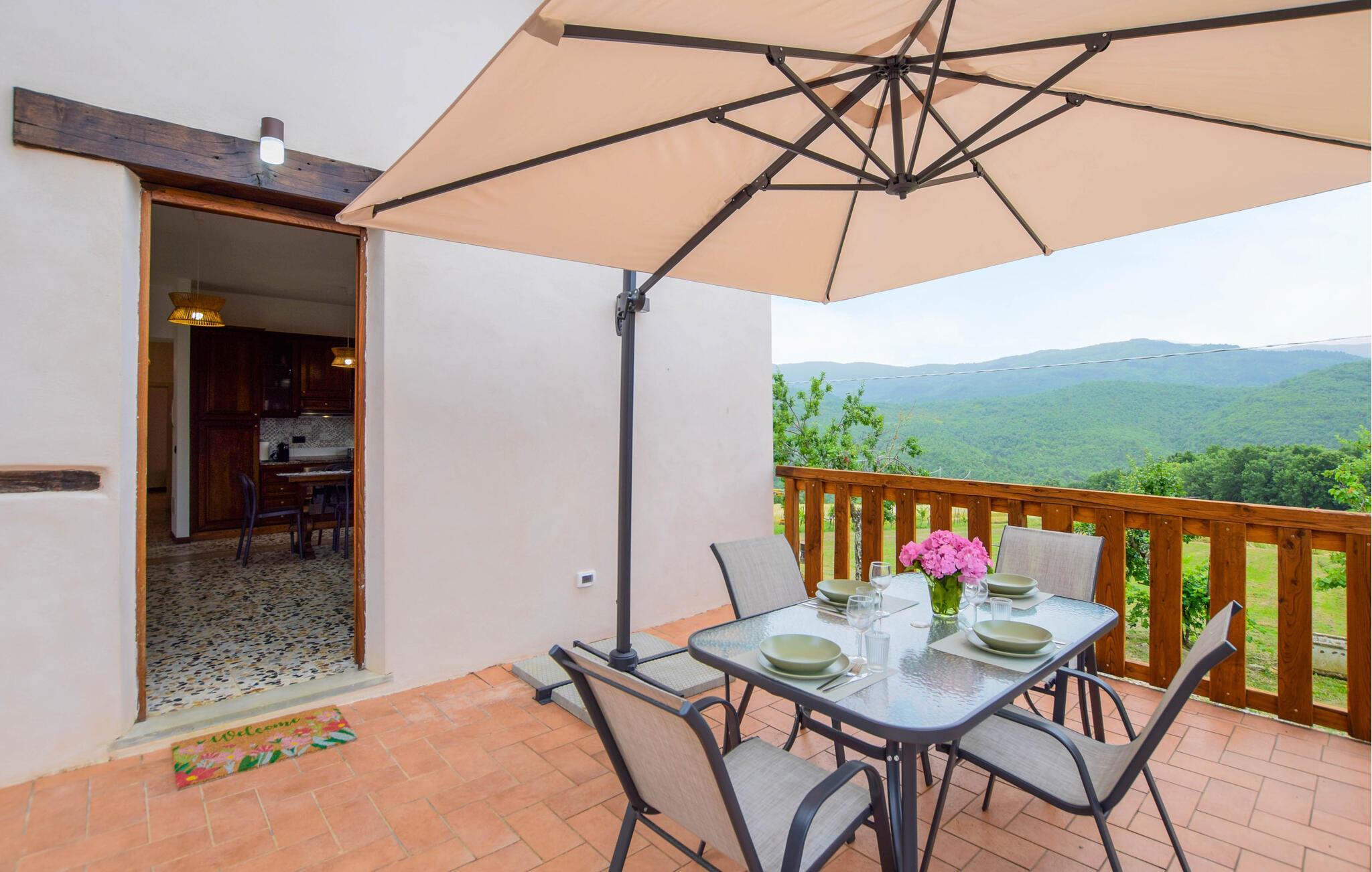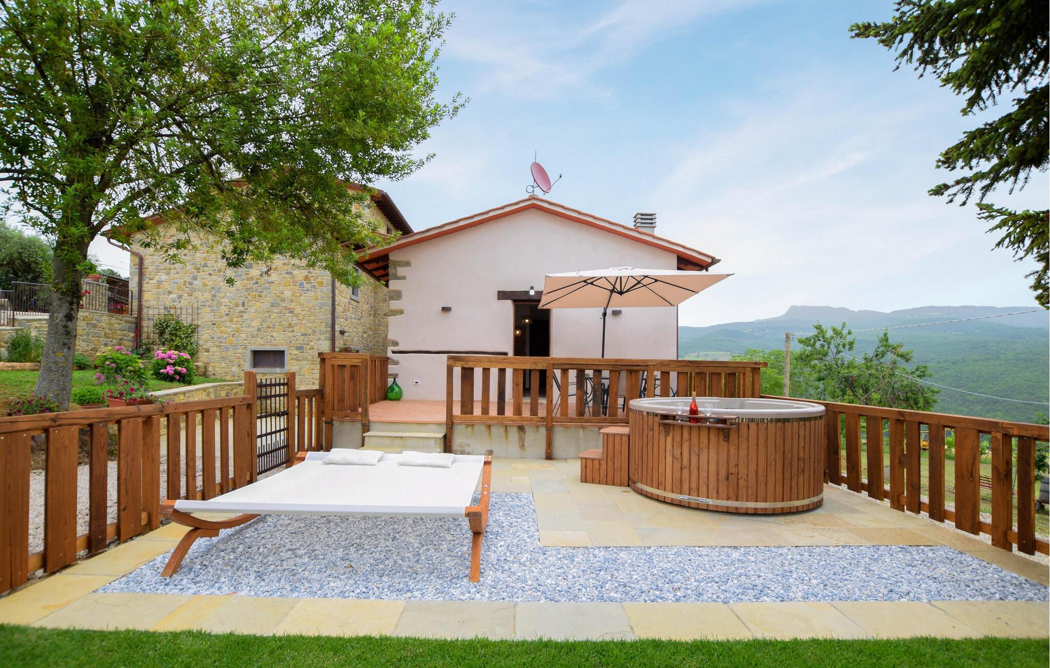 Inmitten der grünen Hügel des Casentino-Parks liegt diese charmante Doppelhaushälfte. Die Einrichtung verbindet rustikalen Charme mit modernem Komfort und schafft so eine gemütliche, entspannende Atmosphäre, in der Sie sich wie zuhause fühlen können. Gemeinsam mit Ihren Lieben können Sie hier Ihren Alltag hinter sich lassen, gemeinsam Kochen oder einfach die Beine auf dem Sofa hochlegen.