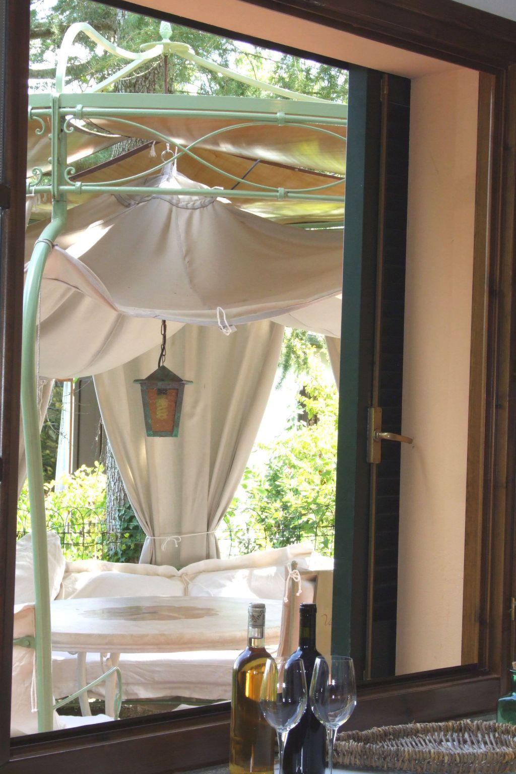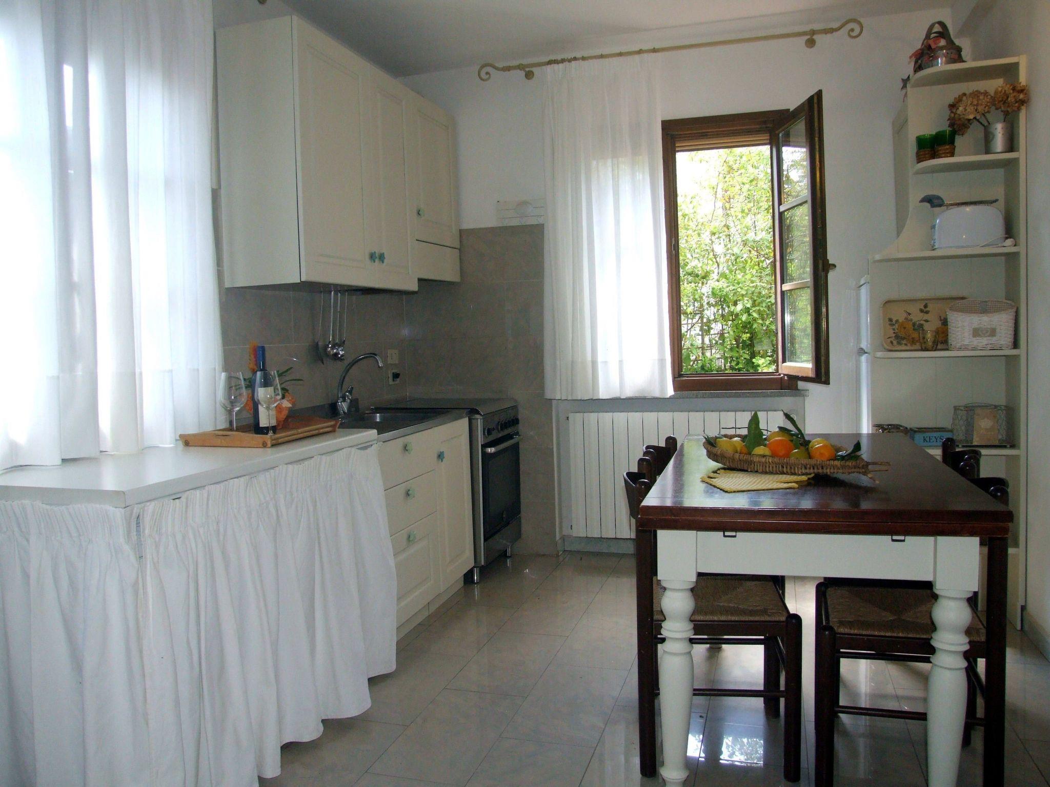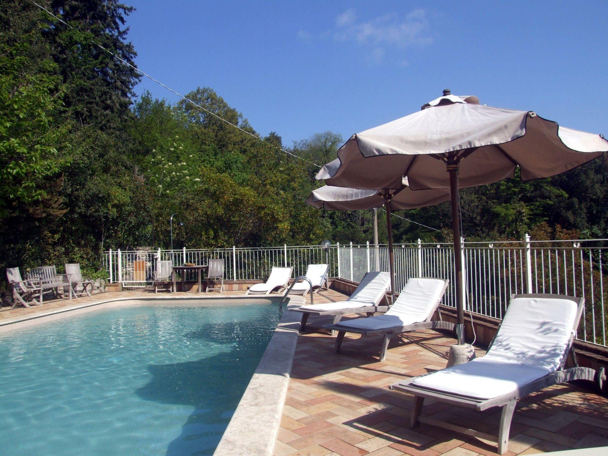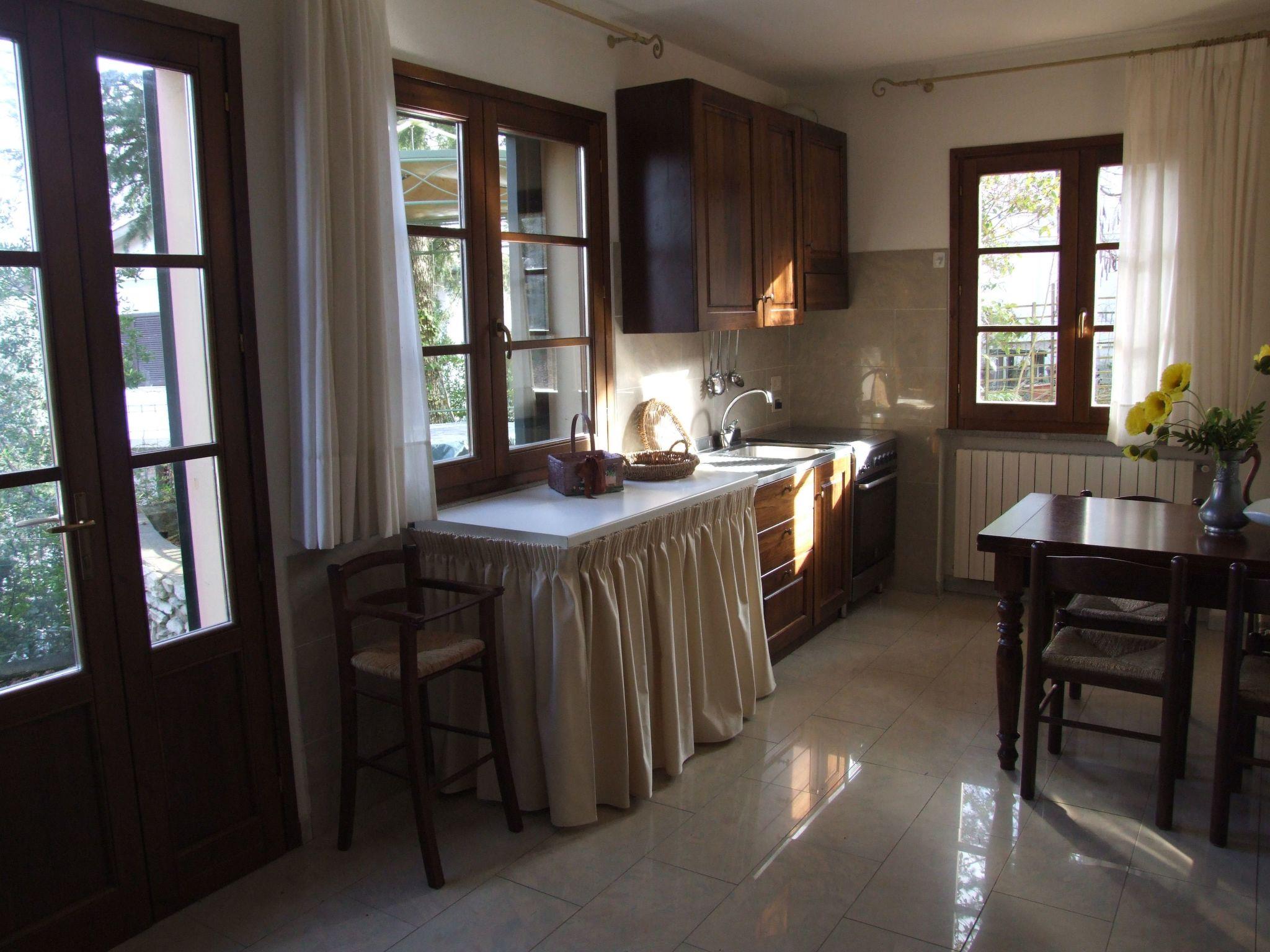 Das Ferienhaus mit einem 2000 qm großen Garten ist von einem Kastanienwald umgeben und liegt nur 800 Meter vom Dorf entfernt und besteht aus drei Ferienwohnungen.