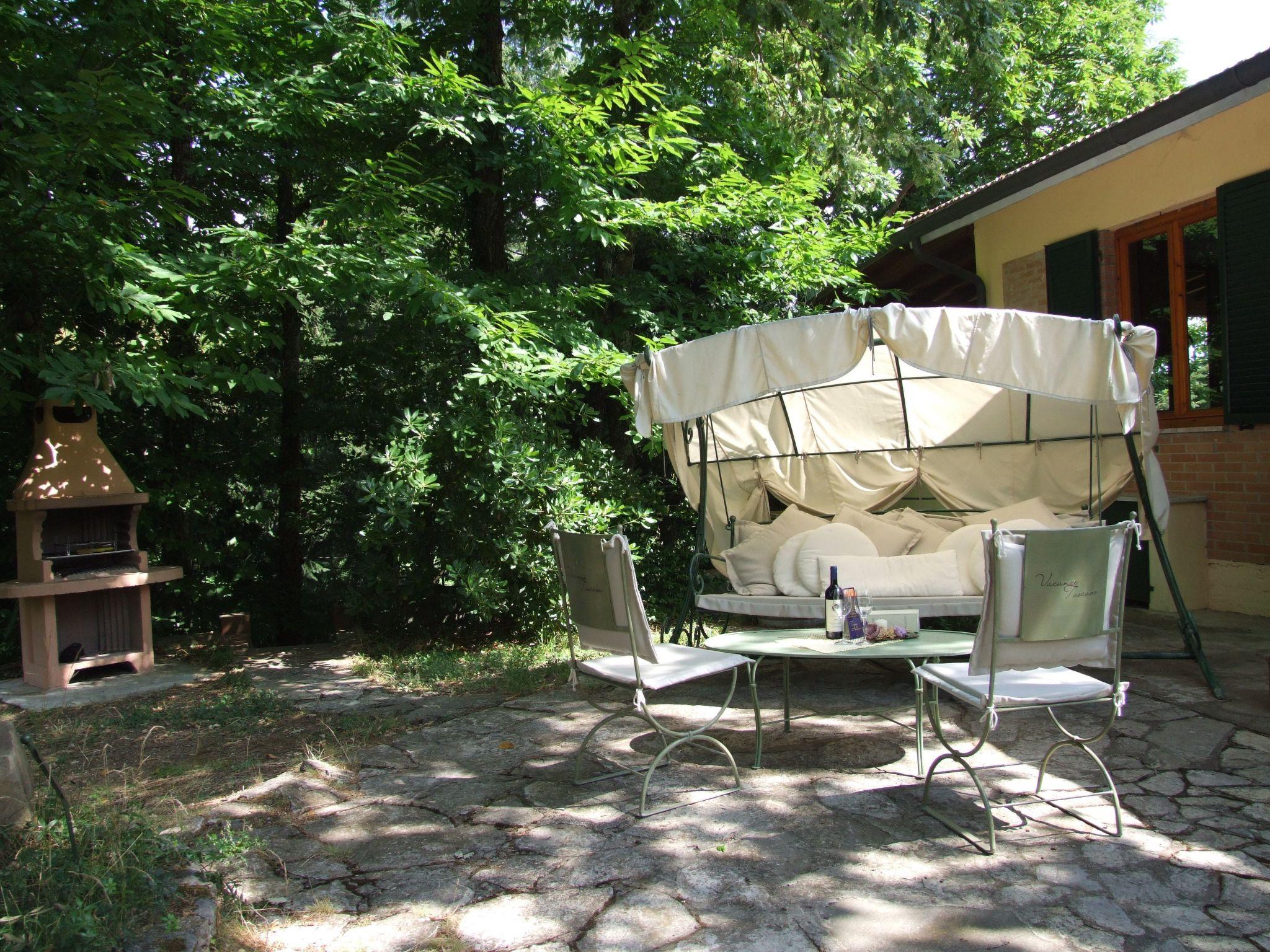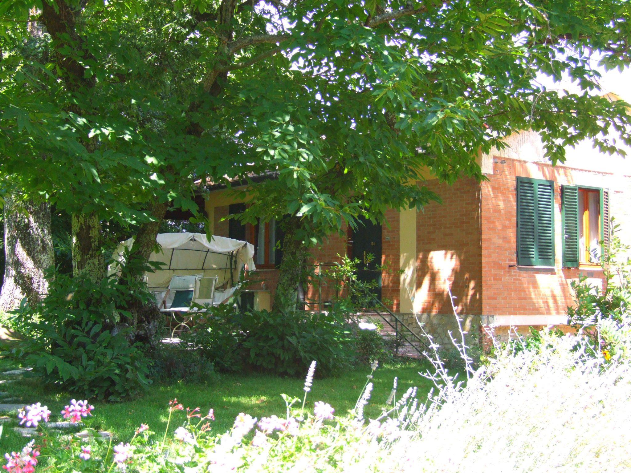 Das Ferienhaus mit einem 2000 Quadratmeter großen Garten ist von einem Kastanienwald umgeben und liegt nur 800 Meter vom Dorf entfernt und besteht aus drei Ferienwohnungen.