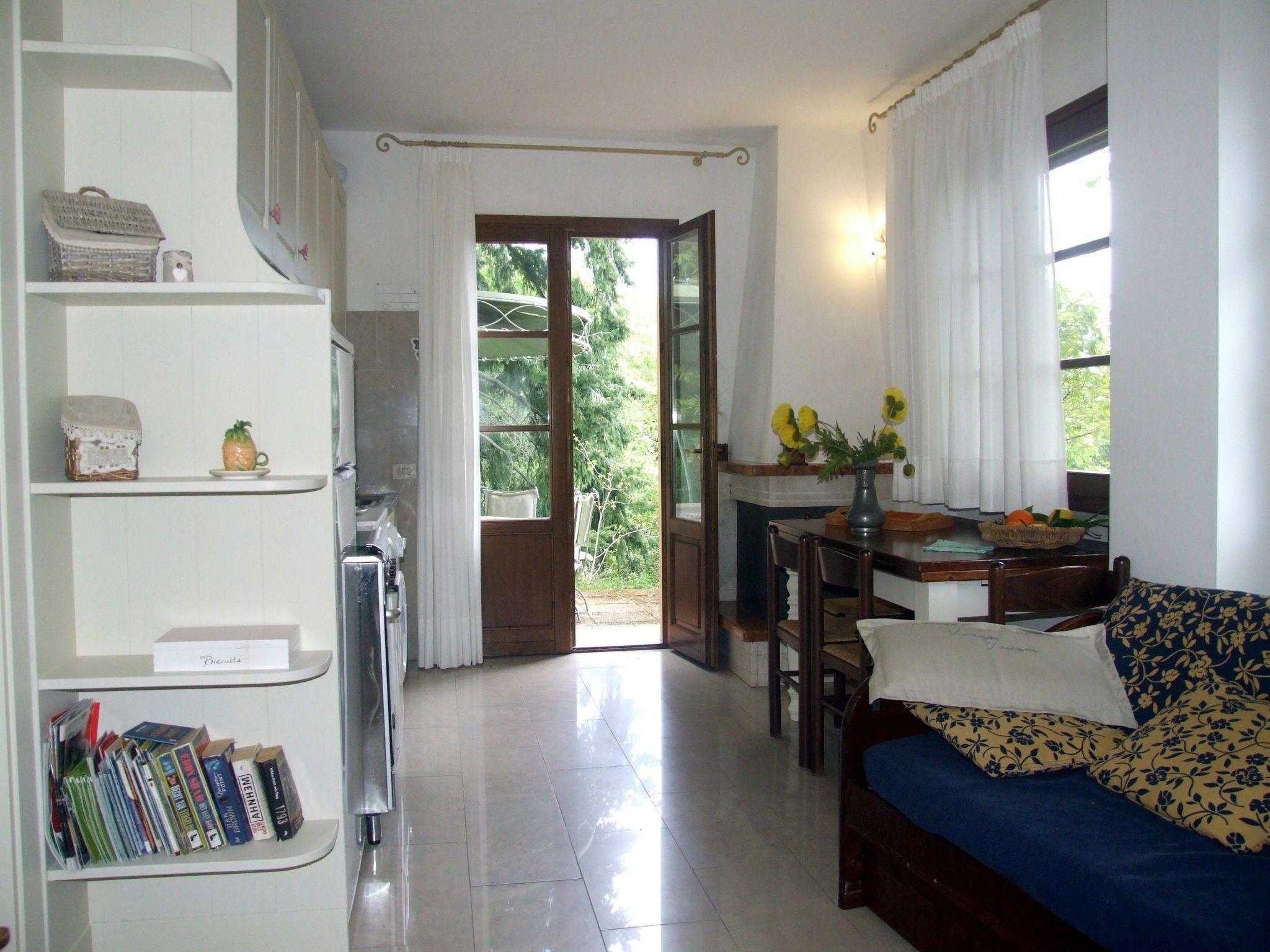 Das Ferienhaus mit einem 2000 Quadratmeter großen Garten ist von einem Kastanienwald umgeben und liegt nur 800 Meter vom Dorf entfernt und besteht aus drei Ferienwohnungen.