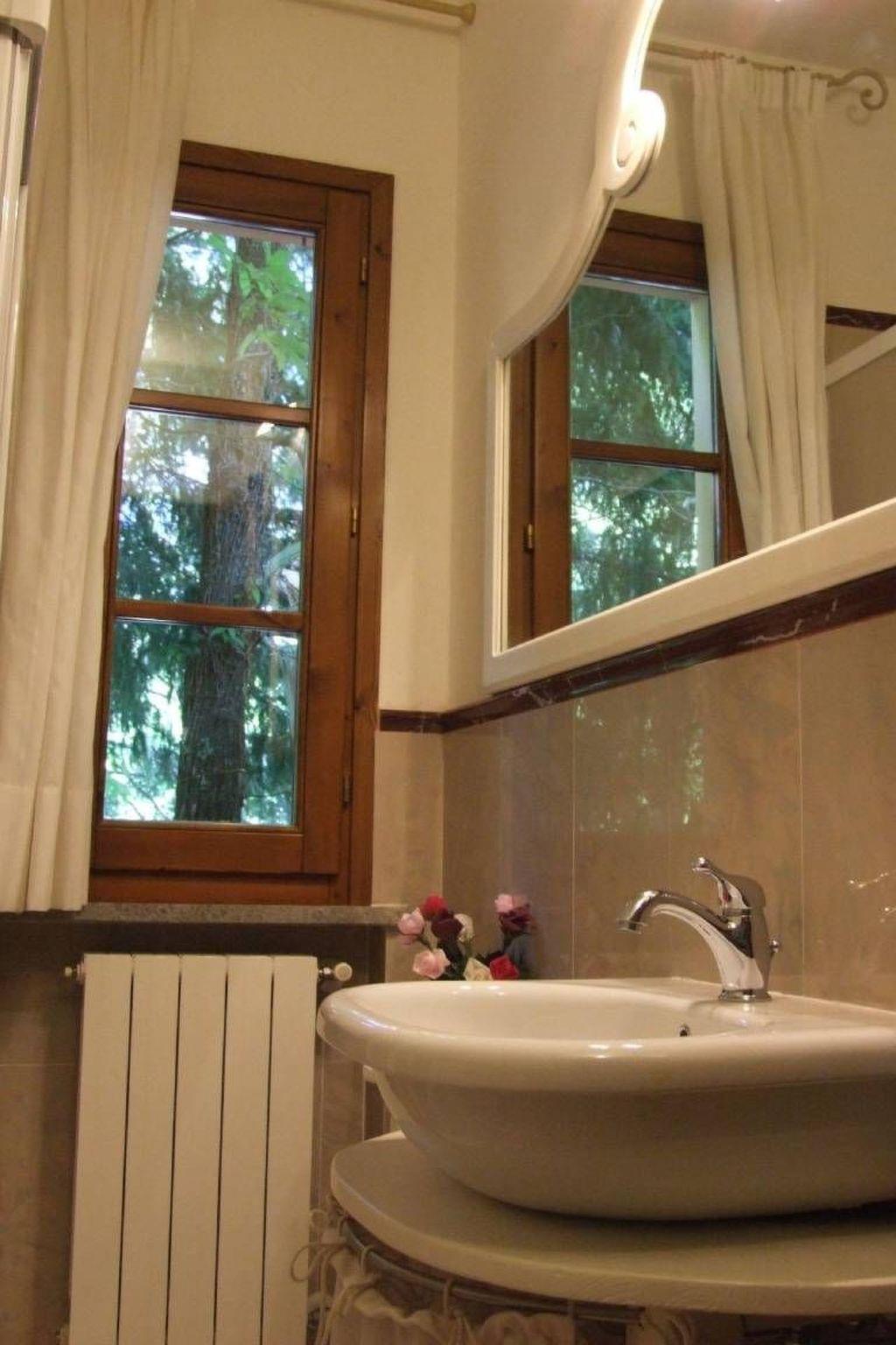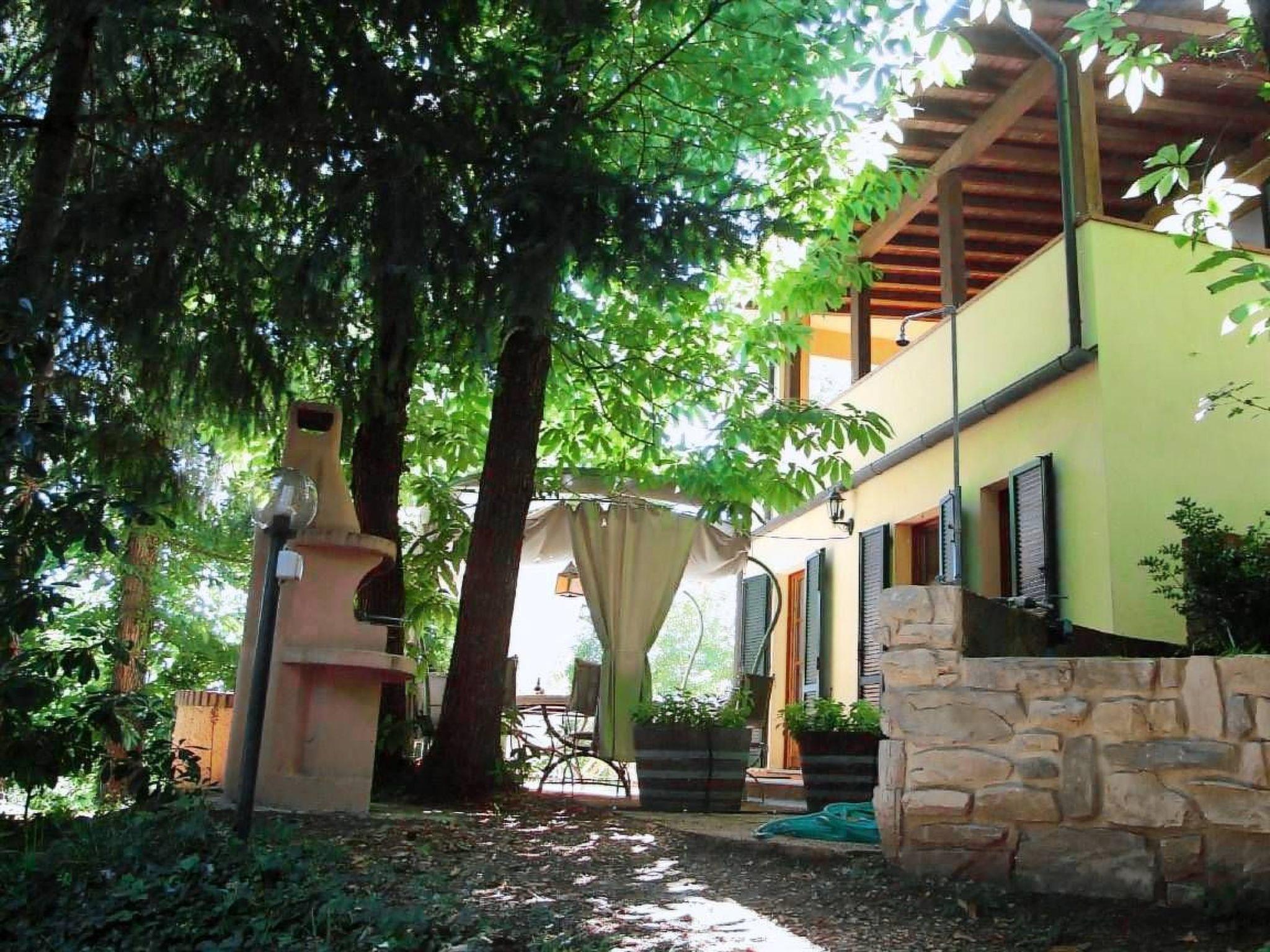 Das Ferienhaus mit einem 2000 Quadratmeter großen Garten ist von einem Kastanienwald umgeben und liegt nur 800 Meter vom Dorf entfernt und besteht aus drei Ferienwohnungen.