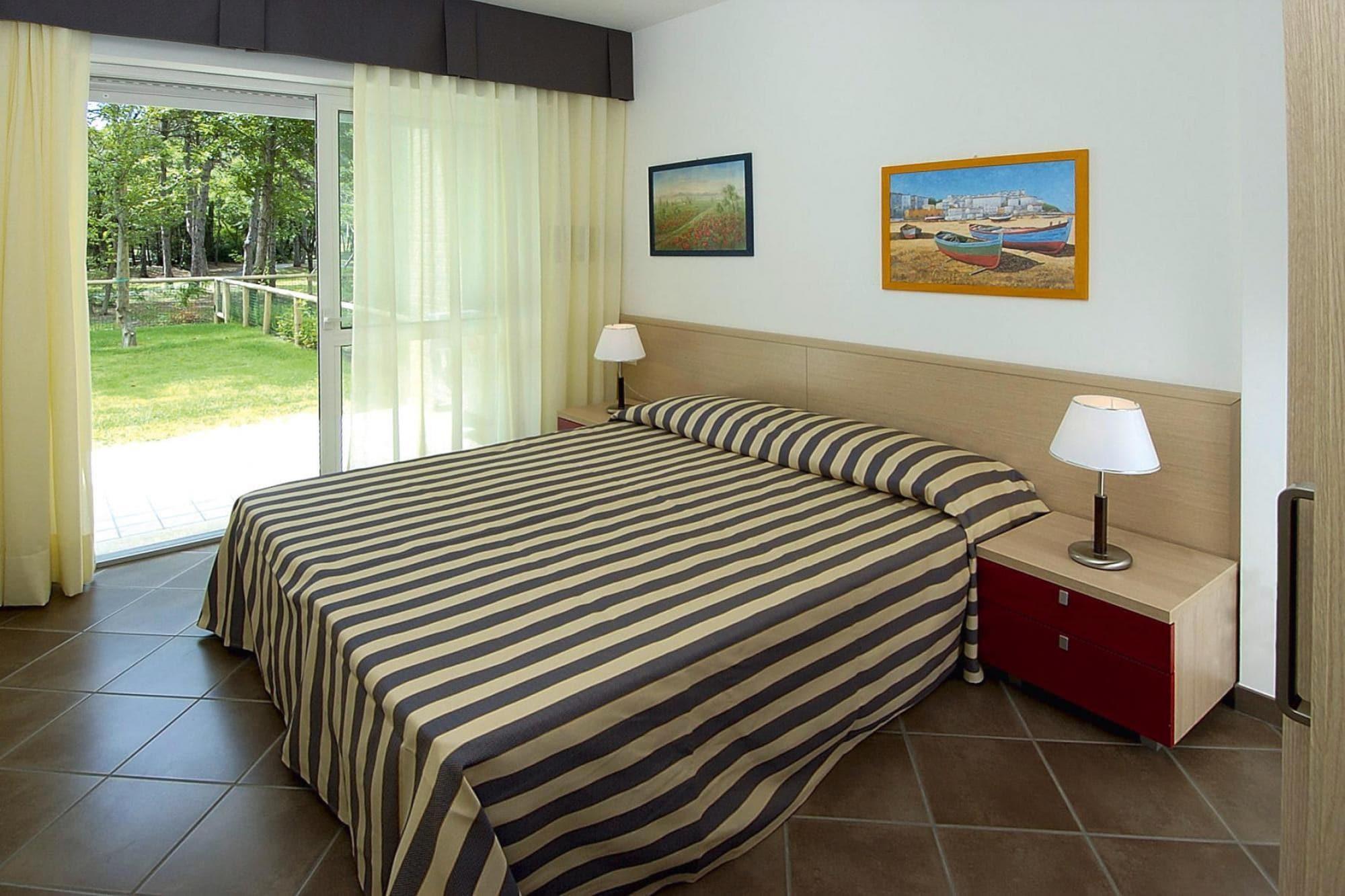 Nur 80 Meter vom Strand entfernt: Zwei moderne und elegante Ferienanlagen - Al Parco und Le Acacie - die nebeneinander liegen und jede für sich komplett abgeschlossen ist. Zum weitläufigen Sandstrand führt ein kleiner Weg durch einen üppigen mediterranen Wald. Jede der Anlagen verfügt über einen eigenen ansprechenden Poolbereich mit separatem Kinderbecken und gemütlicher Sonnenterrasse - bestens geeignet für entspannte Sonnenbäder oder einfach nur zum Relaxen. Die Wohnungen befinden sich im Erdgeschoss (mit kleinem Gartenanteil) oder im 1. oder 2. Stock (mit Balkon). Für die Anlage gilt: - 108 Wohneinheiten - 2 Gebäude - Fahrstuhl - Waschmaschine (Gegen Gebühr) - Wäschetrockner (Gegen Gebühr) - Garten - Gemeinschaftsterrasse - Liegen - Tiefgarage - Gemeinschaftlicher Außenpool, Kinderbecken, Liegen, Sonnenschirme Extras inklusive: Strandleistungen (1 Liegestuhl, 1 Liege, 1 Sonnenschirm), ca. von Anfang Mai bis Ende September 1x pro Aufenthalt Teilnahme an einer Spaghetti-Party (von ca. Ende Mai bis Mitte September, wetterabhängig) Einladung zur Weinprobe mit typischen Snacks (nur in der Hochsaison) 10% Ermäßigung in verschiedenen Restaurants und Shops. 20% Greenfee-Ermäßigung (von Montag-Freitag) auf dem 18-Loch Golfclub Lignano Aktivitäten in der Nähe : Am ca. 8-10 km langen und breiten Sandstrand wird täglich 3 Stunden vormittags sowie auch nachmittags ein breitgefächertes Animationsprogramm kostenlos angeboten. Dieses spricht sowohl Kinder, Teenies als auch Erwachsene an. Zusätzlich besteht die Möglichkeit Wassersport jeglicher Art (gg. Gebühr) zu unternehmen. Mieten Sie sich beispielsweise ein Tretboot, Surfbrett oder gar ein Segelboot. Selbst Gleitschirmfliegen ist möglich. Zudem gibt es am breiten Strand Felder für Beachvolleyball, Fußball, Tennis und Boccia. Fahrradverleih für Kinder und Erwachsene zum Preis von EURO 26,00 pro Woche/Fahrrad nach Verfügbarkeit (Kaution EURO 50,00). Kindersitze und Helme werden ebenfalls nach Verfügbarkeit zur Verfügung gestellt. E-Bikes mieten EURO 26,00 / Tag (Kaution EURO 50,00) - Reservierung ist obligatorisch Mobilität : Nicht geeignet für Personen mit eingeschränkter Mobilität