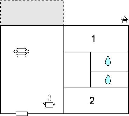 Schlafzimmer (nr. 1) - 1 Schlafmöglichkeit. (Einzelbett(en)). 2 Schlafmöglichkeiten. (Doppelbett(en)).