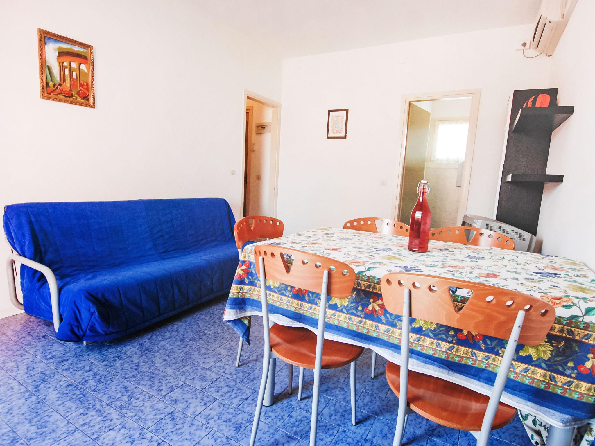 3-Zimmer-Wohnung 57 m2. Hell, einfach und komfortabel eingerichtet: Wohn-/Schlafzimmer mit 1 Doppeldiwanbett, Esstisch und TV. 1 Zimmer mit 1 Doppelbett. 1 Zimmer mit 2 Betten. Kleine Küche). Dusche/Bidet/WC. Klimaanlage, Warmluftheizung. Maximal 1 Haustier/Hund erlaubt. IT027034B4U84R9HFU