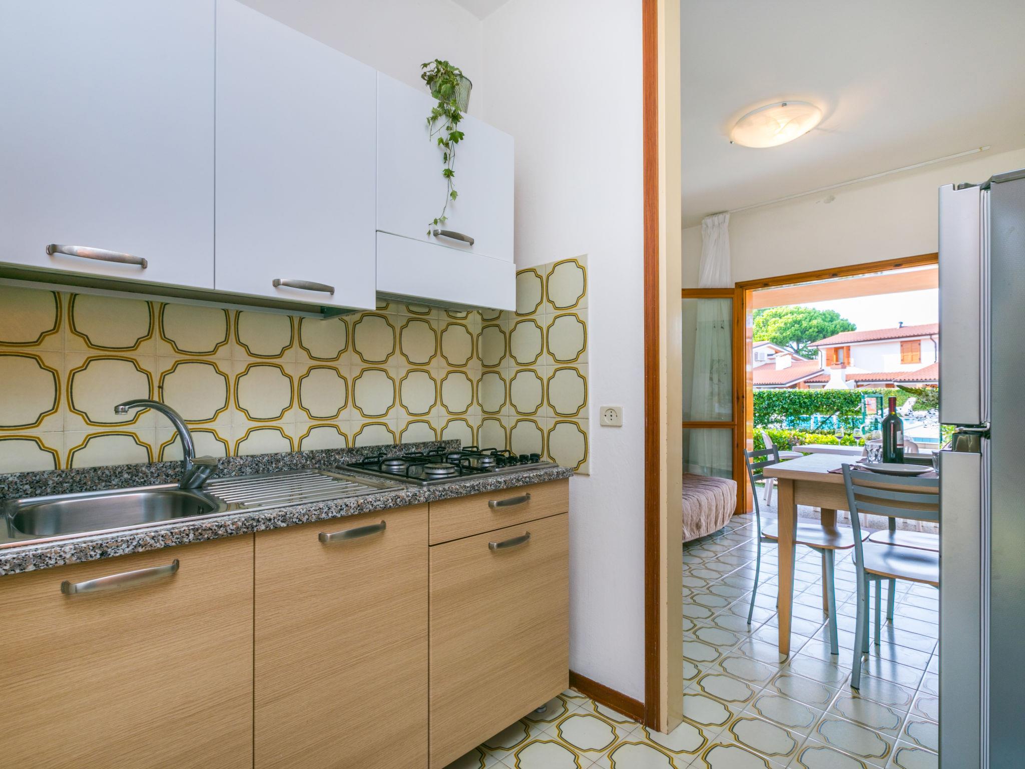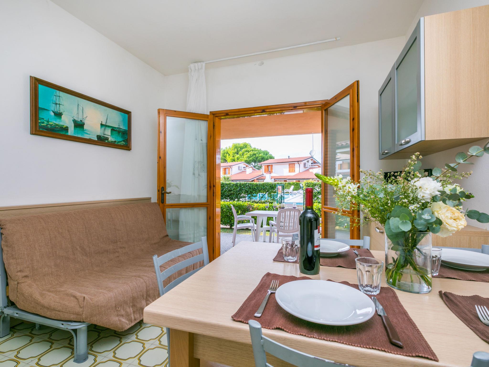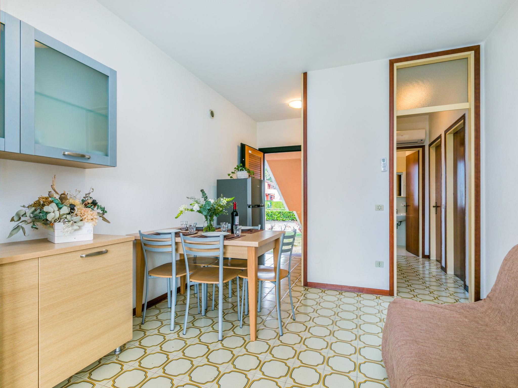Feriendorf "Villaggio Sole B", auf 2 Stockwerken. 45 Wohnungen in der Residenz. Im Ortsteil Bibione-Spiaggia, 800 m vom Zentrum von Bibione, 13 km vom Zentrum von Lignano, 100 km vom Zentrum von Venezia, 1.3 km vom Meer. Zur Mitbenutzung: Schwimmbad (20 x 10 m, saisonale Verfügbarkeit: 30.Mai. - 15.Sep.). Kinderbecken. In der Anlage: Wireless LAN. Supermarkt, Restaurant 200 m, Bushaltestelle 1 km, Bahnstation "Latisana (Milano-Venezia-Triest)" 21 km, Sandstrand 1.3 km. Golfplatz (18 Loch) 8 km.