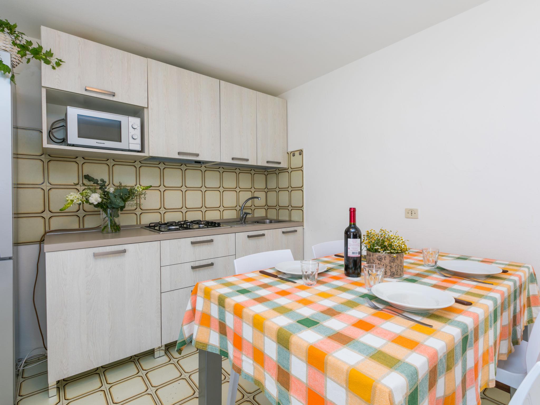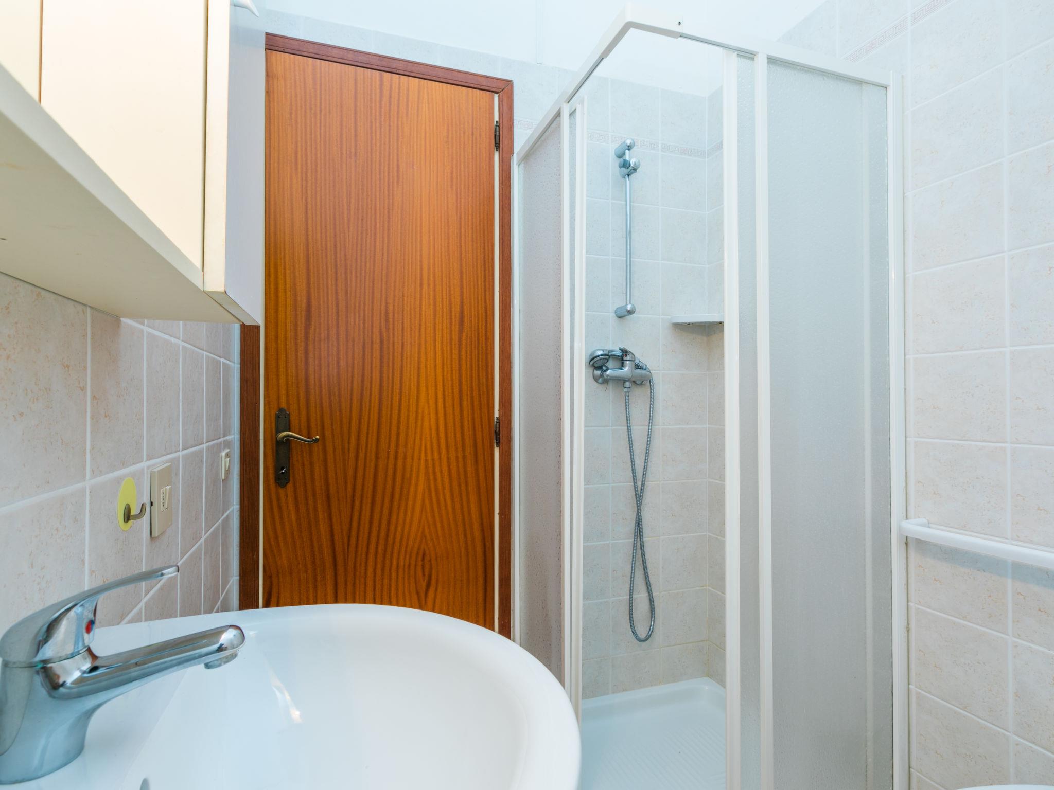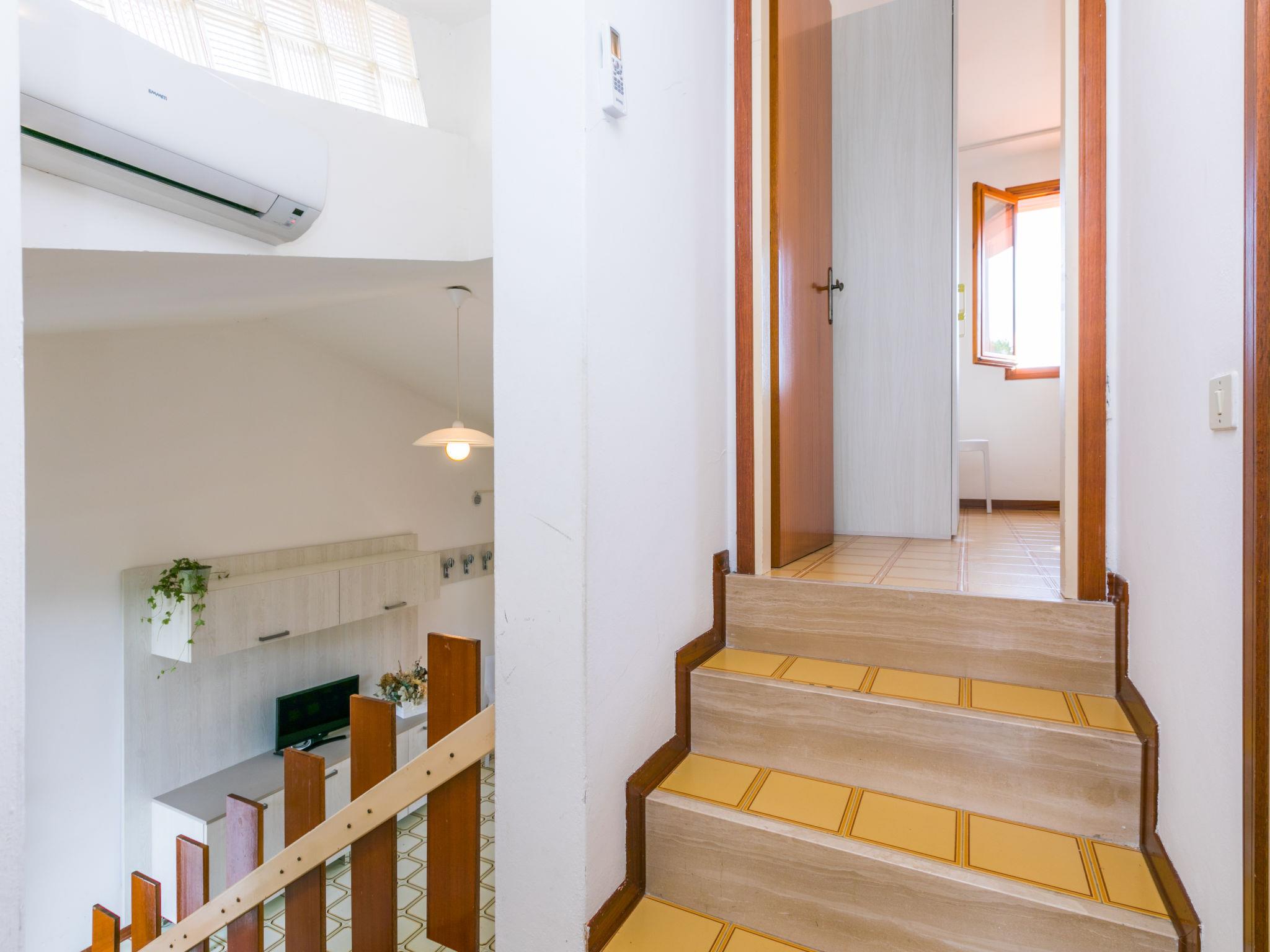 3-Zimmer-Reihenhaus 70 m2 auf 3 Stockwerken, im erhöhten Erdgeschoss. Zweckmässig eingerichtet: Wohn-/Schlafzimmer mit 1 Doppeldiwanbett, Esstisch, Küchenblock und Sat-TV. Ausgang zur Terrasse. Kochnische (Gasherd, 3 Flammen, elektrische Kaffeemaschine). Obergeschoss: 1 Zimmer mit 2 Betten. Ausgang zum Balkon. 1 Zimmer mit 2 Betten. Dusche/WC. Klimaanlage, Warmluftheizung. Keine Heizmöglichkeit. Balkon, Terrasse teilweise überdacht, kleiner Garten, Rasen. Terrassenmöbel, Gartengrill. Zur Verfügung: Kinderhochstuhl, Babybett (extra). Parkplatz (überdacht, 1 Auto) beim Haus. IT027034B4H29E89AZ