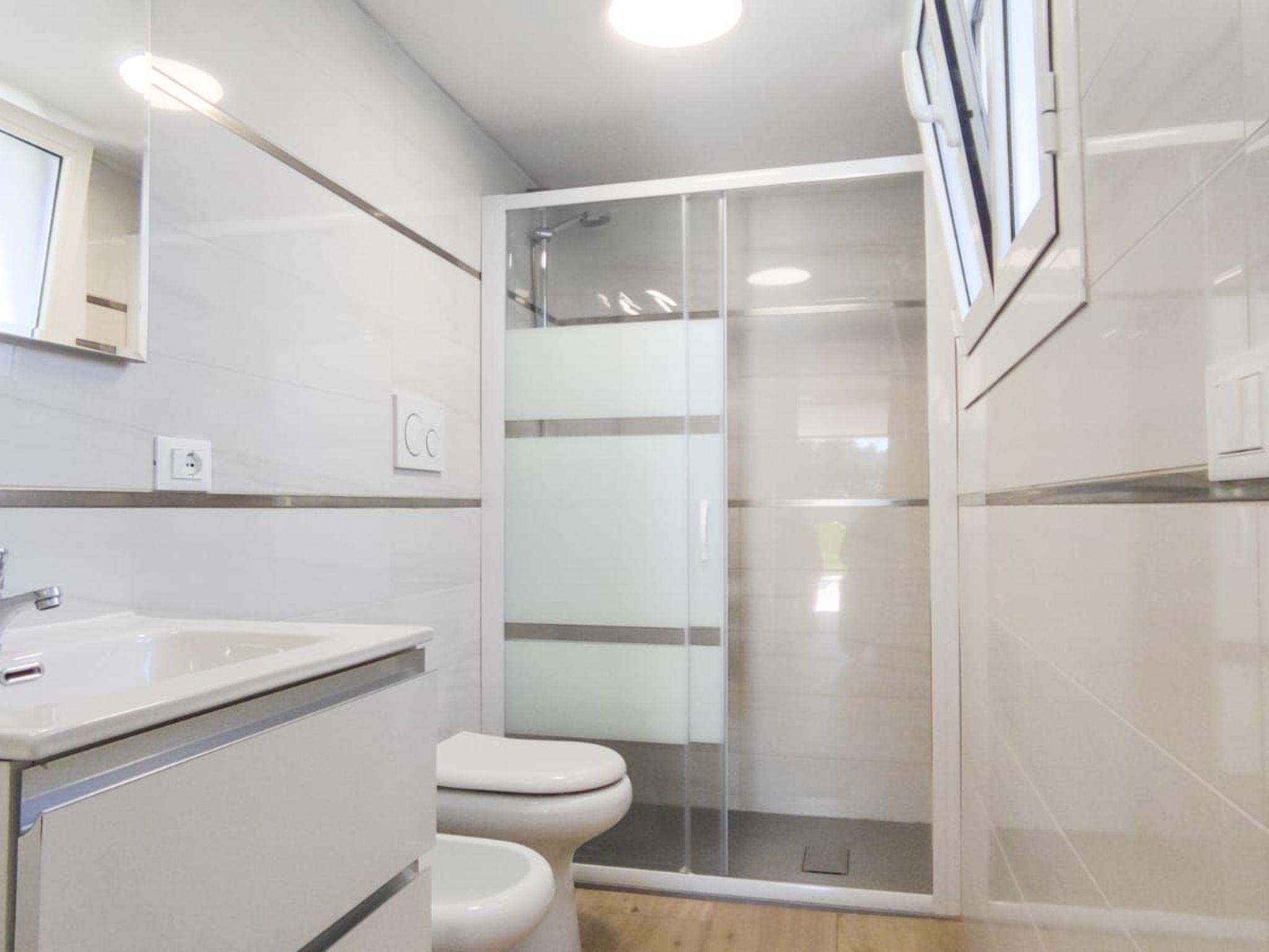 Im Erdgeschoss befindet sich eine Zweizimmerwohnung, die mit einer Kochnische und einer Doppelschlafcouch sowie einem Kühlschrank ausgestattet ist, um maximalen Komfort während Ihres Aufenthalts zu gewährleisten. Darüber hinaus ist die Wohnung mit einer Klimaanlage und einer Wärmepumpe ausgestattet, um zu jeder Jahreszeit ein ideales Klima zu gewährleisten. Es gibt ein Schlafzimmer mit Doppelbett und zusätzlichem Etagenbett, ein Fensterbad mit Duschkabine und eine externe Waschmaschine, die allen Gästen zur Verfügung steht.