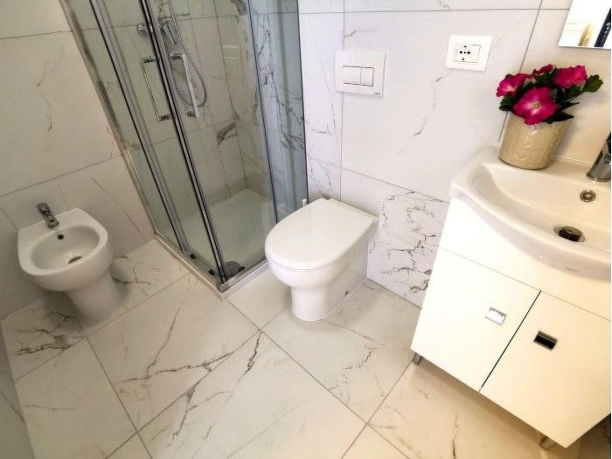 Jede Wohnung hat ein elegantes und modernes Design, mit nüchternen Linien und monochromen Farben, und ist so konzipiert, dass sie sowohl Paaren als auch Familien mit Kindern einen angenehmen Aufenthalt bietet. Das Studio verfügt über ein Doppelbett mit Kopfteil aus Kunstleder und ein praktisches Etagenbett sowie eine Küchenzeile mit Herd, großem Kühlschrank mit Gefrierfach, Umluftofen und Mikrowelle. Ein Schlafsofa, das in ein weiteres bequemes Bett umgewandelt werden kann. Ein gemütlicher Balkon, auf dem Sie sich an der frischen Luft entspannen können. Das Badezimmer ist hell und verglast, modern gefliest und verfügt über eine Klarglas-Duschkabine. Darüber hinaus ist die Wohnung mit einer Klimaanlage und einer Wärmepumpe ausgestattet, die zu jeder Jahreszeit für ein ideales Klima sorgen, sowie mit TV und kostenlosem WiFi. Waschmaschinen sind im Erdgeschoss für alle Gäste verfügbar.