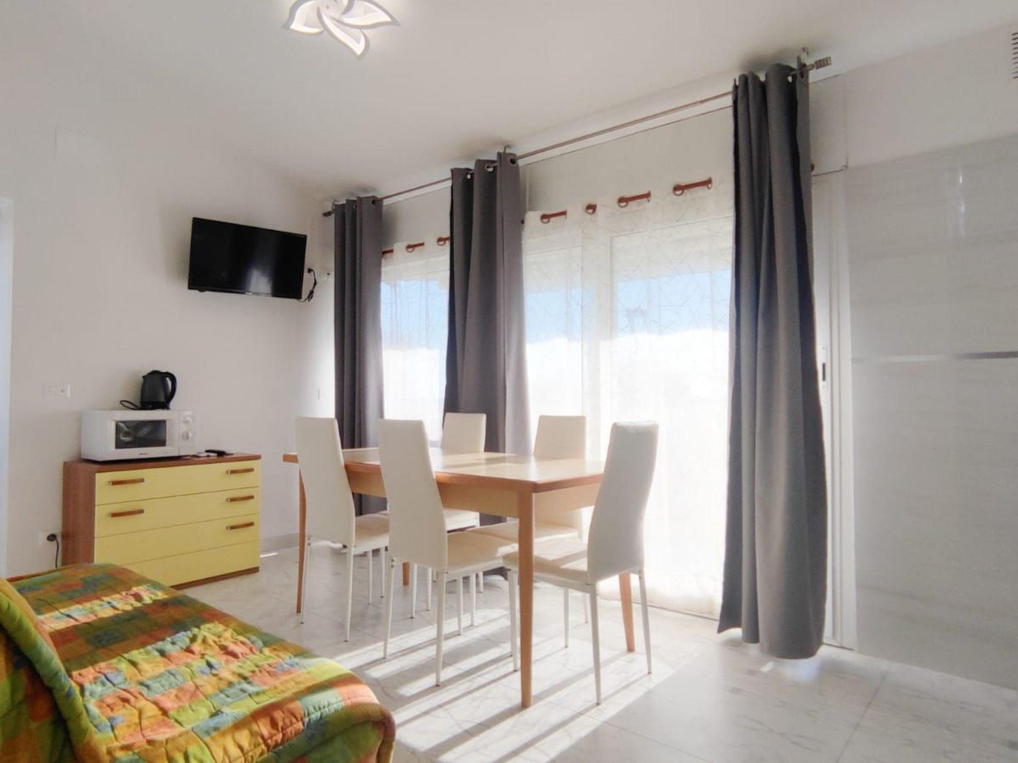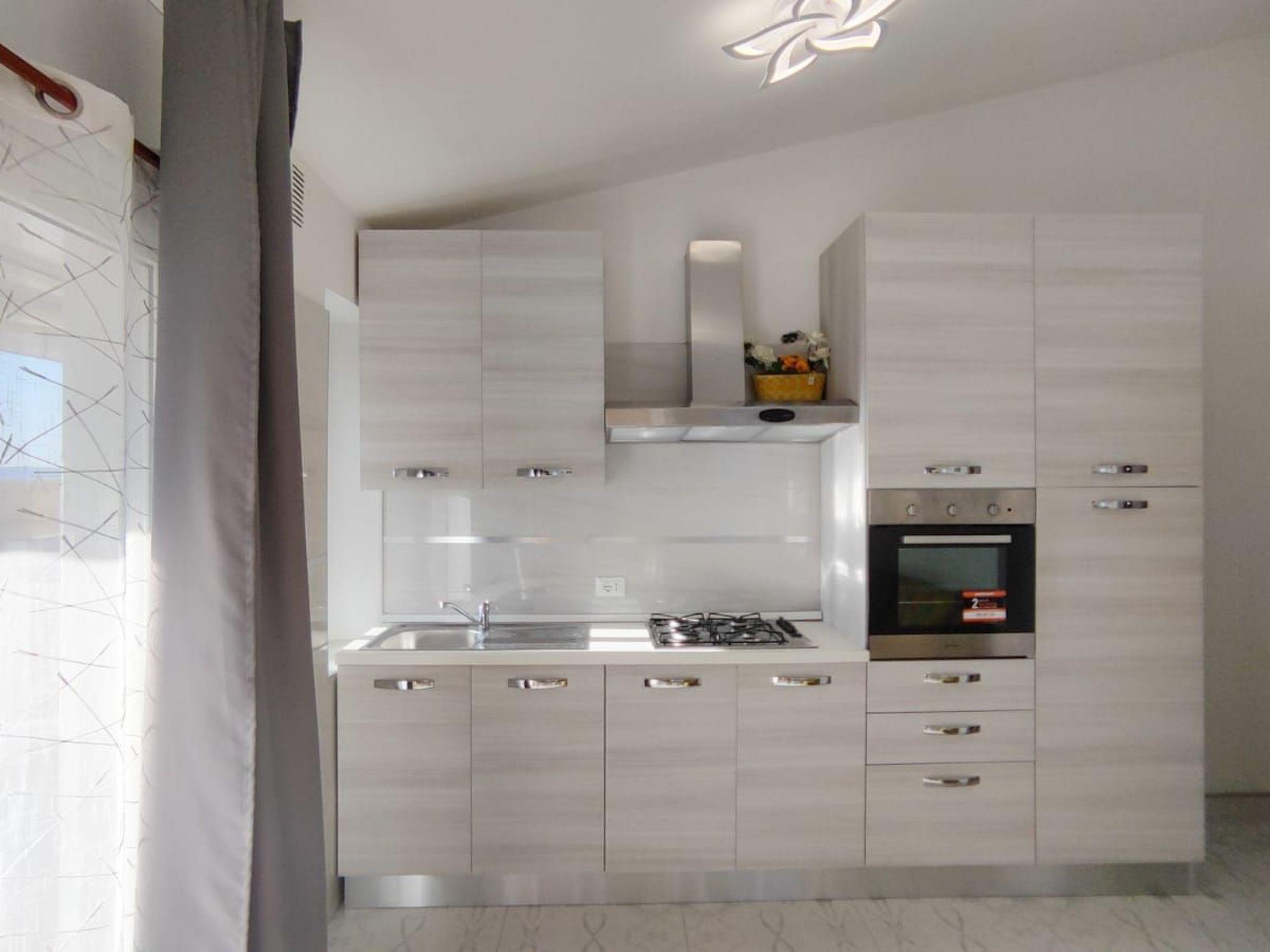 Die Wohnung befindet sich in der ersten Etage der Villa. Die Gäste haben Zugang zu einem separaten Eingang, der direkt in einen gemütlichen offenen Raum führt. Dieser Wohnraum öffnet sich zu einer nach Süden ausgerichteten Terrasse, von der aus man bei einem Morgenkaffee den Blick aufs Meer genießen kann. Die voll ausgestattete, offene Küche wird von einer Essecke mit sechs Sitzplätzen flankiert, die durch ein bequemes Schlafsofa und einen Kühlschrank ergänzt wird, um maximalen Komfort während Ihres Aufenthalts zu gewährleisten. Außerdem ist die Wohnung mit einer Klimaanlage und einer Wärmepumpe ausgestattet, um zu jeder Jahreszeit ein ideales Klima zu gewährleisten. Die zwei Schlafzimmer, von denen eines ein Hauptschlafzimmer ist, in dem ein Etagenbett für die Kinder aufgestellt werden kann, bieten die perfekte Nachtruhe. Darüber hinaus verfügt die Wohnung über ein funktionelles Badezimmer mit Fenster und Duschkabine, und eine externe Waschmaschine steht allen Gästen zur Verfügung.