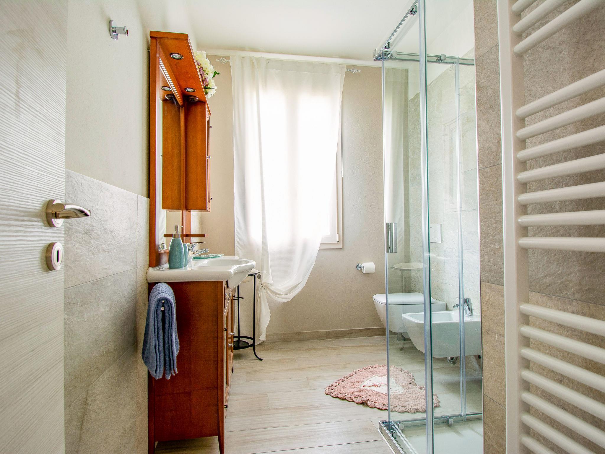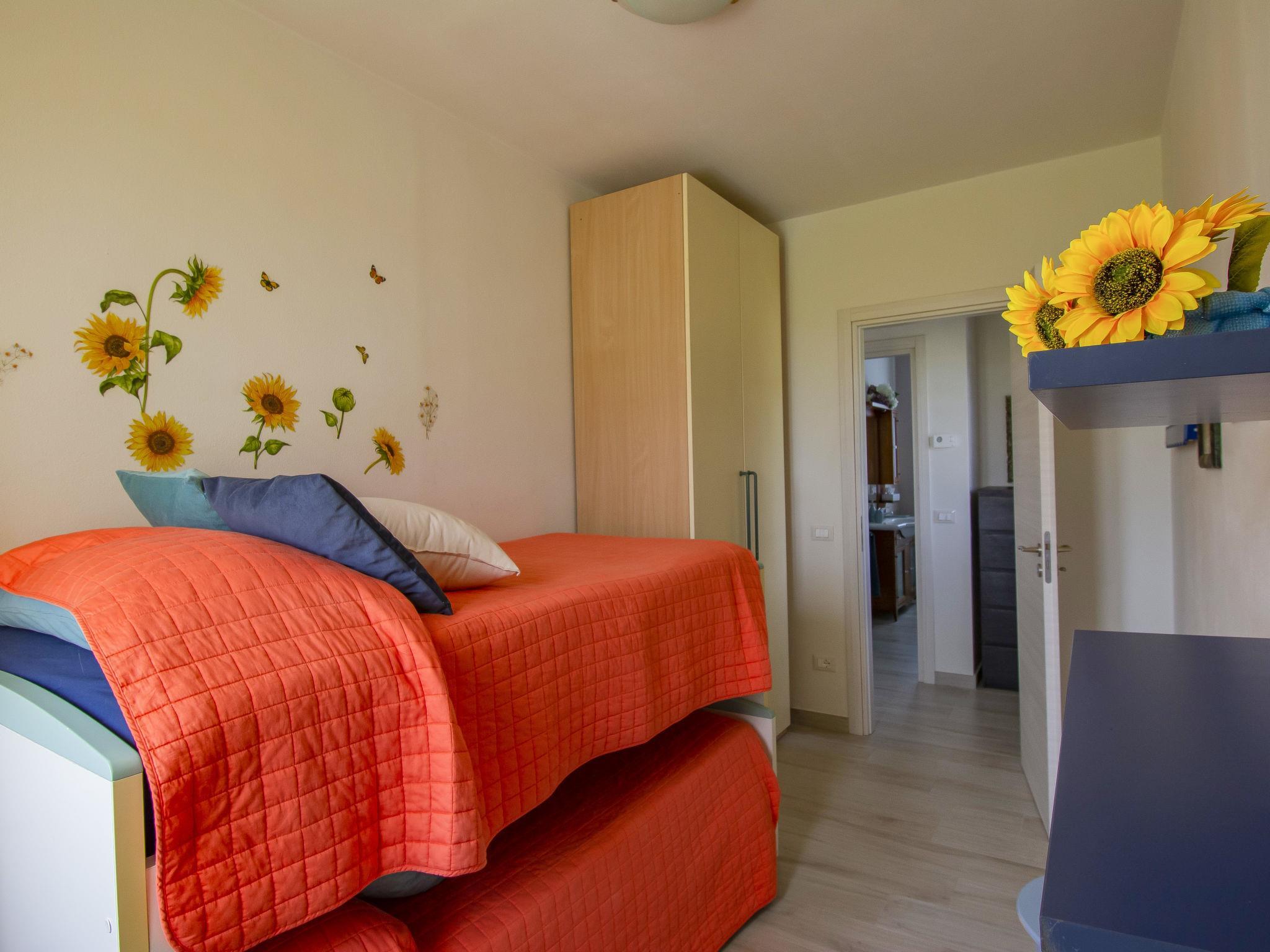 5-Zimmer-Doppelhaushälfte 160 m2 auf 3 Stockwerken. Schön und modern eingerichtet: Wohnzimmer mit Digital-TV. Ausgang zum Garten. Offene Küche (4 Kochplatten, Geschirrspüler, Wasserkocher, Mikrowelle, elektrische Kaffeemaschine) mit Essecke. Ausgang zum Garten. Dusche/Bidet/WC. G-Heizung, Klimaanlage. Unteres Geschoss: offenes Wohnzimmer mit Esstisch und TV. Obergeschoss: 1 Doppelzimmer. 1 Doppelzimmer. 1 Zimmer mit 1 x 2 Etagenbetten. Dusche/Bidet/WC. Laube. Terrassenmöbel, Gartengrill, Liegestühle. Panoramasicht. Zur Verfügung: Waschmaschine, Fliegengitter, Kinderhochstuhl, Babybett bis 2 Jahre, Haartrockner. Internet (WLAN, gratis). Parkplatz (2 Autos). E-Ladestation. Bitte beachten: Nichtraucher-Haus. Maximal 2 Haustiere/Hunde erlaubt. Eigener Eingang, Feuerlöscher. IT050001C2IW43P7V3