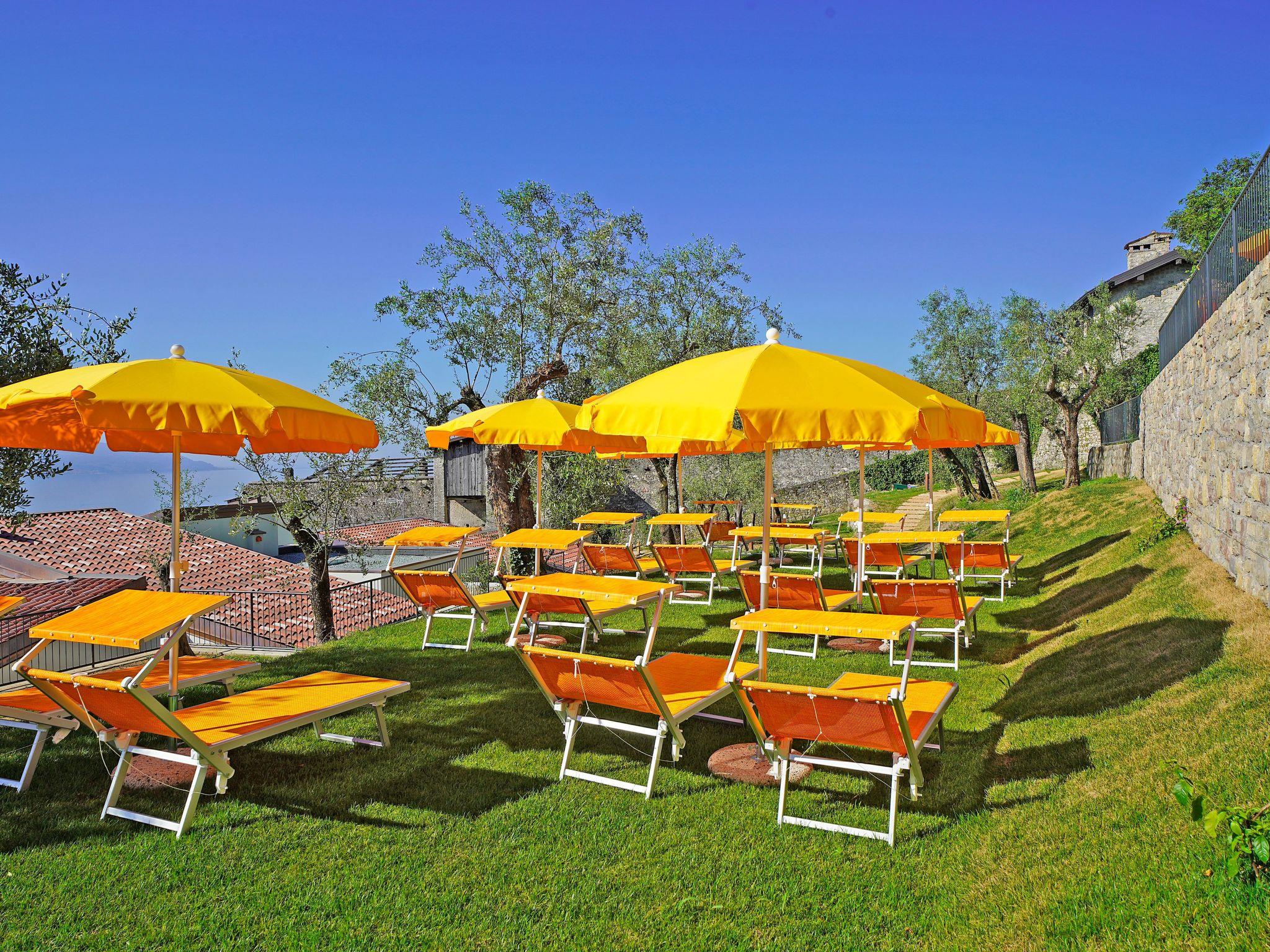 Gartenpark und Olivenhain von 10.000 Quadratmetern Außenschwimmbad mit Seeblick Solarium mit Liegestühlen und Sonnenschirmen Die Anlage fügt sich wunderbar in die charakteristische Landschaft von Gargnano ein, da sie mit größtmöglichem Respekt vor der Natur und mit möglichst geringen Auswirkungen auf die Umwelt gebaut wurde.