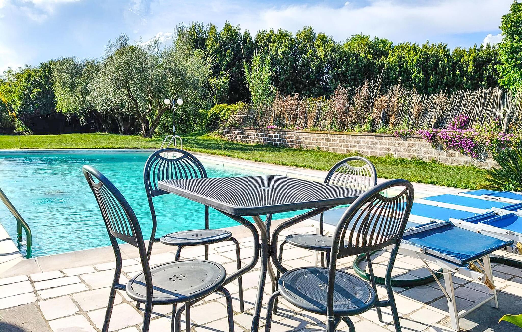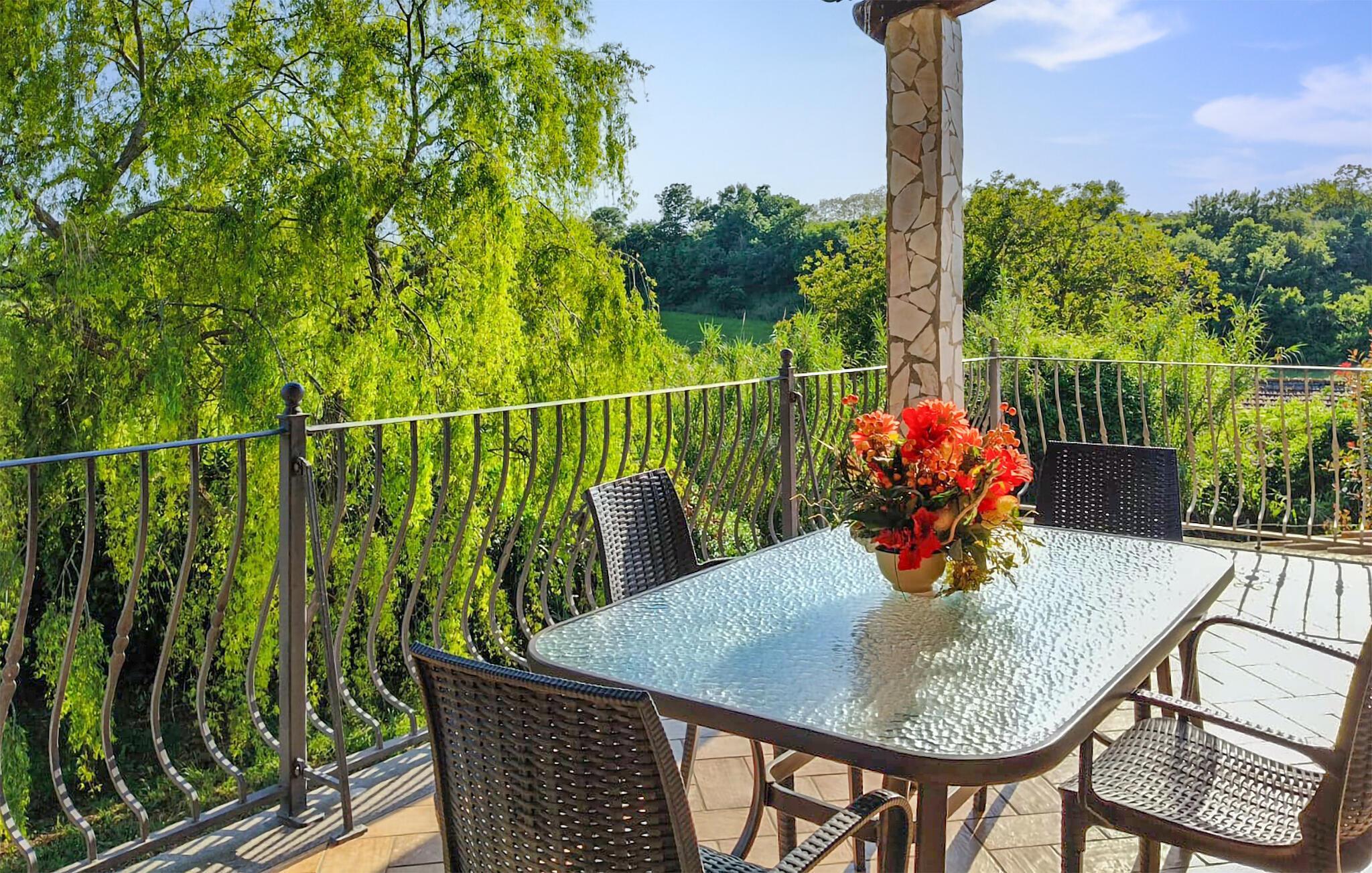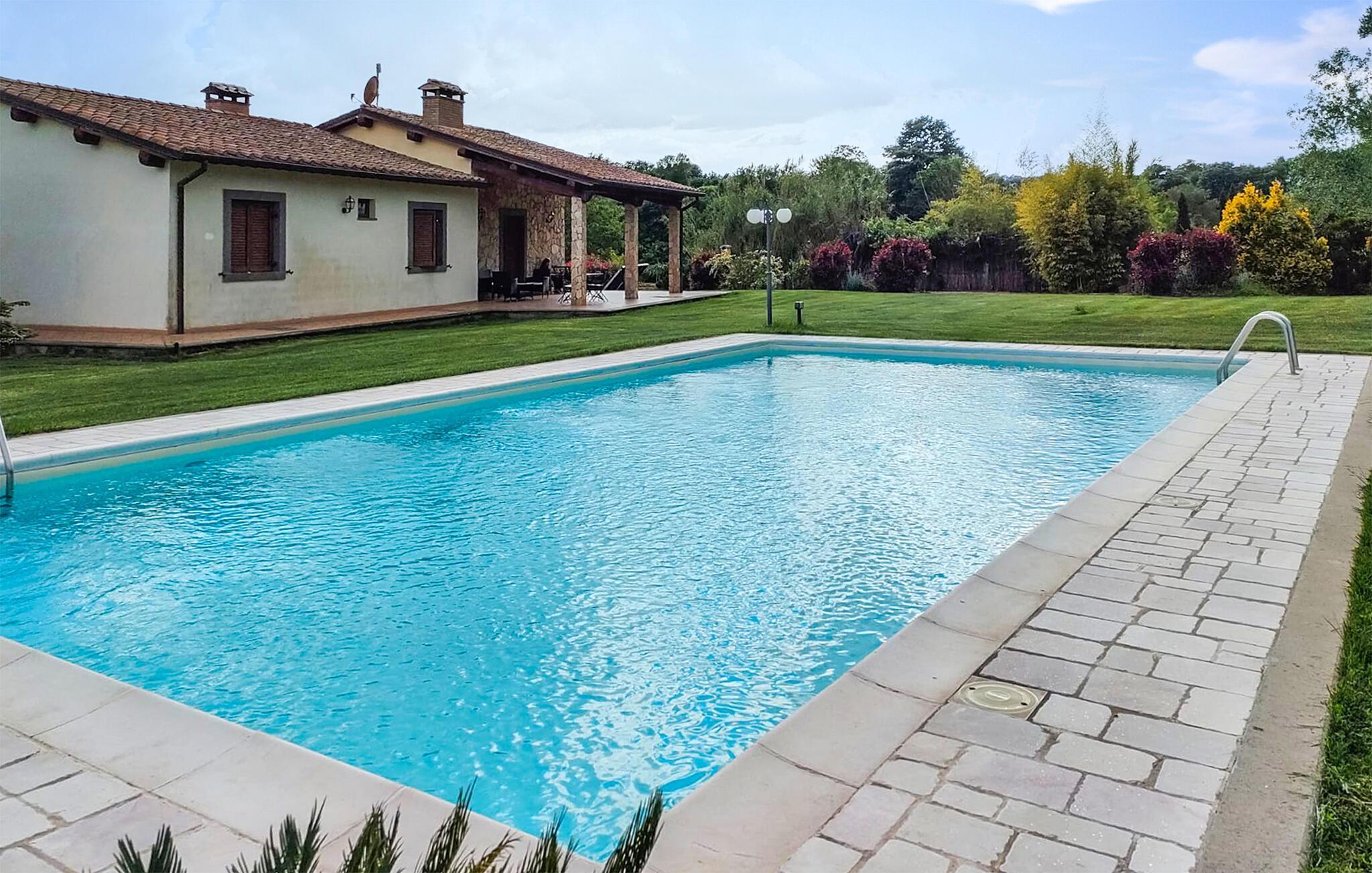 Modernes, freundliches Ferienhaus mit überdachter Terrasse, privatem Garten und Schwimmbad, das ca. 7 km von Bolsena entfernt liegt. Diese Unterkunft in Hügellage ist ideal zum Entspannen in dem schönen Außenbereich, aber auch für Ausflüge zu der kleinen mittelalterlichen Stadt Bolsena (7 km), die am gleichnamigen See Lago di Bolsena liegt, wo Sie einen Tag am Strand verbringen können, oder für Besichtigungstouren in die schönen Etruskerstädte Orvieto, Pitigliano und Montefiascone. Die Küste der Region Latium, die mit ihren weitläufigen freien und ausgestatteten Sandstränden zum Schwimmen im Meer und zum Sonnenbaden einlädt, ist ca. 40 km entfernt. Ein Tipp für Weinkenner: die Gegend um Bolsena ist für den guten Weißwein 'Est Est Est' bekannt. Die Einrichtung ist einfach, aber ansprechend. Kinderbett verfügbar auf Anfrage.