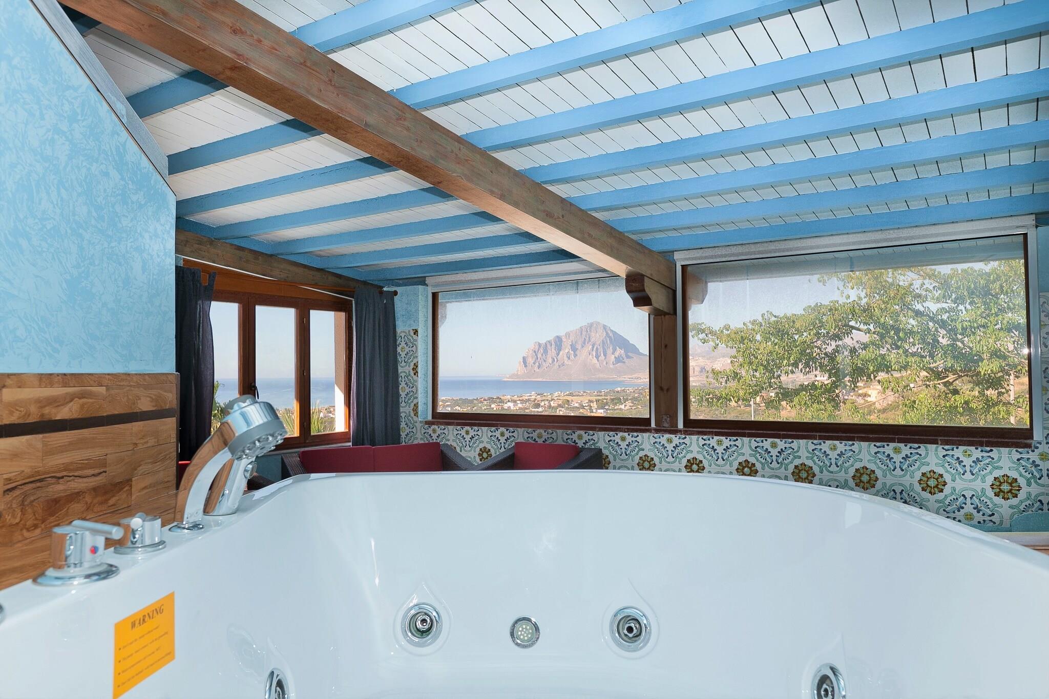 Genießen Sie einen erholsamen Aufenthalt in dieser geräumigen Ferienvilla in Bonagia, Trapani – ideal für Familien oder Gruppen mit bis zu 12 Gästen. Mit 7 Schlafzimmern und 5 Badezimmern, darunter eines mit Whirlpool und Massagedusche, bietet dieses elegante Haus Komfort und Luxus zugleich. Nur 3 km vom Meer und 1 km vom Stadtzentrum mit Restaurants und Geschäften entfernt, ist die Villa ideal gelegen, um Westsizilien zu erkunden. Der Panoramablick auf das Meer, der private Pool und die großen Veranden schaffen eine einladende Atmosphäre für Wohnen und Essen im Freien. Machen Sie den Grill an und genießen Sie Ihre Mahlzeiten unter freiem Himmel. Das Haus ist voll klimatisiert und geschmackvoll mit modernem Komfort eingerichtet. Geräumige Innenräume, WLAN und ein privater Parkplatz sorgen für einen sorgenfreien Aufenthalt. Ob Sie an den Strand fahren, die lokale sizilianische Küche genießen oder einfach am Pool entspannen – diese Villa bietet den idealen Rahmen für einen unvergesslichen Urlaub.