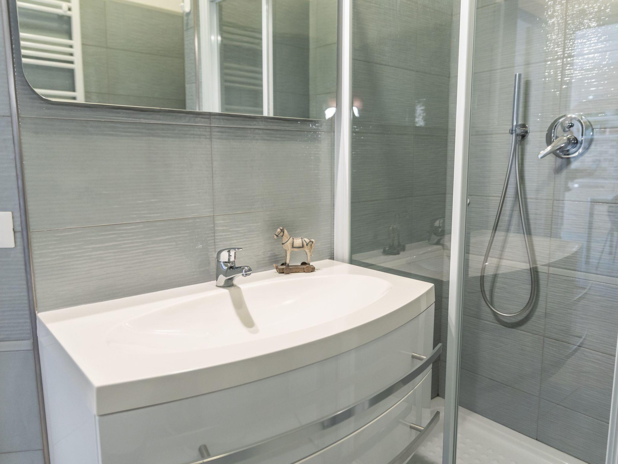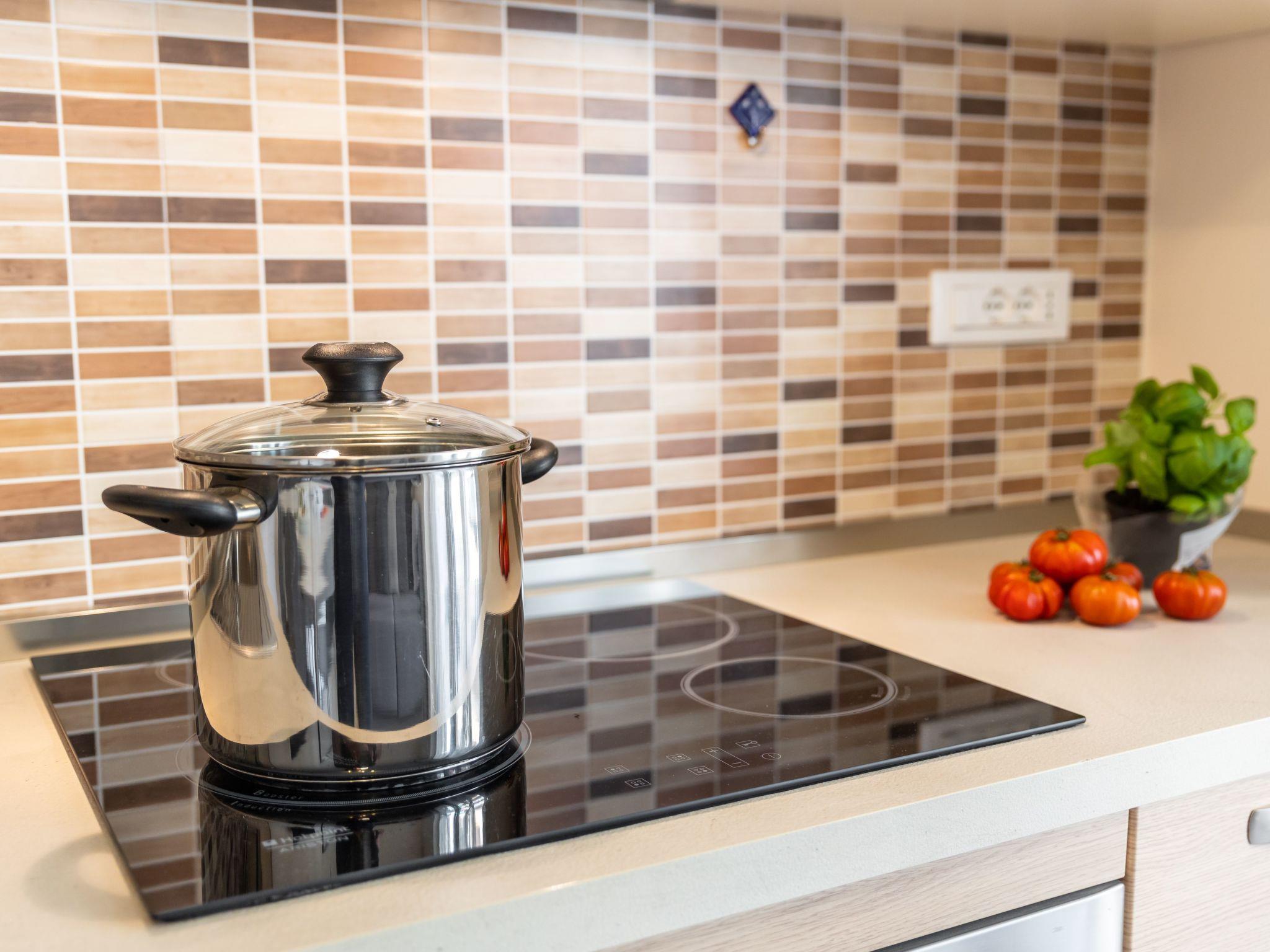 Die Wohnung, die sich im zweiten Stock eines vierstöckigen Gebäudes mit Aufzug befindet, ist voll klimatisiert und besteht aus einem Wohnzimmer mit offener Küche, Esstisch und Sofa (umwandelbar in ein zweites Doppelbett), einem Schlafzimmer mit Doppelbett und einem Badezimmer. Die Küche und das Bad sind komplett ausgestattet. Die erste bietet Induktionskochfeld, Herd (auch Mikrowelle) und Geschirrspüler und natürlich Kühl- und Gefrierschrank. Das zweite ist ein Badezimmer mit wandhängenden Toiletten (WC und Bidet) und einer schönen Duschkabine. Hier befindet sich auch die Waschmaschine.
