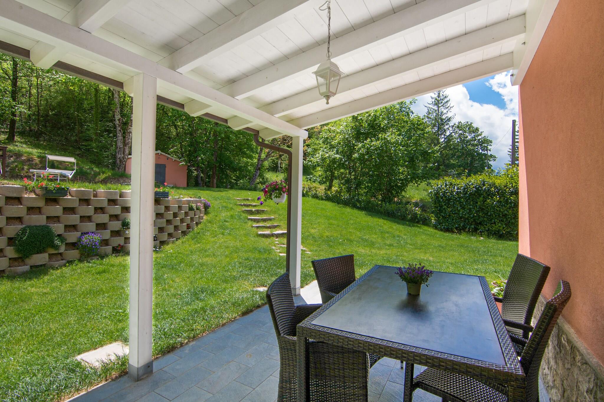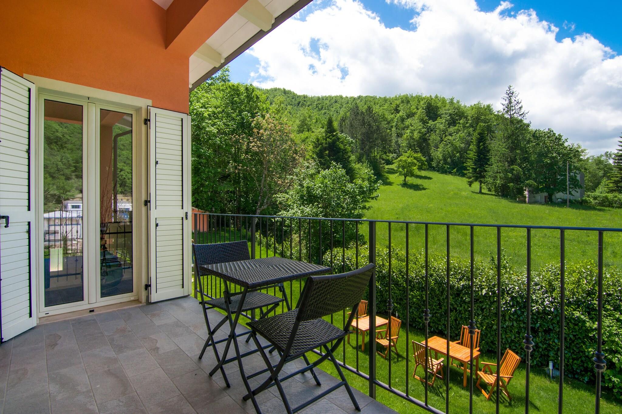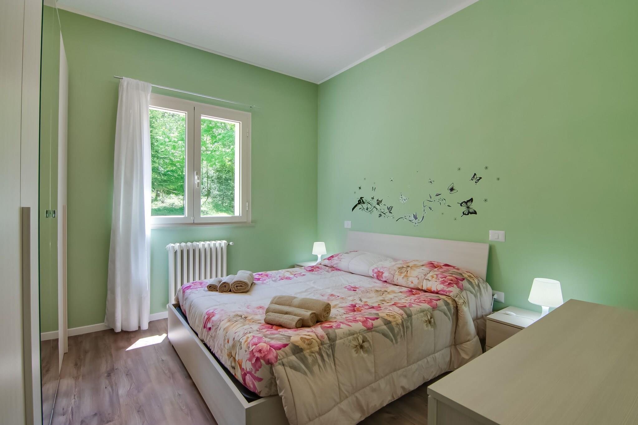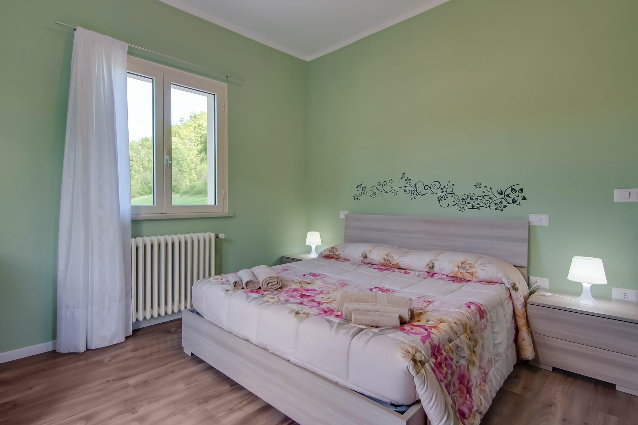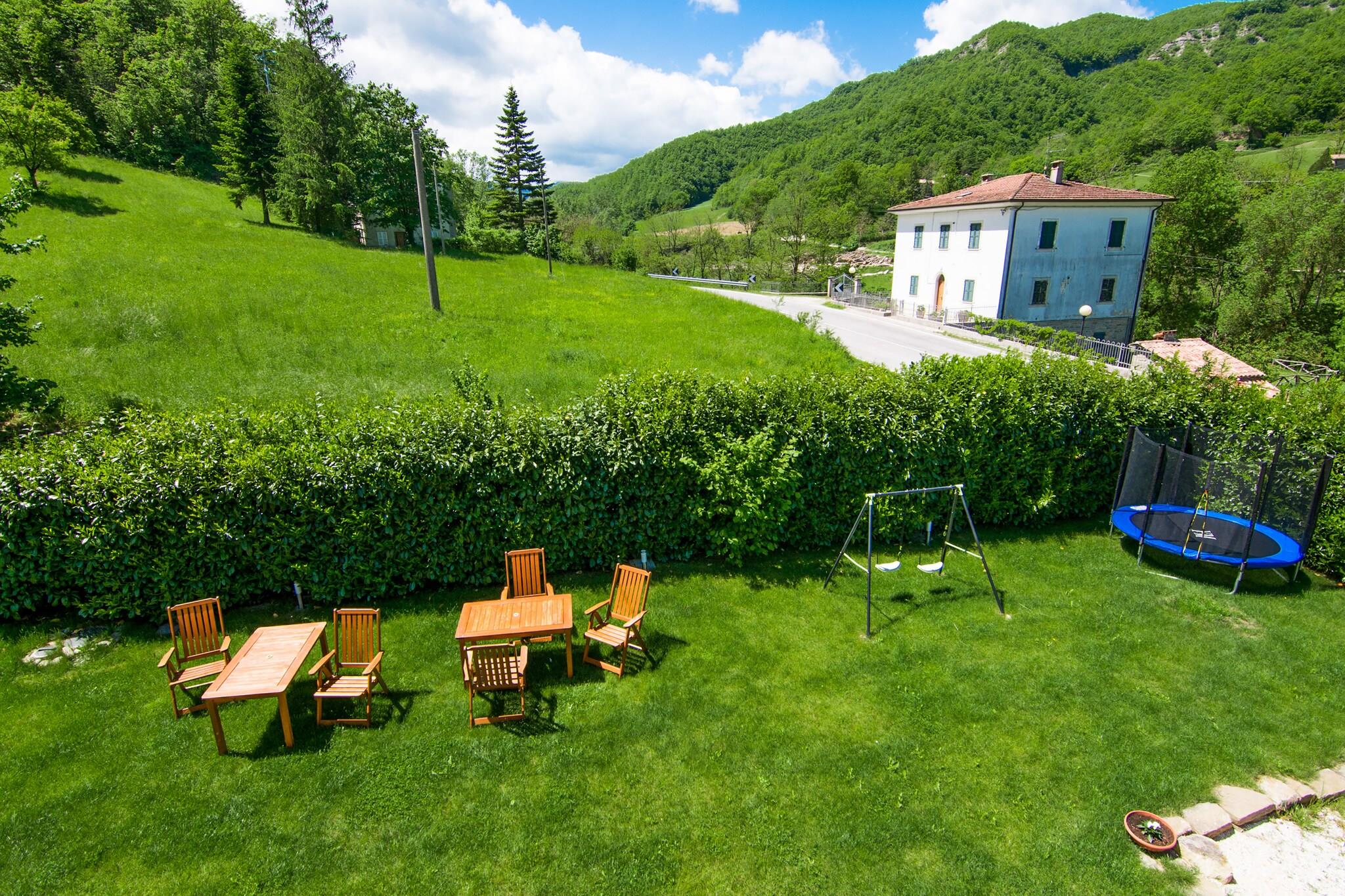Ruhiger Rückzugsort auf dem Land Willkommen in Ihrem privaten Rückzugsort im Herzen der Region Marken. Dieses wunderschön gestaltete Ferienhaus in Borgo Pace ist von üppiger Natur umgeben und bietet eine ruhige Umgebung für Familien und Freunde. Verbringen Sie entspannte Tage am privaten Pool, speisen Sie im eingezäunten Garten im Freien oder beobachten Sie Ihre Kinder beim Spielen an den Spielgeräten und der Schaukel. Das Haus verfügt über mehrere Terrassen, auf denen Sie Sonne und frische Bergluft genießen können. Ein Hochstuhl und ein Kinderbett stehen zur Verfügung, sodass kleine Gäste - und Haustiere - herzlich willkommen sind! Renaissance & Naturwunder entdecken Nur 1 km vom malerischen Dorf Borgo Pace entfernt, sind Sie ideal gelegen, um die verborgenen Schätze der Region Marken zu erkunden. Besuchen Sie Mercatello sul Metauro (4 km) mit seinem mittelalterlichen Charme, den historischen Kirchen und den lebhaften Piazzas. Kunstliebhaber sollten Urbino (39 km), den Geburtsort Raffaels und Heimat des beeindruckenden Palazzo Ducale, nicht verpassen. Für malerische Spaziergänge in der Natur oder haustierfreundliche Wanderungen besuchen Sie die Schlucht Gola del Furlo oder das Naturschutzgebiet Alpe della Luna - beide weniger als eine Stunde entfernt. Genießen Sie die Aromen der Marken Beginnen Sie Ihr kulinarisches Abenteuer nur 500 m entfernt in einer gemütlichen Trattoria in Borgo Pace. Weitere Möglichkeiten bieten die charmanten Cafés und Restaurants von Mercatello, die regionale Spezialitäten wie Trüffelpasta und Braten servieren. An sonnigen Tagen empfiehlt sich eine Fahrt nach Fano (79 km) oder Riccione (69 km), um Meeresfrüchte am Strand zu genießen, dazu ein Glas Verdicchio und einen atemberaubenden Blick auf die Adria.