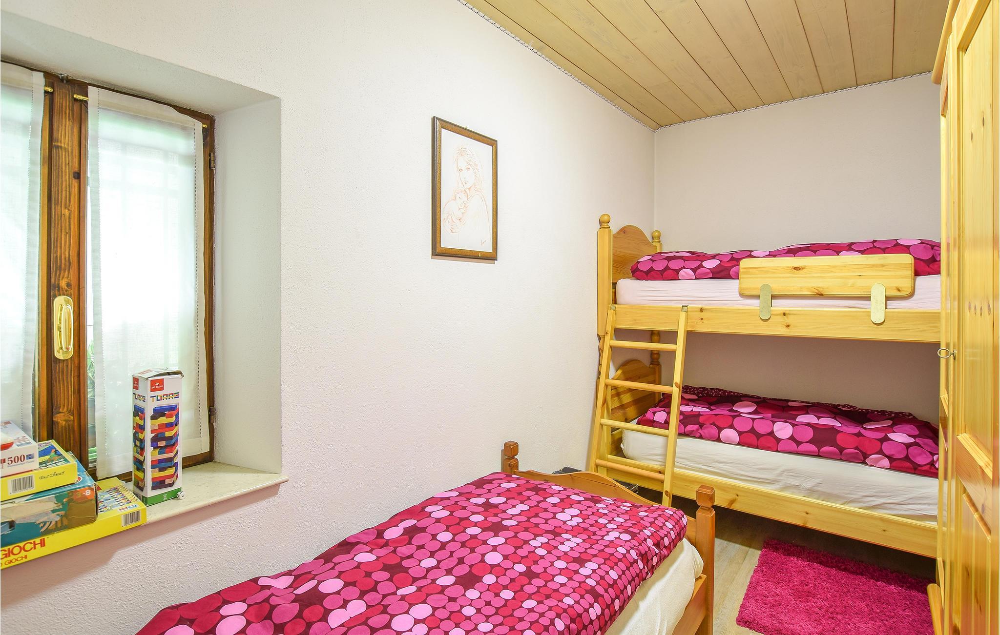 Schlafzimmer (nr. 1) - 1 Schlafmöglichkeit. (Einzelbett(en)). 2 Schlafmöglichkeiten. (Etagenbett).