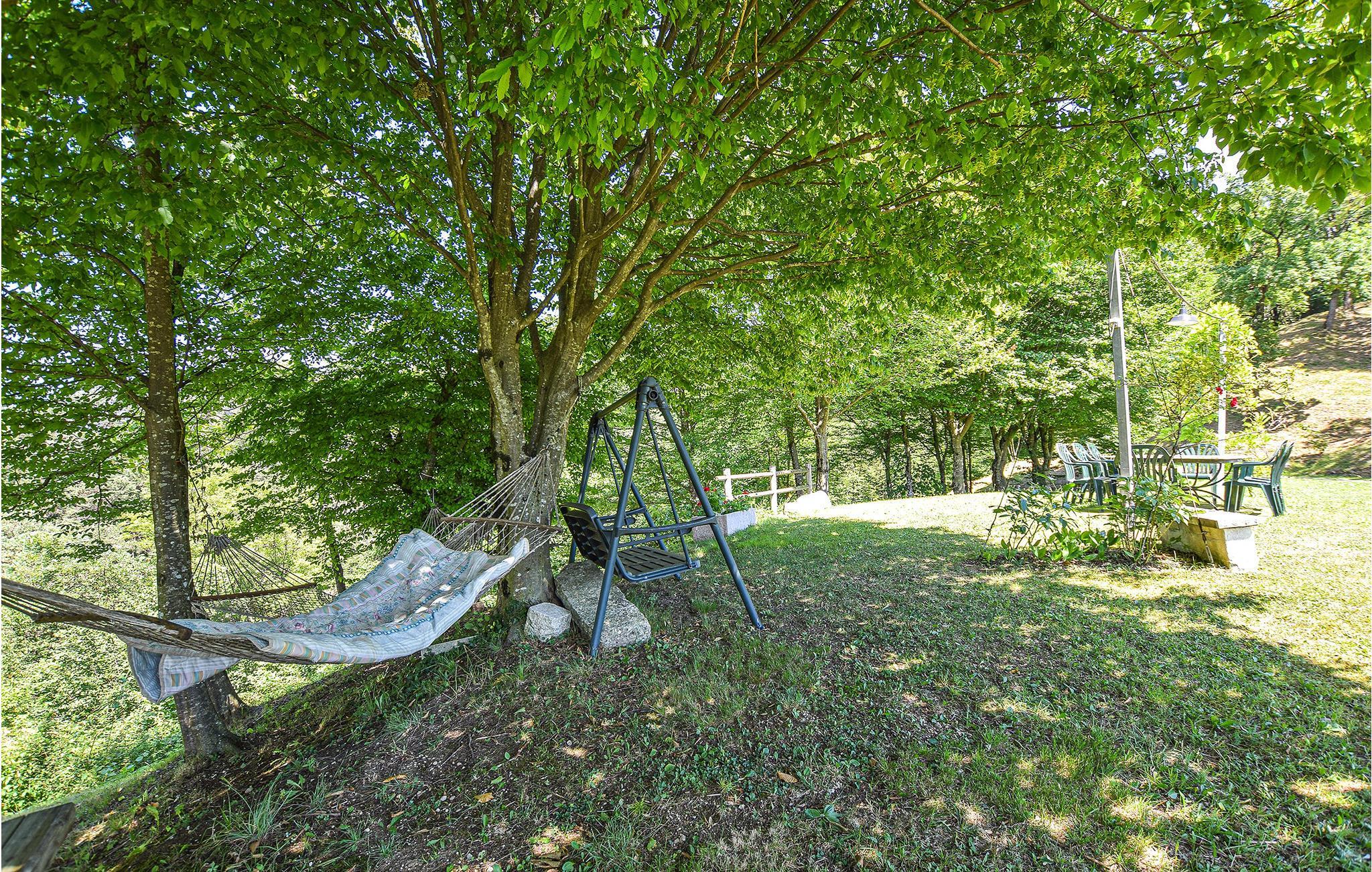 Der schöne Garten verleitet Sie dazu viel Zeit im Freien zu verbringen. Sie erhalten hier eine fantastische Aussicht auf die umliegende Landschaft und können beispielweise diese in den Schaukelstühlen genießen. Mehrere Bereiche laden zum Verweilen oder auch zum Spielen ein.