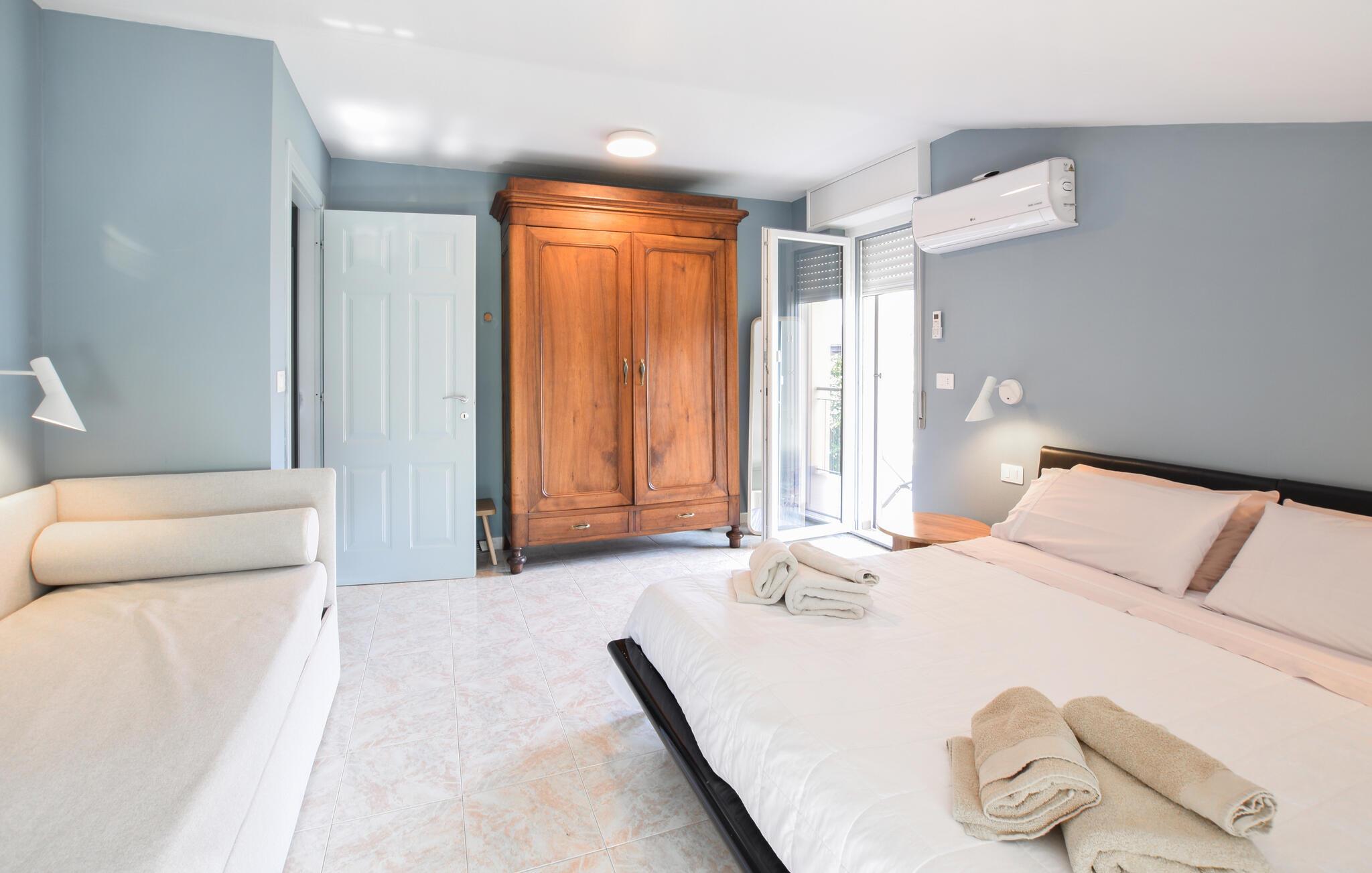 Schlafzimmer (nr. 1) - 1 Schlafmöglichkeit. (Einzelbett(en)). 2 Schlafmöglichkeiten. (Doppelbett(en)).