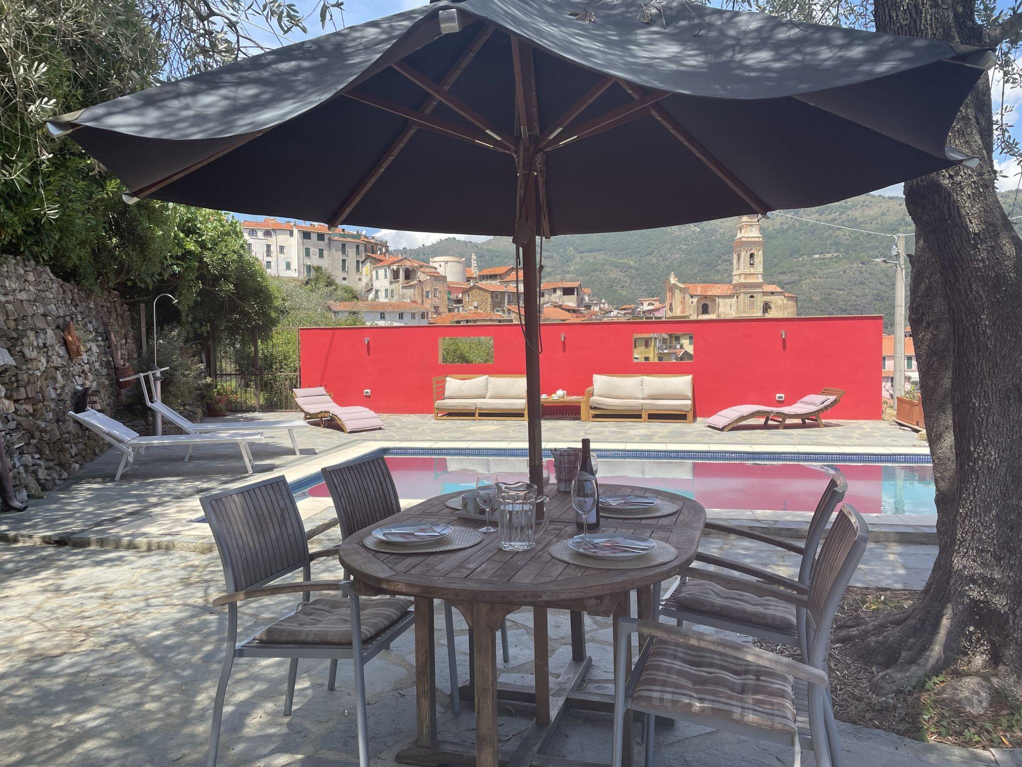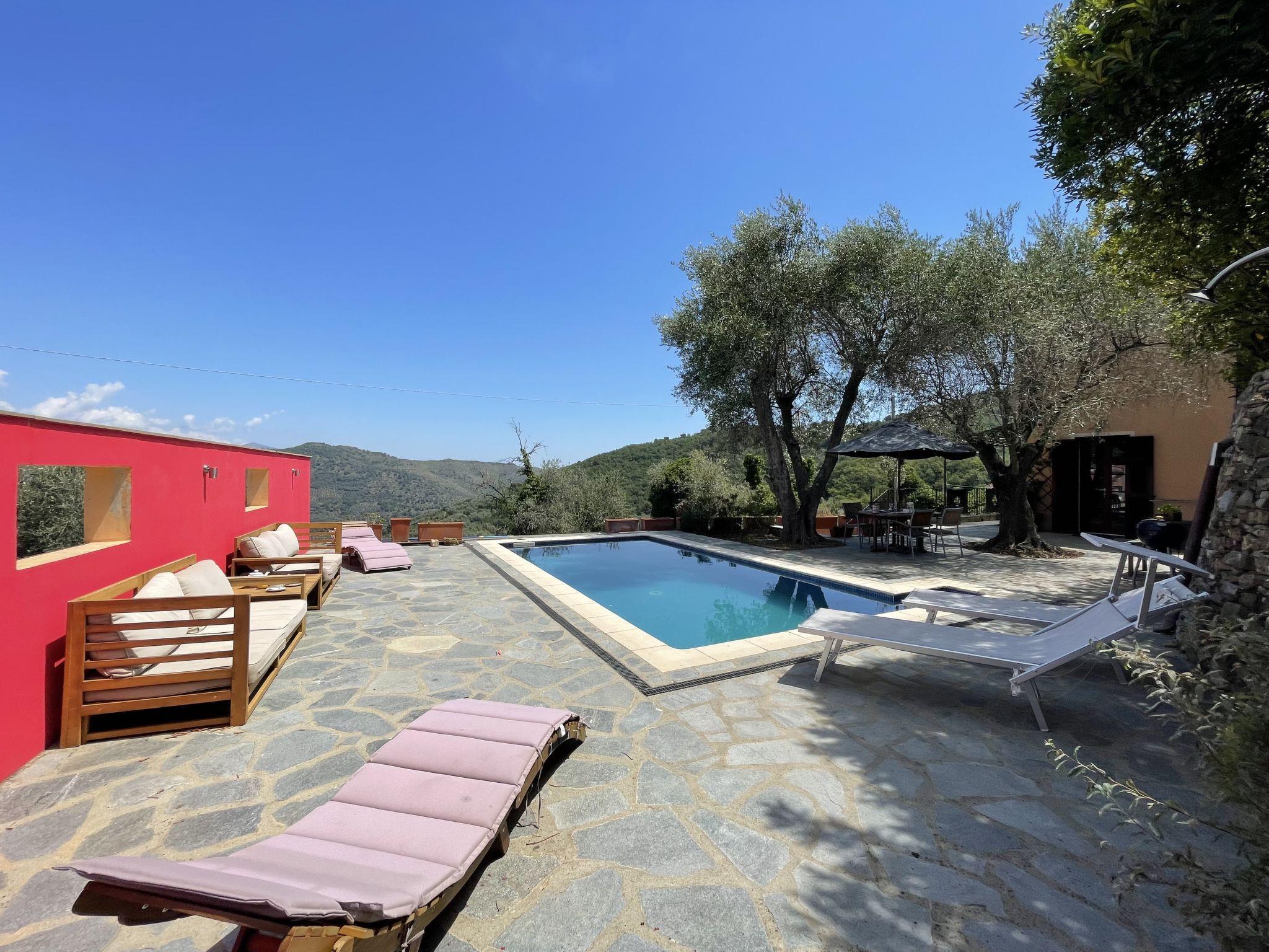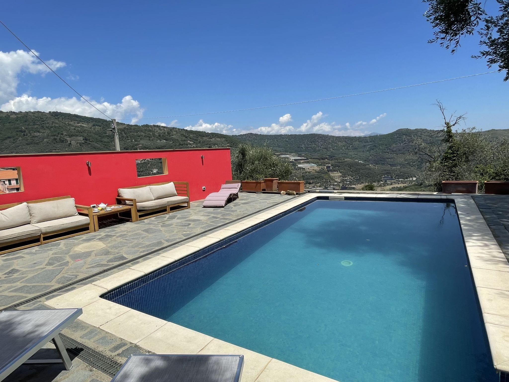 Freistehendes, komfortables Einfamilienhaus "Il Rifugio", 380 m.ü.M., Baujahr 2011, umgeben von Bäumen und Feldern. 300 m vom Zentrum von Boscomare, am Ortsrand, 9 km vom Zentrum von San Lorenzo al Mare, 15 km vom Zentrum von Imperia, 9 km vom Meer. Zur Alleinbenutzung: schöner, gepflegter terrassierter Garten, 300 m2 mit Pflanzen und Bäumen, Schwimmbad (7 x 3 m, 150 cm tief, saisonale Verfügbarkeit: 15.Mai. - 01.Okt.). Aussendusche, Sitzplatz, Terrasse, Gartenmöbel. In der Anlage: Sonnenterrasse. Treppenweg (14 Stufen) bis zum Haus. Parkplatz beim Haus. Einkaufsgeschäft 4 km, Supermarkt 9 km, Restaurant, Bushaltestelle 200 m, Bahnstation "Imperia Porto Maurizio" 15 km, Sandstrand "San Lorenzo al Mare" 9 km, Hallenbad 15 km. Golfplatz (18 Loch) 32 km.