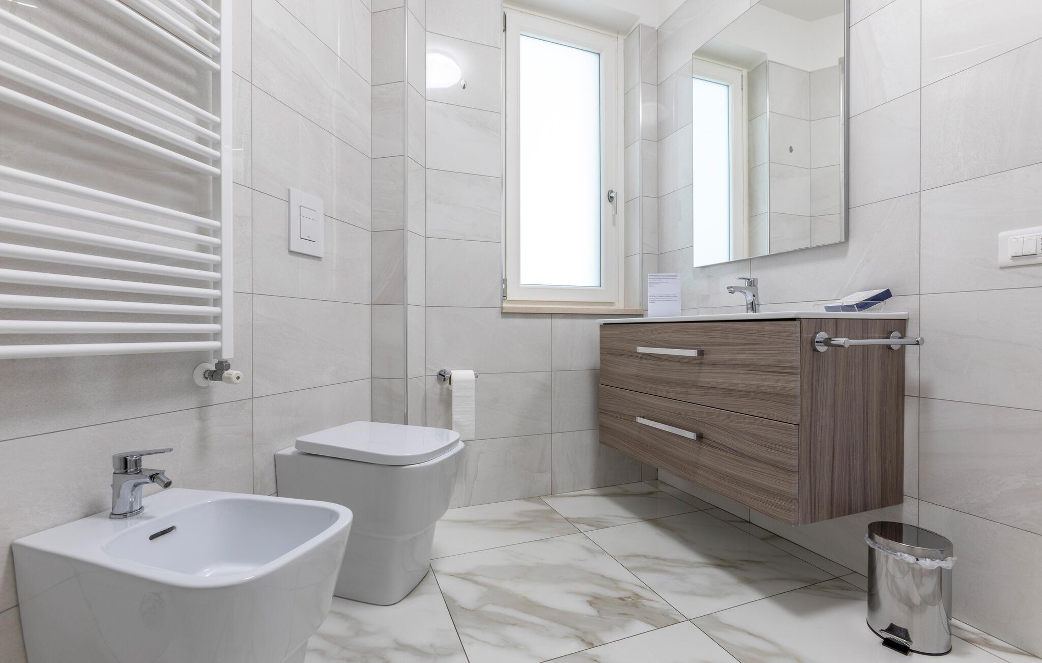 Badezimmer 4m2 (nr. 1) - WC. Warmes und kaltes Wasser. Dusche