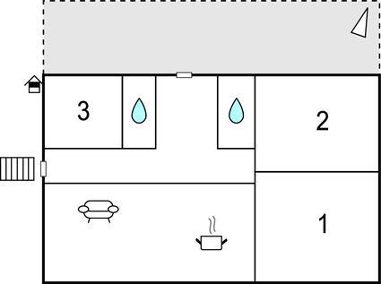 Badezimmer (nr. 1) - WC. Warmes und kaltes Wasser. Dusche